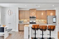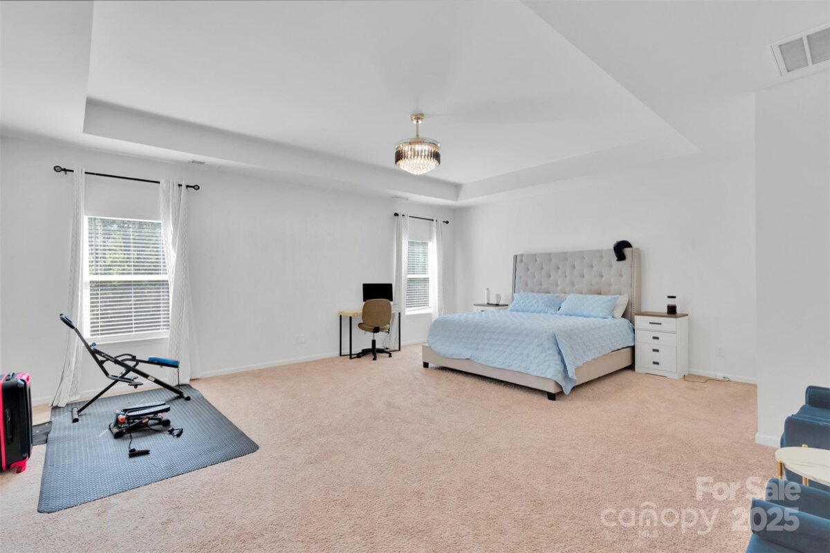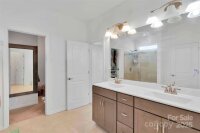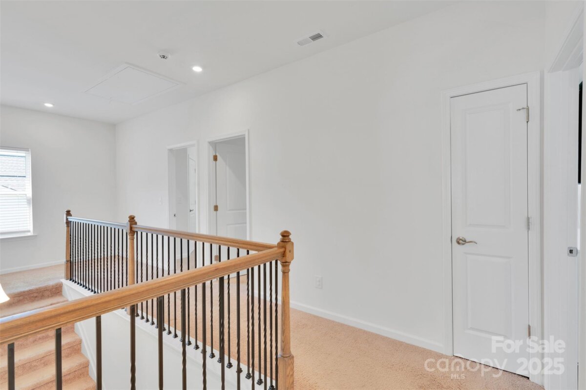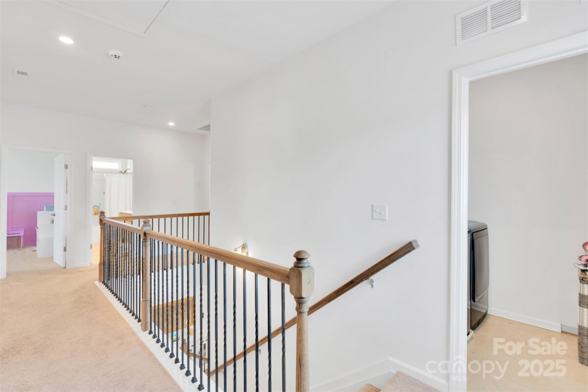 Welcome to this beautifully maintained two-story home in sought-after Trinity Crossing, offering the perfect blend of comfort, function, and style - with 4 bedrooms, 2.5 baths. The main level features durable LVP-hardwood floors, crown molding, and an inviting open-concept layout designed for both everyday living and entertaining. The chef’s kitchen is complete with quartz counter-tops, stone back splash, stainless steel appliances with gas range, expansive island, and a breakfast area. The kitchen flows into the breakfast nook with beautiful views of the backyard. The 2nd level primary luxurious suite is one of the largest in the area with a full bath and wrap around walk in custom closet. You Must See! Step outside to the covered porch and enjoy peaceful views of the wooded lot—perfect for relaxing or entertaining in privacy. Set on a .34-acre lot with extra space between neighbors, this home offers both privacy and convenience, located near Afton Village, dining, shopping, and I-85.