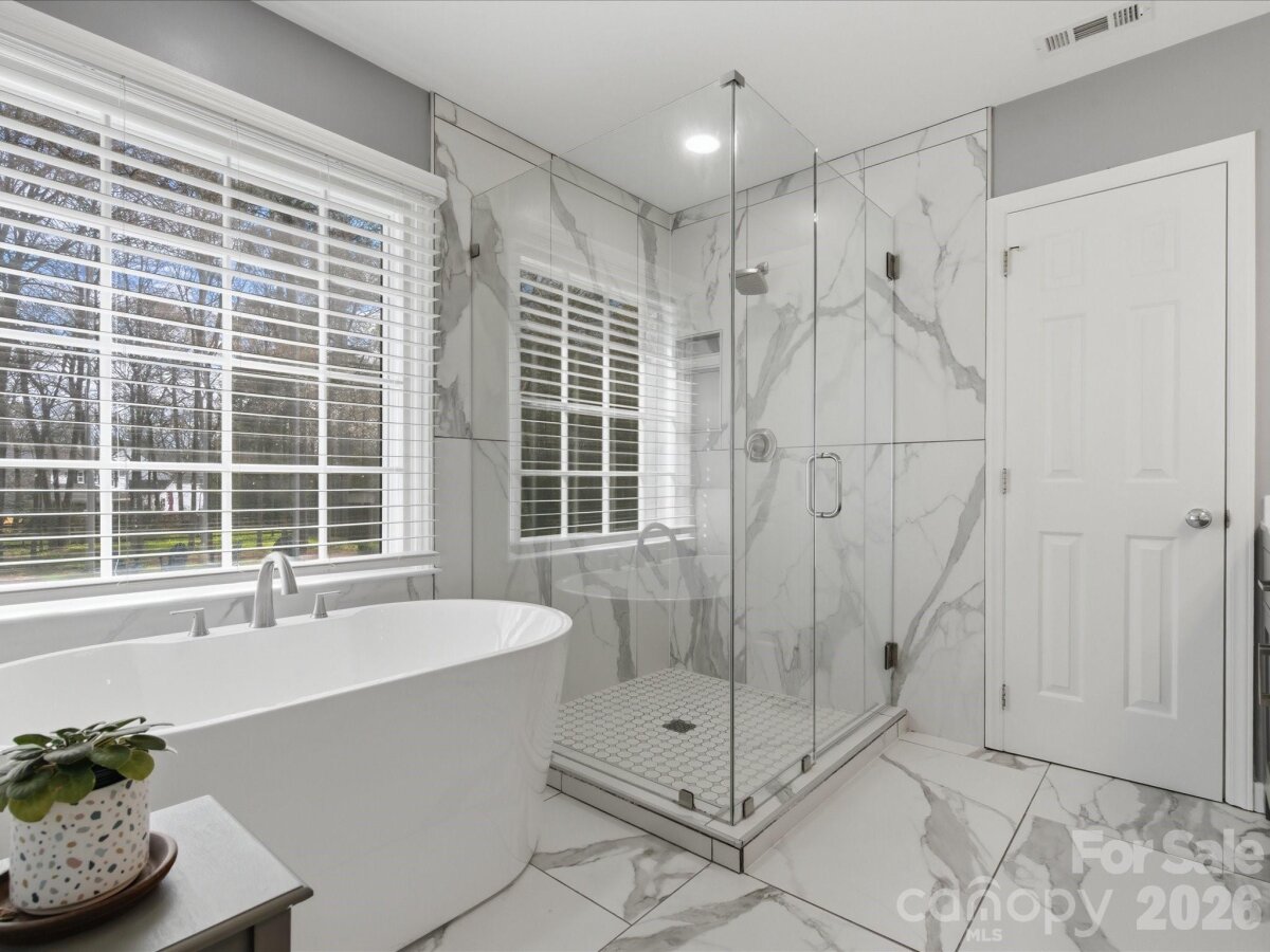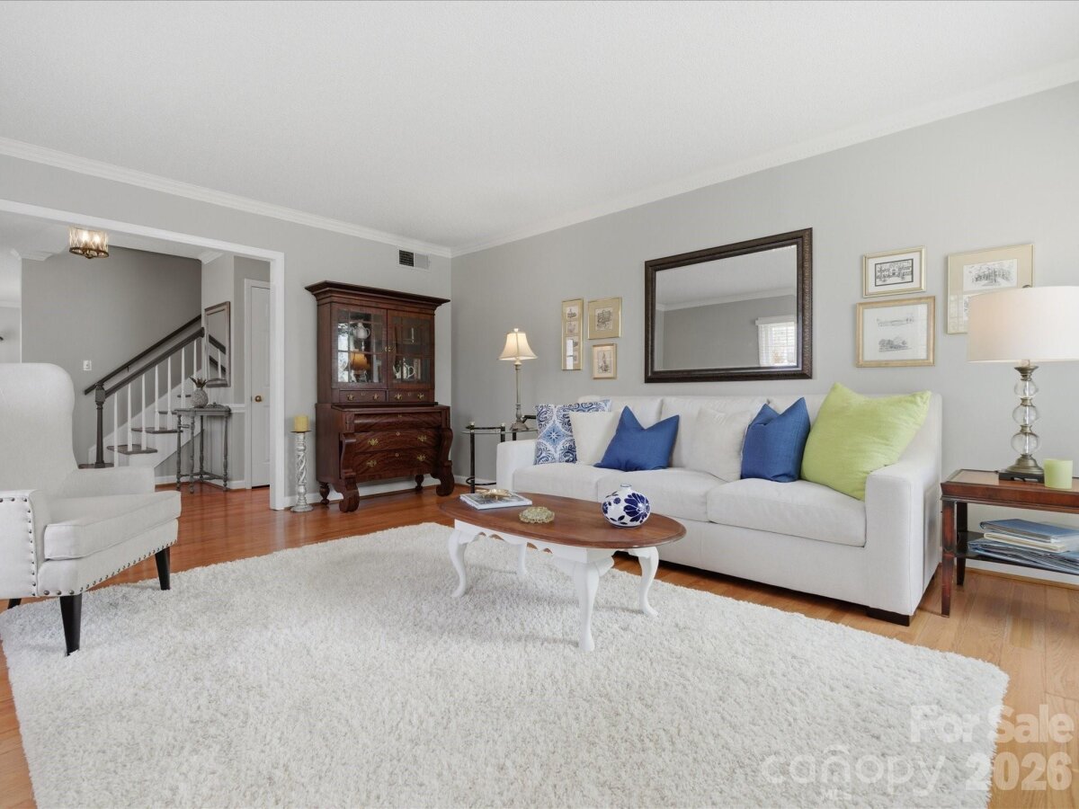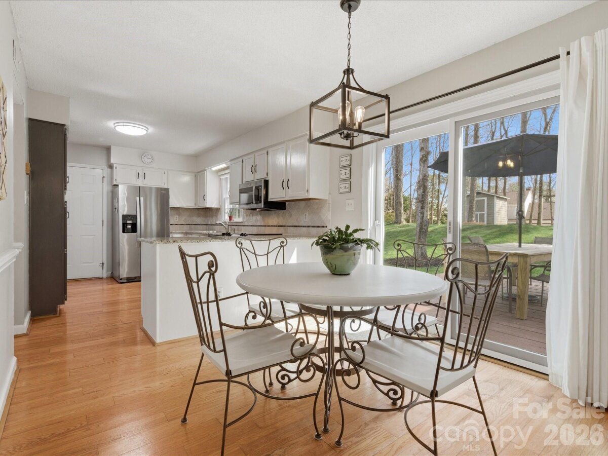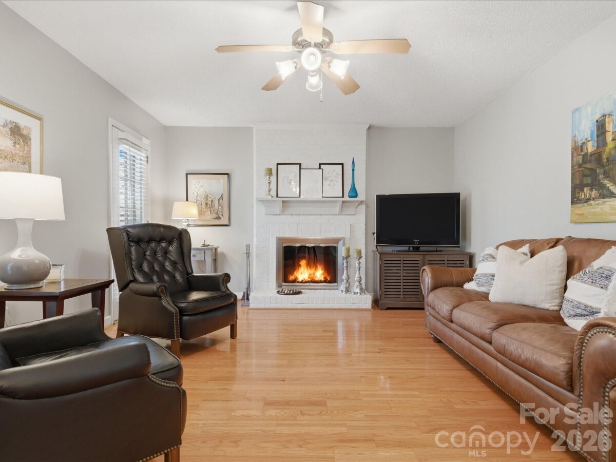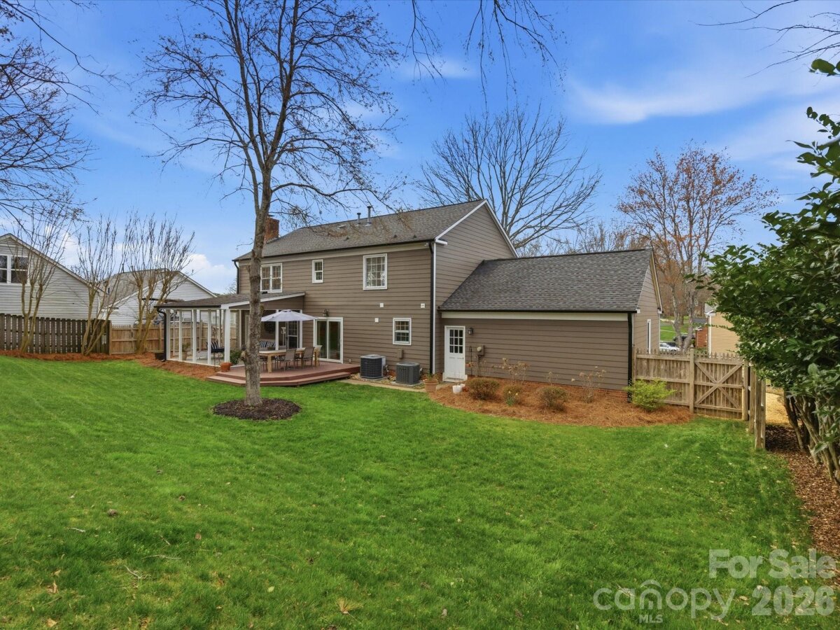 Welcome to the home you’ve been waiting for! This spacious 4-bedroom, 2.5-bath home with a 2-car garage sits on over 1/3 acre, inside the I-485 beltline and is within walking distance to Trader Joe’s and the Greenway—an unbeatable location. Step inside and immediately notice the beautiful hardwood floors and the abundance of natural light pouring through dramatic floor-to-ceiling windows in the formal living, dining and family rooms. The kitchen features granite countertops, stainless steel appliances, and ample cabinetry, with a convenient laundry room nearby offering additional storage. The breakfast area overlooks the large deck and stunning park-like backyard, perfect for morning coffee or weekend gatherings. The cozy family room showcases a painted brick fireplace and opens to a covered porch, creating the perfect space to relax and enjoy beautiful spring evenings. Upstairs, you'll find brand-new carpet throughout and an oversized primary suite with a fully updated spa-like bathroom, featuring: Soaking tub, Seamless walk-in shower, New vanities, counters and lighting, Secondary bedrooms are spacious, bright, and include ceiling fans and generous storage. The updated full bath features new countertops, new vanities, toilet, faucet, and lighting. The backyard is truly a standout, offering multiple spaces for entertaining, relaxing, and enjoying the outdoors. Recent updates include: Hardiplank siding (2025), Gutters (2025), Main HVAC system (2025), Microwave (2025) The location is exceptional, just minutes from Ballantyne Bowl, SouthPark, and the Arboretum, with convenient access to shopping, restaurants, hospitals, and major highways. Seller agrees to disclosed dual agency; fireplace and chimney sold as-is with no known defects