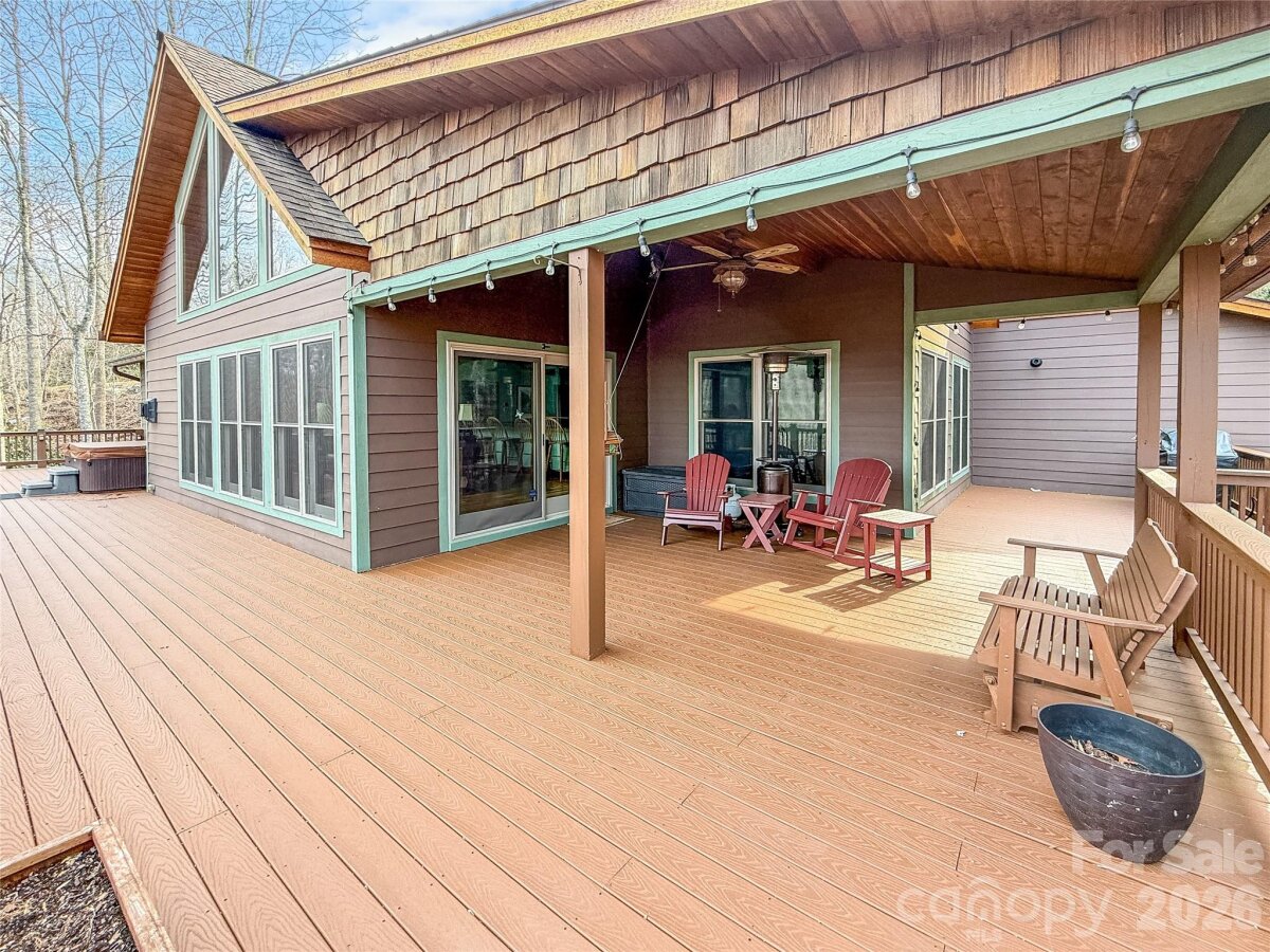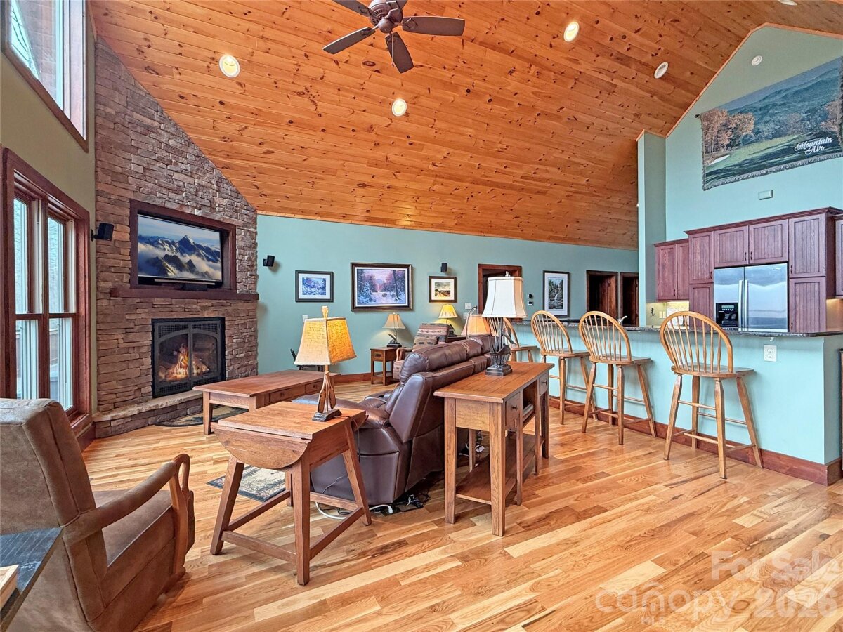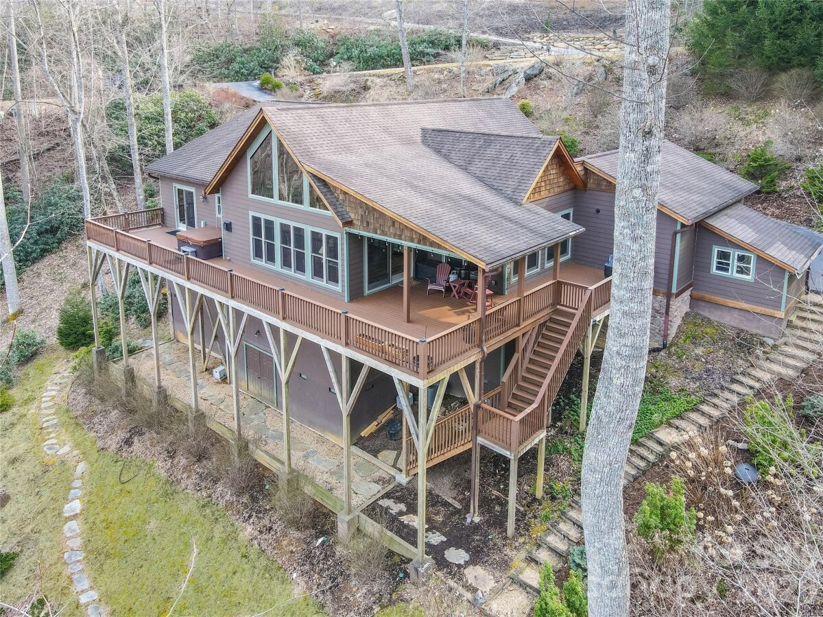 Discover exceptional mountain living at 637 Ontario Ridge in Twin Rivers, a well-cared-for home offering comfort, privacy, and sweeping views in one of the High Country’s most desirable gated communities. Twin Rivers is known for its natural beauty and fly fishing on two trout streams, Boone Fork Creek and the Watauga River, and this property is ideally located in Foscoe, central to the best of the High Country—approximately 7 miles to Boone, 9.3 miles to Blowing Rock, and 11 miles to Banner Elk, with convenient access to Grandfather Mountain and the Blue Ridge Parkway. Whether you are searching for a full-time residence or a seasonal mountain retreat, this home offers an outstanding combination of location, quality, and lifestyle. Set on an oversized 2.46-acre lot near the end of a cul-de-sac, the property enjoys relative privacy enhanced by wooded surroundings that naturally buffer it from neighboring homes. The home is designed for easy living with one-level living, minimal steps into the home, an easy-access driveway, and a generous parking and turnaround area. An attached two-car garage plus a separate golf cart garage offer excellent flexibility for vehicles, recreational gear, and storage. Inside, the home features radiant heated Oak hardwood floors and beautiful tongue-and-groove ceilings, creating warmth and timeless mountain character. The spacious open-concept kitchen, living, and dining area is ideal for entertaining, anchored by over 20-foot vaulted ceilings in the living room and expansive windows that bring in natural light and showcase the scenery. The living room, dining area, and primary bedroom all enjoy sweeping mountain views. The large kitchen is both functional and inviting, featuring custom cabinetry, granite countertops, a large island overlooking the view, and abundant storage. Outdoor living is just as impressive, with over 1,000 sq ft of Trex deck designed to take full advantage of the mountain setting. This space includes a covered area, a grilling area with propane hookup, and a hot tub area with a retractable awning, making it perfect for relaxing or hosting guests year-round. The primary suite is a private retreat with vaulted tongue-and-groove ceilings, direct deck access, and an en-suite bath featuring a jetted tub, tiled shower, and leathered granite countertops. It also offers a large walk-in closet with attic storage access and the convenience of en-suite laundry. Secondary guest rooms are generously sized with vaulted ceilings. Storage is abundant throughout the property, with generous closet space, attic space, an oversized 637 sq ft garage, and a 20+ foot crawlspace. Additional upgrades include a fully encapsulated crawlspace with dehumidifier, whole-house heated hardwood floors, instant hot water heater, 50-amp electrical outlet outside the garage, security system, Wi-Fi thermostat, and a water leak detector at the well. The hot tub, golf cart, grill, and appliances all convey with the home. Outside, the landscaped yard features a beautiful mix of foliage, natural rock outcroppings, and mountain landscape elements, along with steps and a stone walkpath behind the home. No rentals are allowed in Twin Rivers, helping preserve the quiet residential character of the community. From this central location, enjoy easy access to golf, tennis, pickleball, hiking, biking, fishing, skiing, equestrian facilities, shops, restaurants, and more.