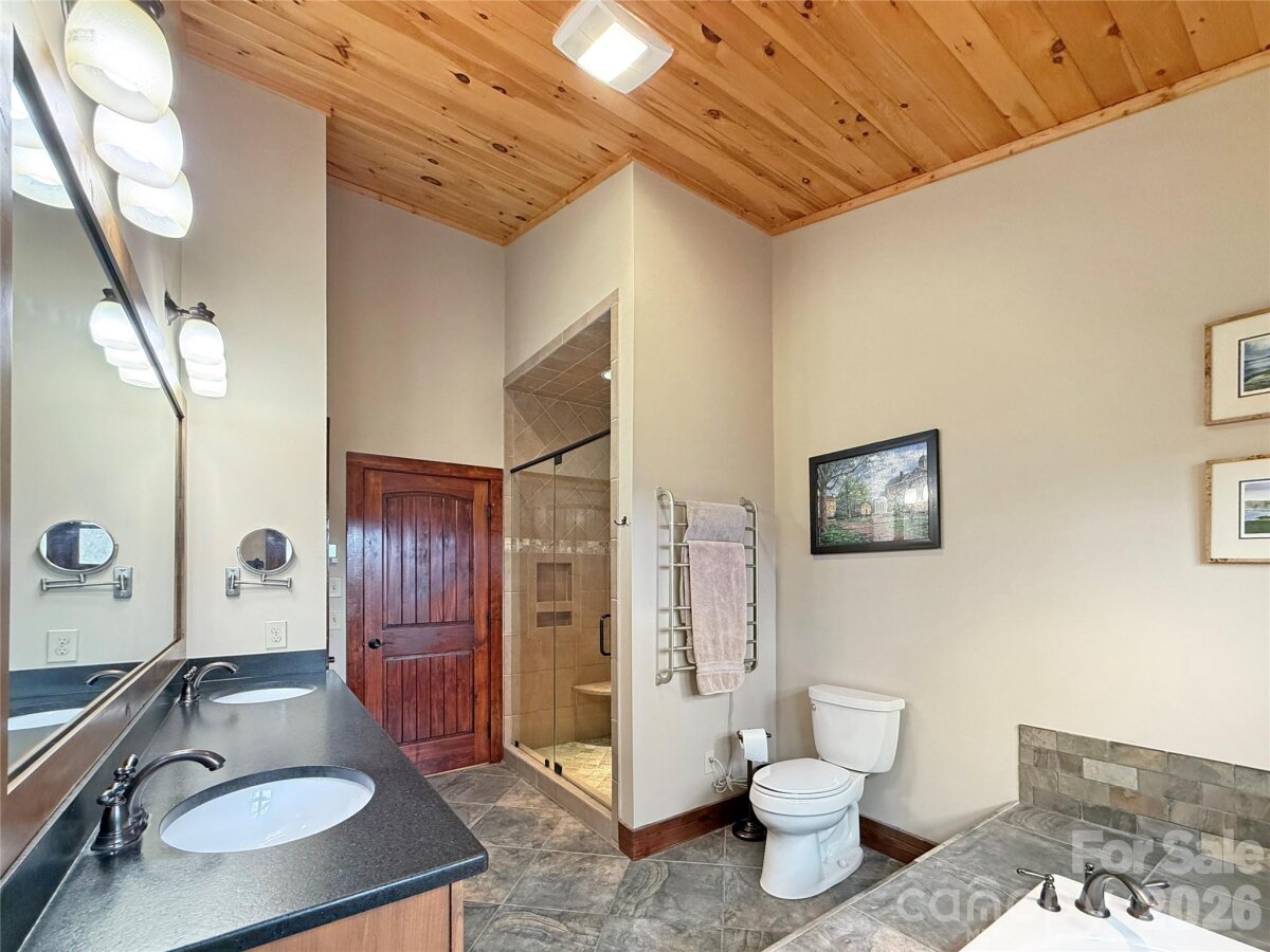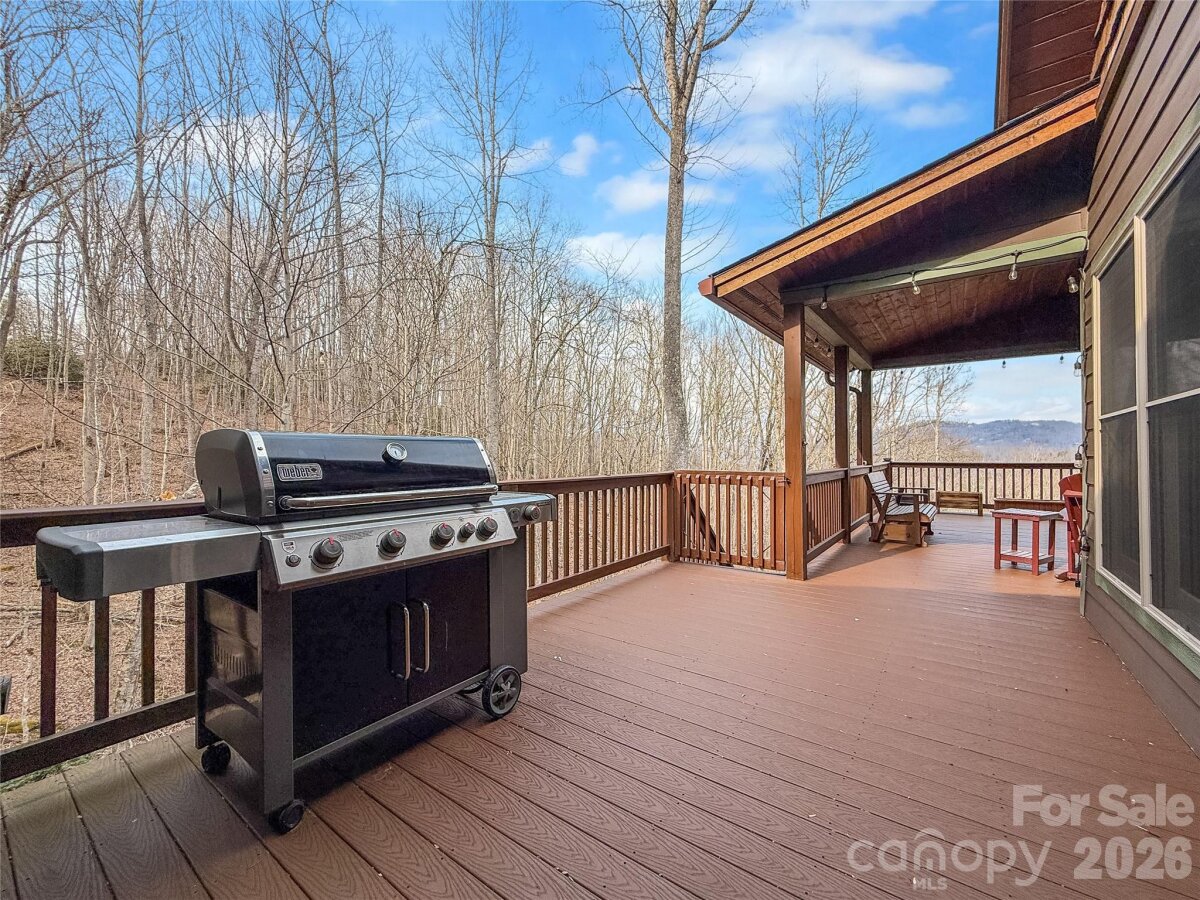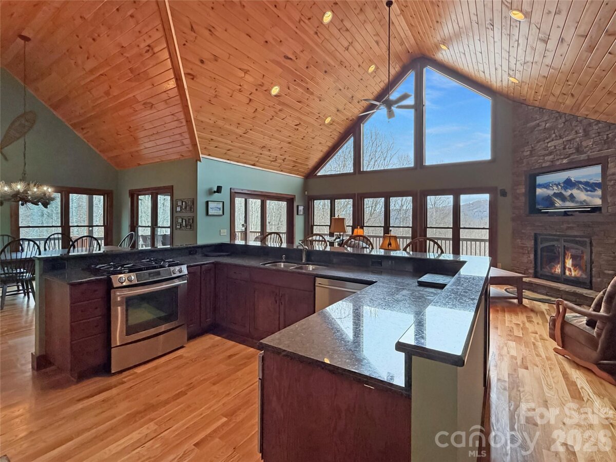 Discover exceptional mountain living at 637 Ontario Ridge in Twin Rivers, a well-cared-for home offering comfort, privacy, and sweeping views in one of the High Country’s most desirable gated communities. Twin Rivers is known for its natural beauty and fly fishing on two trout streams, Boone Fork Creek and the Watauga River, and this property is ideally located in Foscoe, central to the best of the High Country—approximately 7 miles to Boone, 9.3 miles to Blowing Rock, and 11 miles to Banner Elk, with convenient access to Grandfather Mountain and the Blue Ridge Parkway. Whether you are searching for a full-time residence or a seasonal mountain retreat, this home offers an outstanding combination of location, quality, and lifestyle. Set on an oversized 2.46-acre lot near the end of a cul-de-sac, the property enjoys relative privacy enhanced by wooded surroundings that naturally buffer it from neighboring homes. The home is designed for easy living with one-level living, minimal steps into the home, an easy-access driveway, and a generous parking and turnaround area. An attached two-car garage plus a separate golf cart garage offer excellent flexibility for vehicles, recreational gear, and storage. Inside, the home features radiant heated Oak hardwood floors and beautiful tongue-and-groove ceilings, creating warmth and timeless mountain character. The spacious open-concept kitchen, living, and dining area is ideal for entertaining, anchored by over 20-foot vaulted ceilings in the living room and expansive windows that bring in natural light and showcase the scenery. The living room, dining area, and primary bedroom all enjoy sweeping mountain views. The large kitchen is both functional and inviting, featuring custom cabinetry, granite countertops, a large island overlooking the view, and abundant storage. Outdoor living is just as impressive, with over 1,000 sq ft of Trex deck designed to take full advantage of the mountain setting. This space includes a covered area, a grilling area with propane hookup, and a hot tub area with a retractable awning, making it perfect for relaxing or hosting guests year-round. The primary suite is a private retreat with vaulted tongue-and-groove ceilings, direct deck access, and an en-suite bath featuring a jetted tub, tiled shower, and leathered granite countertops. It also offers a large walk-in closet with attic storage access and the convenience of en-suite laundry. Secondary guest rooms are generously sized with vaulted ceilings. Storage is abundant throughout the property, with generous closet space, attic space, an oversized 637 sq ft garage, and a 20+ foot crawlspace. Additional upgrades include a fully encapsulated crawlspace with dehumidifier, whole-house heated hardwood floors, instant hot water heater, 50-amp electrical outlet outside the garage, security system, Wi-Fi thermostat, and a water leak detector at the well. The hot tub, golf cart, grill, and appliances all convey with the home. Outside, the landscaped yard features a beautiful mix of foliage, natural rock outcroppings, and mountain landscape elements, along with steps and a stone walkpath behind the home. No rentals are allowed in Twin Rivers, helping preserve the quiet residential character of the community. From this central location, enjoy easy access to golf, tennis, pickleball, hiking, biking, fishing, skiing, equestrian facilities, shops, restaurants, and more.