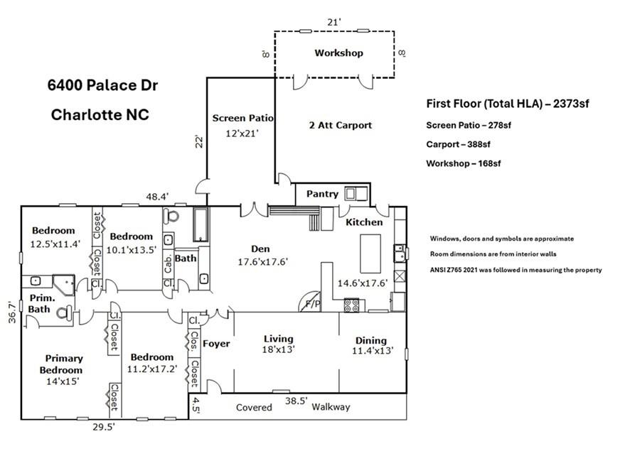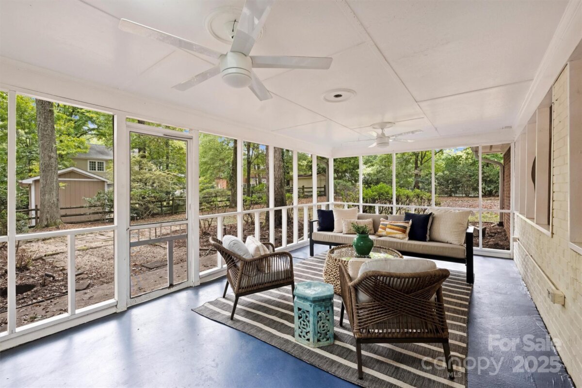 Welcome to 6400 Palace Drive – a beautifully updated, move-in-ready brick ranch in the heart of the sought-after Stonehaven community! This charming 4-bedroom, 2-bath home offers 2,373 square feet of single-level living, thoughtfully refreshed with fresh paint, brand new carpet, and stylish new lighting throughout. While the updates make it turnkey, the home retains all the original character and warmth that make ranch homes so beloved. The updated kitchen features a central island, freshly painted cabinetry with new hardware, and a seamless flow into the inviting family room – complete with a cozy fireplace and custom built-ins. Step out onto the screened-in porch, perfect for morning coffee or evening relaxation, all overlooking the fully fenced backyard. Additional highlights include an attached 2-car carport with a large storage room or workshop space – ideal for hobbies, projects, or extra storage. Located on a quiet, tree-lined street in the established Stonehaven neighborhood, residents enjoy access to two neighborhood swim and racquet clubs. You’ll love the central location – just minutes from Cotswold, with easy access to Uptown, SouthPark, Matthews, and the vibrant MoRa district. Plus, it’s conveniently situated in Charlotte’s private school corridor and close to the scenic McAlpine Greenway. Don’t miss your chance to own this classic home in one of Charlotte’s most desirable neighborhoods!