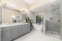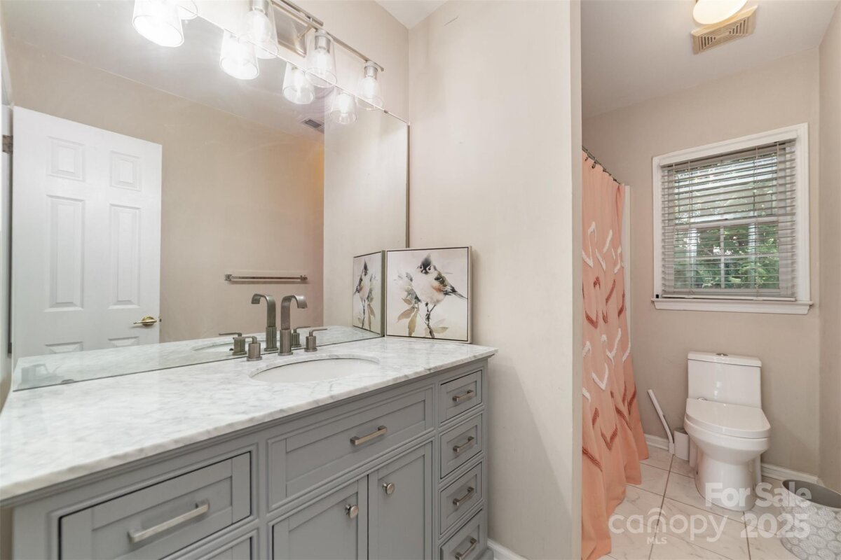 This beautifully maintained 4-bedroom, 3-bath home offers a spacious and versatile floor plan designed for modern living. A welcoming foyer opens to bright living spaces, including a large great room that flows seamlessly into the gourmet kitchen, complete with granite counters, stainless steel appliances, and a gas cooktop. The main level features a convenient guest suite with one bedroom and a full bath, as well as a laundry room for added ease. Upstairs, the oversized primary suite boasts a spa-like bath with dual vanities, soaking tub, and glass-enclosed shower. Two additional bedrooms plus a large bonus room provide plenty of space for family, work, or play. Enjoy outdoor living from the deck overlooking a level backyard, perfect for entertaining. With a partial brick exterior, timeless curb appeal, and close proximity to shopping, dining, and Highland Creek amenities, this home is a true must-see!