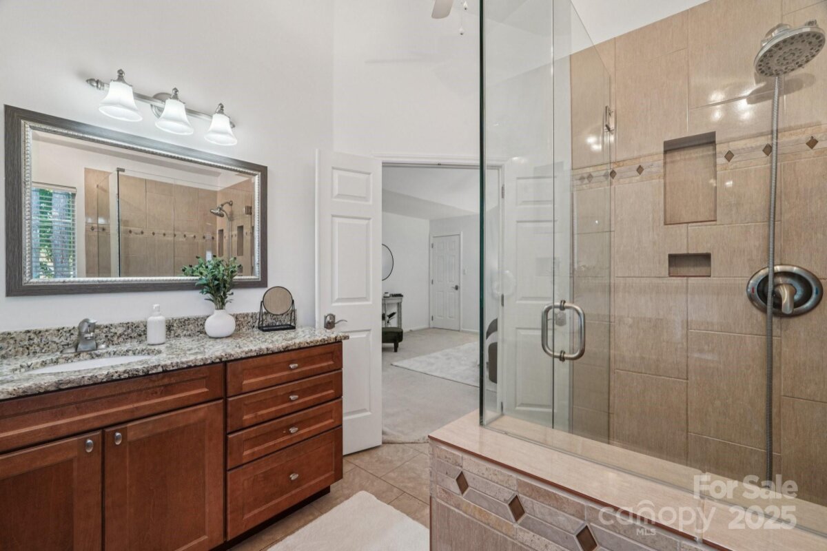 Welcome to Ballantyne living at its best in the desirable Thornhill neighborhood. This beautifully updated and meticulously maintained home offers a perfect blend of style, comfort, and convenience, located on a quiet, tree-lined street with mature landscaping and a private backyard oasis. Step inside to a grand two-story entryway that opens to a spacious main level featuring refinished hardwood floors, custom molding, and a stunning full kitchen renovation completed in 2024. The kitchen includes 42 inch cabinets, quartz island and countertops and new stainless steel appliances, it has open flow into the Great Room, where a cozy fireplace invites relaxation and entertaining. From here, step outside to a freshly painted deck, private yard, and beautifully upgraded landscaping, including a full irrigation system, aeration, and seeding. Upstairs, the vaulted primary suite offers a true retreat, complete with a remodeled bathroom featuring dual vanities, a tile and glass walk-in shower, and an expansive walk-in closet customized by Closet By Design. Three additional bedrooms provide generous space, while thoughtful updates throughout the home include new ceiling fans in the bedrooms, stylish light fixtures in the kitchen, dining, and living rooms, and a full interior repaint in 2025. Enjoy the benefits of a 2025 smart HVAC system with heat pump and thermostat, a garage with epoxy flooring and a MyQ smart opener, and exterior painting completed in 2025 for the home, deck, and fence. Located just a short stroll from Stonecrest, with shopping, dining, and live entertainment at your fingertips, this home also offers access to Thornhill’s exceptional community amenities including a pool, pavilion, tennis courts, playground, nature preserve and fishing pond. With top-rated schools and a vibrant neighborhood setting, this is a home you won’t want to miss.