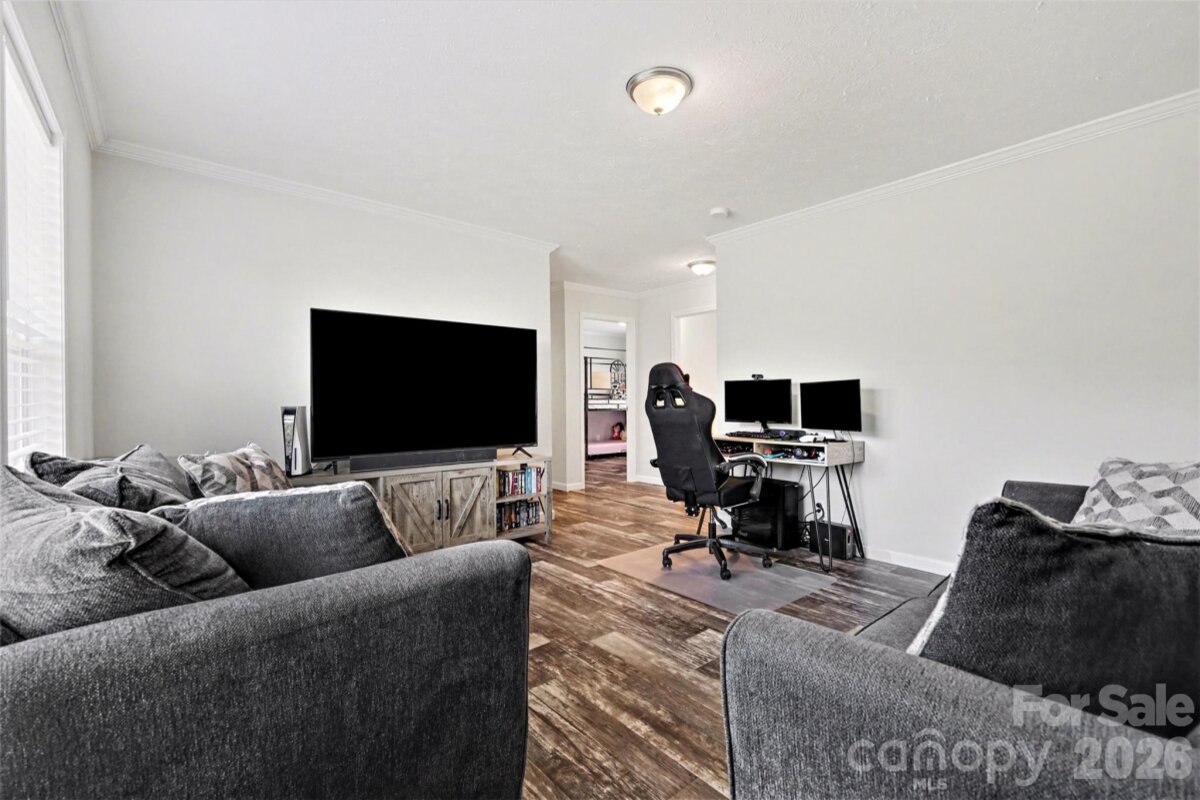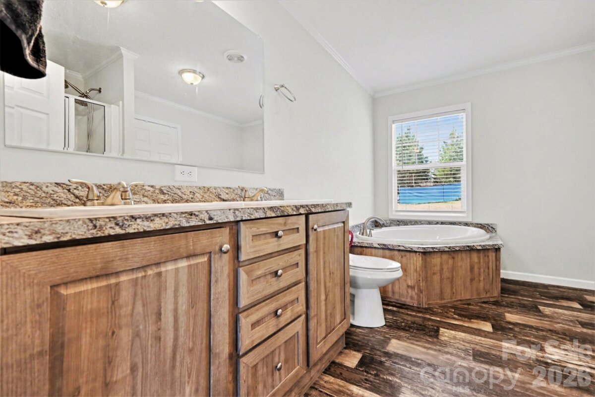 Set on a generous stretch of open land with a peaceful, rural backdrop, this newer home offers the kind of space and privacy that’s getting harder to find. The wide, level yard is framed by trees and natural surroundings, creating a quiet setting with plenty of room to spread out, garden, or simply enjoy the outdoors. A detached outbuilding adds flexibility for storage, hobbies, or workspace, while the long driveway and open surroundings give the property an inviting, expansive feel. Inside, the home features a bright, open layout designed for easy everyday living and entertaining. The main living area flows seamlessly into a spacious kitchen with a large island and breakfast bar, creating a natural gathering space. Natural light fills the home through well-placed windows, highlighting the modern finishes and durable flooring throughout. The split-bedroom floorplan offers a sense of privacy, with a comfortable primary suite that includes a relaxing bath with a soaking tub and separate shower. Additional bedrooms are well-sized and versatile, perfect for guests, work-from-home needs, or hobbies. Blending newer construction with a peaceful setting and usable acreage, this property offers a move-in ready opportunity to enjoy country living without sacrificing comfort or style.