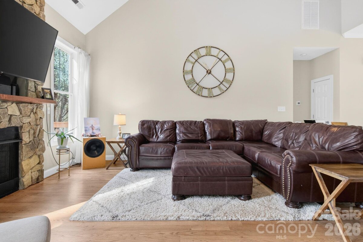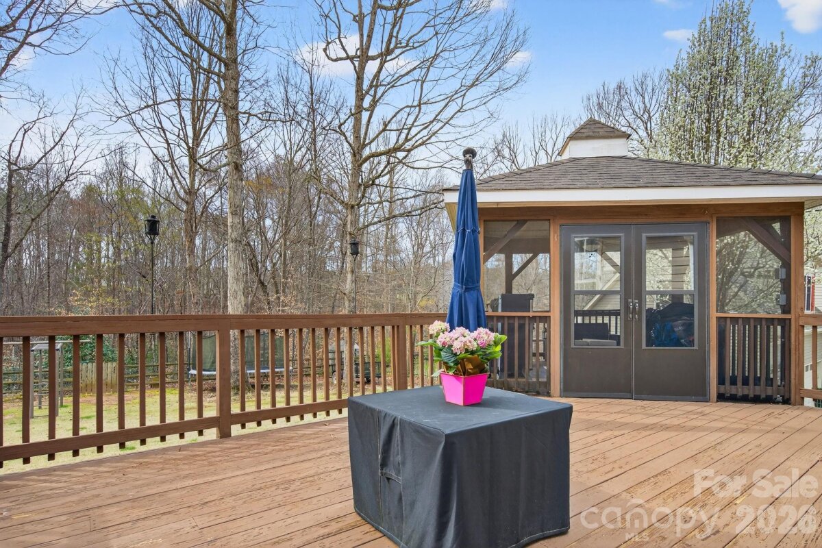 This beautifully maintained ranch home has been lovingly cared for and offers a bonus room upstairs that could easily serve as a fourth bedroom, complete with its own full bath. The updated kitchen includes stainless steel appliance, including double ovens, cooktop, dishwasher, and refrigerator. Start your mornings on the rocking-chair front porch, or relax in the spacious family room featuring vaulted ceilings and an abundance of natural light, a gorgeous stone fireplace, and cozy gas logs. The eat-in kitchen includes an island with built-in cabinetry with plenty of extra storage. The owner’s suite is a true retreat with tiled shower, granite countertops, a freestanding soaking tub, and beautiful tile flooring. The fully fenced back yard is perfect for enjoying Carolina evenings. Unwind in the gazebo after dinner on the deck, watch a movie under the stars, or gather around the fire pit. A storage shed provides extra space for tools and outdoor gear.