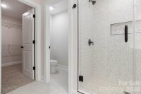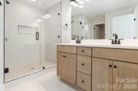 New construction in one of Mount Holly's most desired subdivisions! – a stunning two-story residence offering 1,825 heated square feet of modern, thoughtfully designed living space with 3 bedrooms and 2.5 baths. No HOA! This beautiful home combines timeless elegance with contemporary finishes, perfect for comfortable family living or entertaining. Step through the striking mahogany front door into an inviting foyer that flows seamlessly into the open-concept main level. The first floor boasts hardwood flooring throughout the living areas, including the great room, dining area, and kitchen – creating a warm, cohesive feel. The kitchen features modern black plumbing and electrical fixtures, a stylish tile backsplash, and plenty of cabinet space. A convenient powder room, mud room, and attached garage add everyday practicality. Up the beautiful hardwood stairs, the second floor offers privacy and comfort. The primary bedroom has a spacious walk-in closet, and the primary bathroom has a beautifully tiled master shower, and linen storage. The additional bedrooms share a well-appointed full bath with tile flooring, plus a laundry room with tile flooring. Outside, you will be able to enjoy the rocking chair front porch or the oversized patio in the back. Great Mount Holly location. Close to downtown, dining and grocery.