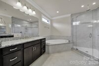 Looking for a full brick basement home that’s better than new? This stunning home combines elegance, flexibility, and value—without new construction pricing. It’s move-in ready with premium finishes throughout. Set on a private, landscaped lot, the home features a fully finished walkout basement, 10-foot ceilings and storage galore. The chef’s kitchen boasts an expansive quartz island, smart appliances, soft-close cabinetry, and a custom pantry. Main-level highlights include a formal dining room, private office, guest suite, coffee bar, and mudroom with built-ins. The oversized three-car garage offers epoxy floors, storage, and upgraded lighting. Outdoor living shines with a 400+ sq ft deck perfect for entertaining. Upstairs, the luxurious primary suite includes a spa-like bath and custom closet, plus three bedrooms, three full baths, a media room, and dream laundry room. The walkout basement adds a fitness room, guest suite, media space, and 600+ sq ft of storage—with plumbing ready for a second kitchen and laundry (ideal for multi-generational living or private guest quarters). Located in a resort-style community with pool, courts, lake, trails, and easy access to Birkdale, Concord Mills, Uptown Charlotte, and Charlotte Douglas airport, this home delivers luxury, convenience, and peace of mind.