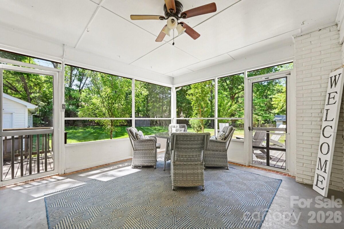 Experience the perfect blend of community and privacy in the highly desirable Olde Providence neighborhood. Known for its tree-lined streets, mature lots, and vibrant social atmosphere, this established community remains one of the area's most sought-after locations. This well-maintained ranch home blends classic character with comfortable living, offering over 2,000 square feet of inviting space filled with timeless charm and functional design. Hardwood floors and beautiful crown moldings enhance the generously sized rooms throughout the main living areas. The kitchen features granite countertops, stainless steel appliances, and ample cabinetry, flowing seamlessly into the den with fireplace, creating an ideal space for both everyday living and entertaining. With four bedrooms, the home provides adaptable spaces to fit today’s needs, including options for a home office, fitness room, guest accommodations, or flexible living areas. Outdoor living is just as impressive, truly treating the backyard as an extension of the indoor living space. Enjoy a welcoming covered front porch, an inviting screened porch, and an additional open-air deck terrace; perfect for relaxing or hosting gatherings. The spacious, flat backyard is fully fenced with a classic black rail fence and offers plenty of room to garden, play, or entertain, all situated on approximately 0.37 acres. A detached two-car garage provides excellent options for a workshop or additional storage, while an outdoor storage closet with a utility sink adds everyday convenience. Ideally located in the heart of South Charlotte, this home is just minutes from SouthPark’s premier shopping and dining, a quick drive to Uptown Charlotte, and walking distance to Windyrush Country Club. This Olde Providence home blends classic character, flexible living spaces, and outdoor enjoyment in a location known for its strong sense of community.