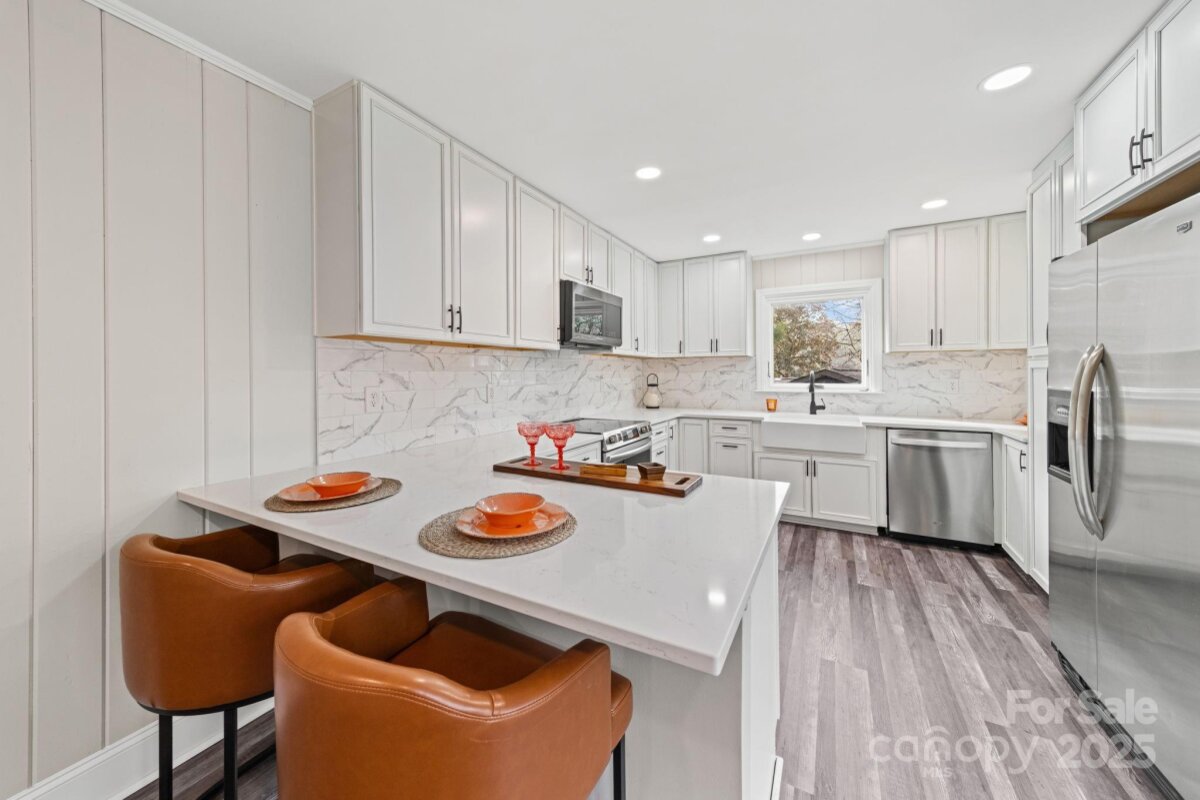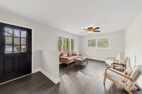 This fully renovated 3-bedroom, 3-bath home delivers modern updates, reliable systems, and a flexible layout with no HOA restrictions. The spacious, open kitchen has been completely redone with new soft-close cabinets, farmhouse sink, stainless steel appliances (including a new range), and quartz countertops. Major systems have also been replaced, including new electrical with updated panel, new HVAC, a new architectural-shingle roof, updated double-paned Andersen windows, and a Rinnai gas tankless water heater for long-term efficiency and peace of mind. The main level features beautifully restored original hardwood floors and large windows that bring in abundant natural light. The finished basement adds valuable square footage with a full bathroom, walk-in closet, and an open flex room ideal for a guest suite, home office, gym, or recreation space. Additional unfinished area includes a one-car garage, storage, workshop space, and a laundry area with chute from the main level. Updated interior lighting ties the renovation together. Outside, the home offers a spacious deck, patio area, gazebo, and a mostly fenced, large backyard. With upgraded systems throughout and a move-in-ready interior, this turnkey home provides practical improvements and versatile living spaces—all near a cul-de-sac in the sought-after Starmount community. Schedule your tour today!
