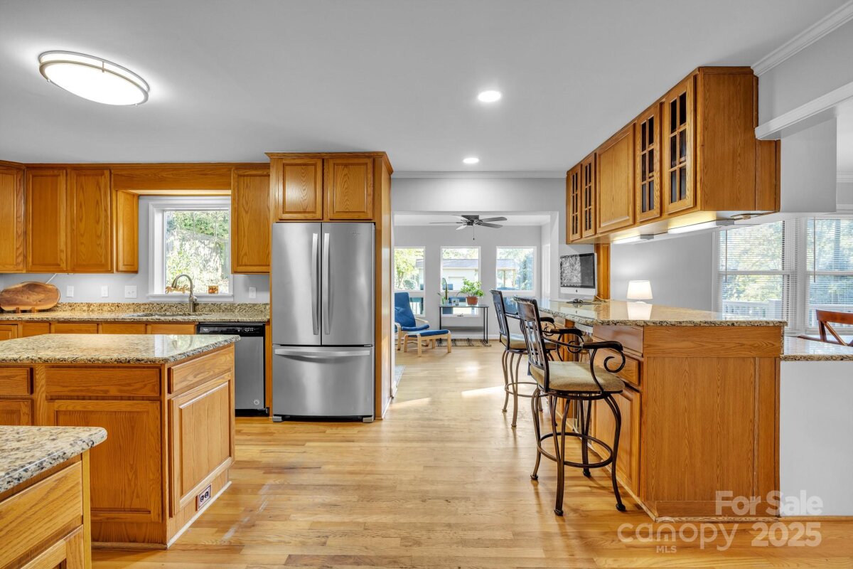NW HICKORY-4BR/2.5BA-Welcome to a home that feels warm, inviting, and thoughtfully designed for the way you live today. From the moment you step inside, natural light fills the main level’s open yet defined spaces—perfect for everyday living and special gatherings alike. The kitchen is the true heart of the home, featuring granite countertops, stainless appliances, a center island, and a built-in bar with wine fridge. Just beyond, the great room’s fireplace and custom built-ins create a cozy backdrop for relaxing evenings, while the sunroom opens to a spacious deck made for entertaining. Upstairs, unwind in the private primary suite with ensuite bath, complemented by three additional bedrooms and another full bath. Downstairs adds even more flexibility with an additional room perfect for a home office, workout area, or den. The remaining basement offers a tandem garage, workshop, and abundant storage totaling over 1,000 sq ft. Outside, the corner lot is beautifully landscaped and thoughtfully equipped with covered boat parking plus a 14x28 storage building (14x16 enclosed and 14x12 covered) for lawn and garden essentials. Enjoy seasonal views of Lake Hickory right across the street—peaceful, scenic, and just minutes from shopping, dining, and schools. Things We Love: No CITY Taxes and Location- Close to Everything!!