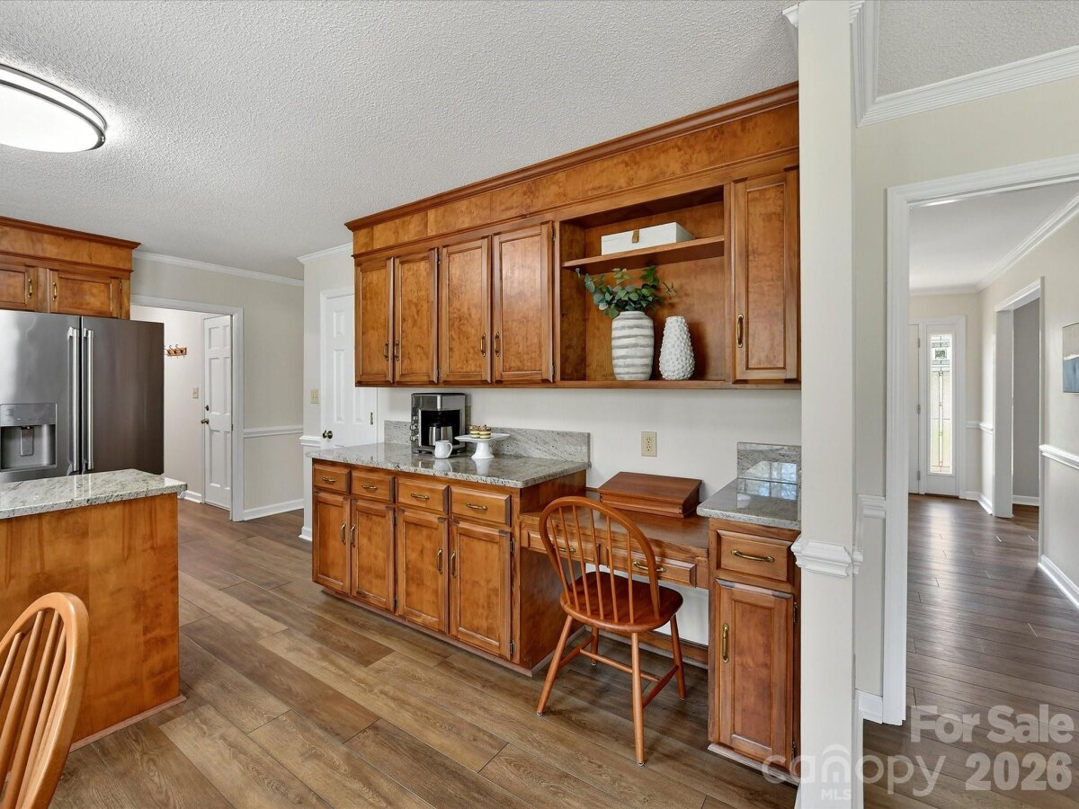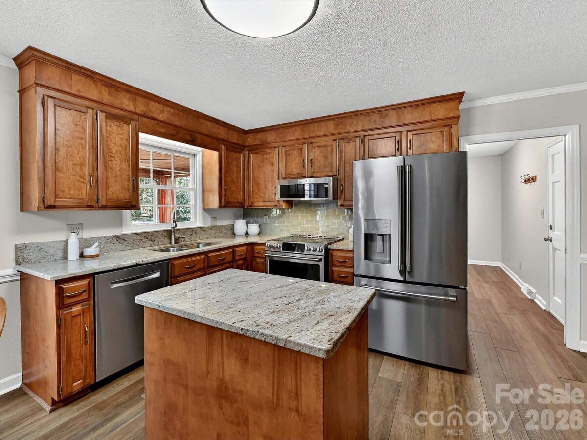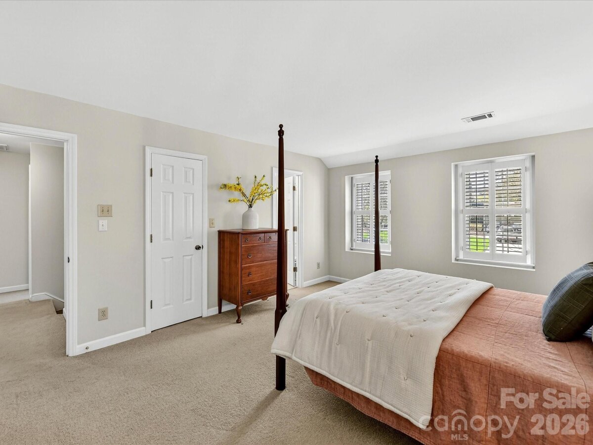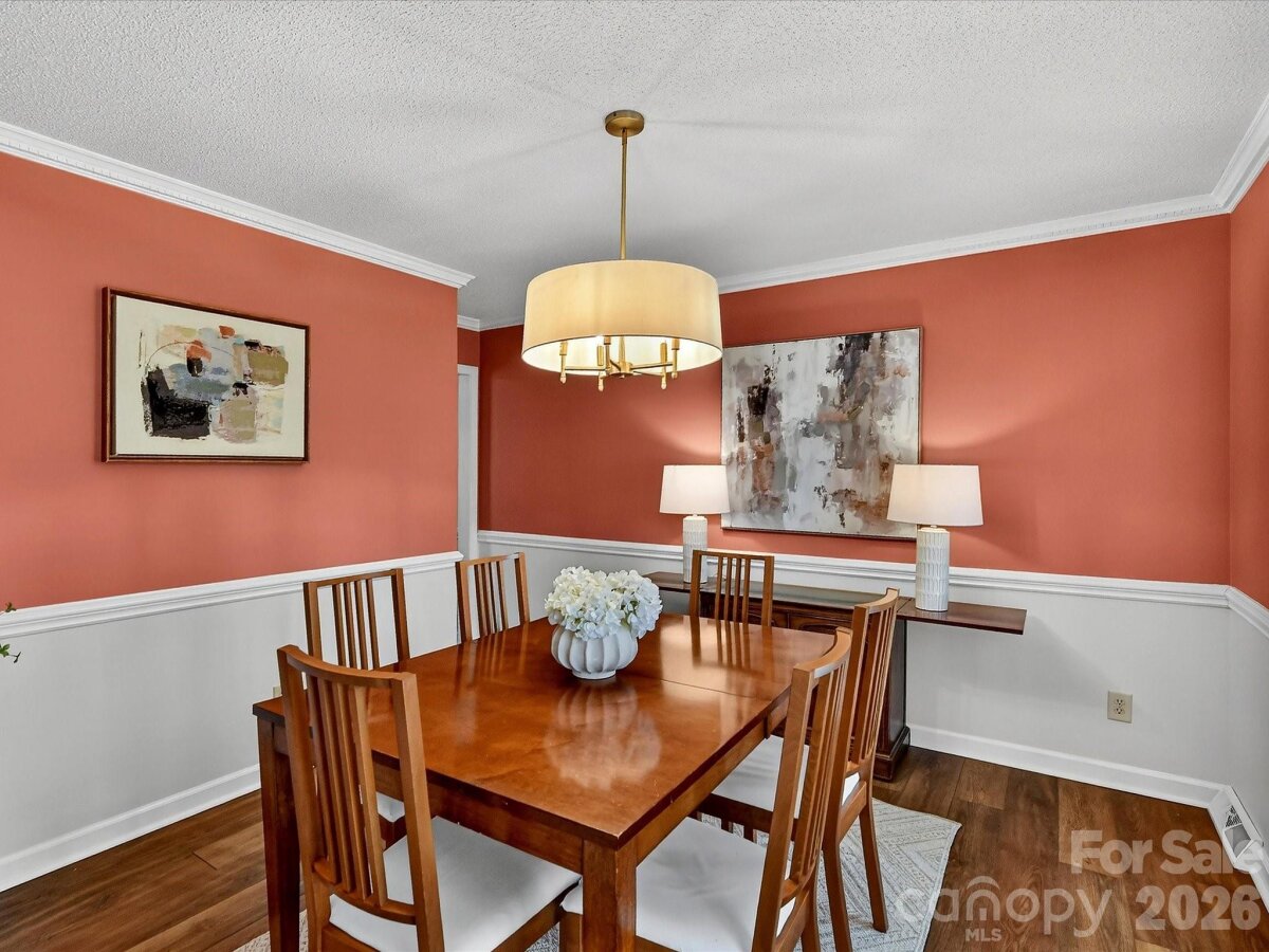 Charming 4-bedroom home in Hampton Leas with plantation shutters throughout and LVP flooring on the main level. A welcoming foyer opens to a spacious living room and formal dining room. The open kitchen features granite countertops, an island, GE Café induction range and refrigerator, KitchenAid microwave, Bosch dishwasher, and a large pantry. The kitchen flows seamlessly into the family room with a wood-burning fireplace, built-ins, and views of the tree-lined backyard. The primary suite offers a walk-in closet and en-suite bathroom with quartz countertops and a tiled shower. Bedrooms 3 and 4 also include walk-in closets, with a hall bathroom featuring a quartz vanity and tub/shower combo. Enjoy outdoor living on the deck or screened porch overlooking the serene and private backyard. Additional highlights include a 2-car garage with storage room, laundry room with cabinets, attic storage with new extra-wide aluminum folding stairs, and patio wiring and plumbing ready for a hot tub on the patio. Ideally located off Providence Road with easy access to SouthPark, Uptown, and The Arboretum!