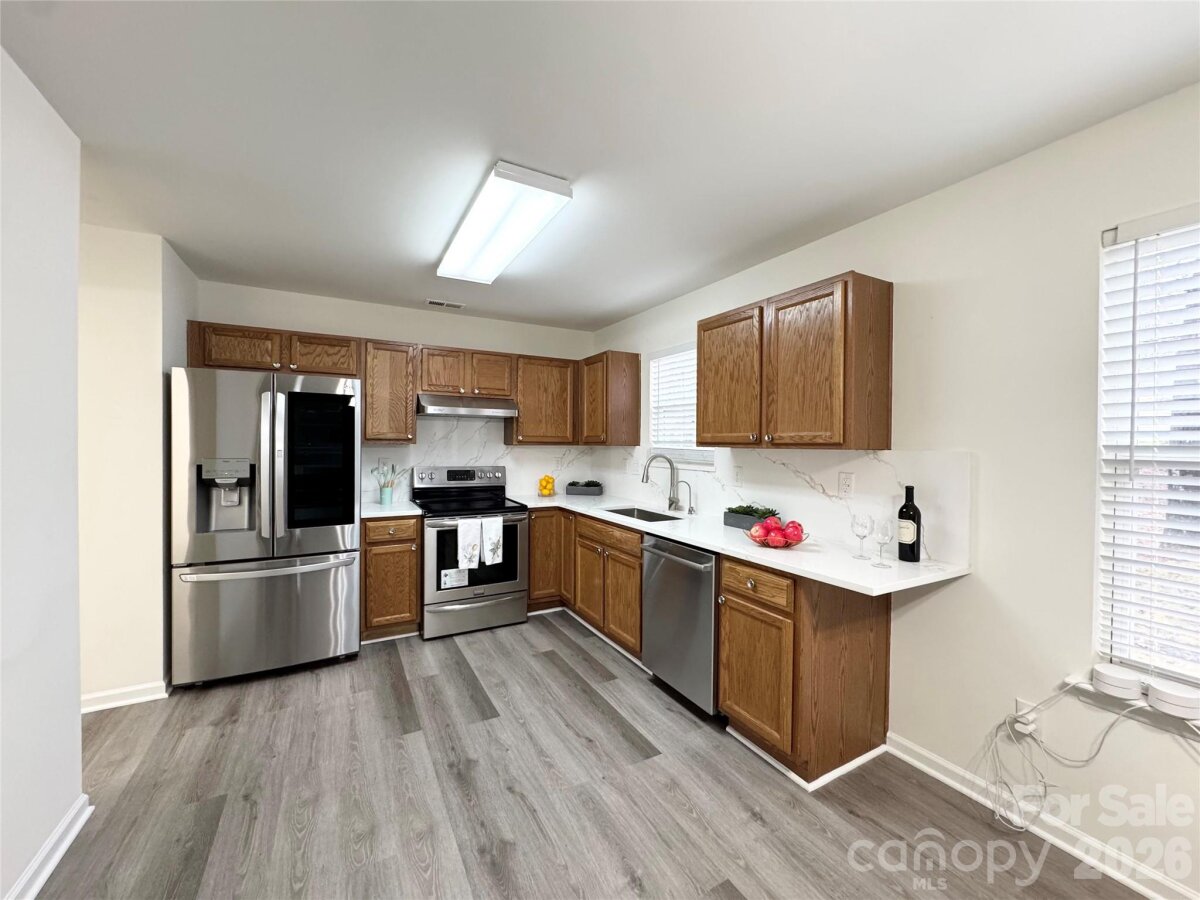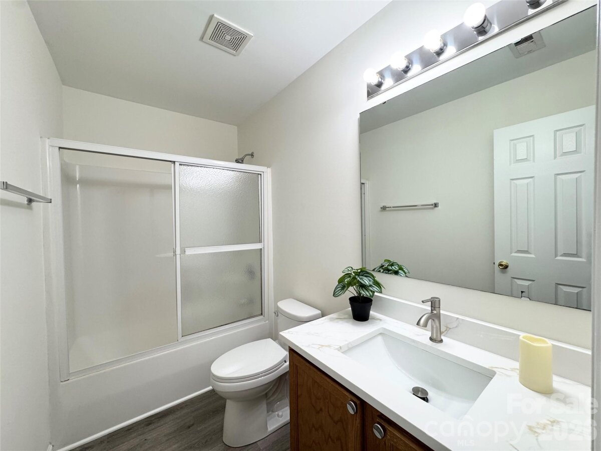 Welcome to this charming one-owner, two-story renovated home! If you’re looking for a perfect starter home, this well-maintained property is the one. Tucked away in a quiet cul-de-sac in the Forest Pond community, yet it does offer quick and easy access to I-85 and I-77, and is just a short drive to Uptown Charlotte, UNCC, and NoDa. Professionally freshly painted, brand-new luxury quartz countertops and backsplash, new LVP flooring throughout (no carpet!), new toilets, modern LED light fixtures and switches, and ceiling fans with remote controls!!! Major updates include a 2021 roof and 2022 AC unit, providing peace of mind for the new owners. Main level offers perfect space for everyday living and entertaining. The spacious dining room flows seamlessly into the kitchen, while the cozy family room with fireplace creates a warm and inviting space. Upstairs, you’ll find a generous primary suite with dual closets, along with two additional bedrooms and a shared full bath. The laundry closet is conveniently located in the hallway, with washer and dryer included. Outside, enjoy the extra-large, level backyard—ideal for gatherings, playtime, or relaxing evenings. Located in an established and quiet neighborhood with a low HOA, this home truly has it all. Don’t miss your opportunity to own this gem—schedule your tour today!