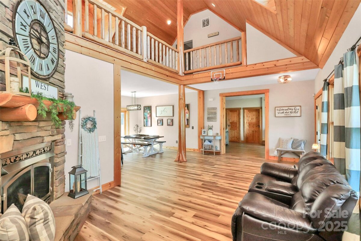 Gorgeous 4 bedroom, 3.5 bath log cabin nestled on just over 4 acres with an in-ground pool located in Shelby, close to Boiling Springs. The main level offers 2 bedrooms and 2.5 baths. Primary suite on main with tray ceilings, walk-in closet, private bath with walk-in shower and a jacuzzi tub. Flexibility with a den and a living room featuring a stone gas log fireplace that shares an open floor plan with the dining area. Kitchen has a breakfast bar island as well as stainless appliances and pantry. Upstairs offers 2 bedrooms and a full bath as well as a very large unfinished bonus room over garage that has drywall available to be finished at any time. 2 car garage. Outdoors, you will find an in-ground 9ft pool, storage carport for equipment, all on an expansive 4-acre lot. Updates include a new roof 2021, new beautiful LVP floors 2021, HVAC serviced twice a year, pool and fence installed 2021 pool pump replaced in 2025, all plumbing replaced in 2019, composite decking on covered front porch and back deck, new fixtures, whole home stained within last couple of years. Located just 4 minutes from Gardner-Webb University.