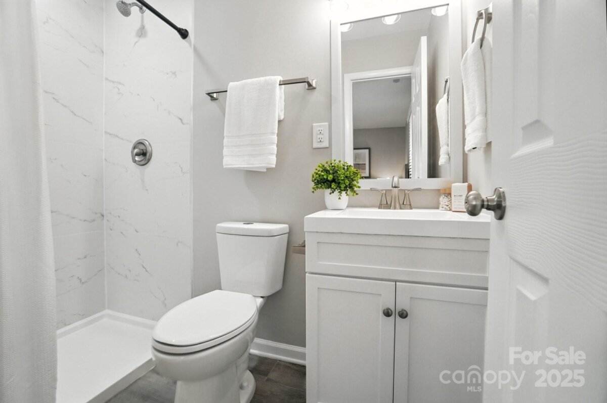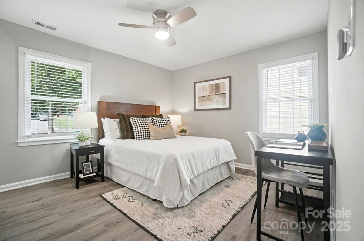 Turnkey 3BR/2BA home in Charlotte’s sought-after Eastbrook Woods community! Originally 1.5 baths, this property was professionally converted to 2 full bathrooms with city-approved permits, adding significant value and functionality. Fully renovated, this home features a modern kitchen with quartz countertops, stainless steel appliances, shaker cabinets, and a bright open floor plan. Updated baths include designer tile, matte-black fixtures, and modern vanities. New LVP flooring and fresh paint throughout provide a clean, move-in-ready finish. Enjoy a spacious fenced backyard with a patio, perfect for entertaining, pets, or gardening. Recent upgrades include energy-efficient windows, newer HVAC (verify), and other mechanical updates that reduce maintenance costs. This property offers flexible closing, a 1-year home warranty, and the seller will cover up to 2% of buyer’s closing costs, providing buyers with both peace of mind and affordability. Ideal for first-time buyers, growing families, or investors seeking turnkey rental income with immediate cash flow potential. Conveniently located near I-485, Uptown Charlotte, University City, shopping, dining, parks, and schools. With its combination of modern updates, permitted bathroom conversion, and strong neighborhood appeal, this home is priced for a fast sale at $339,000. Don’t miss this rare opportunity — schedule your showing today!