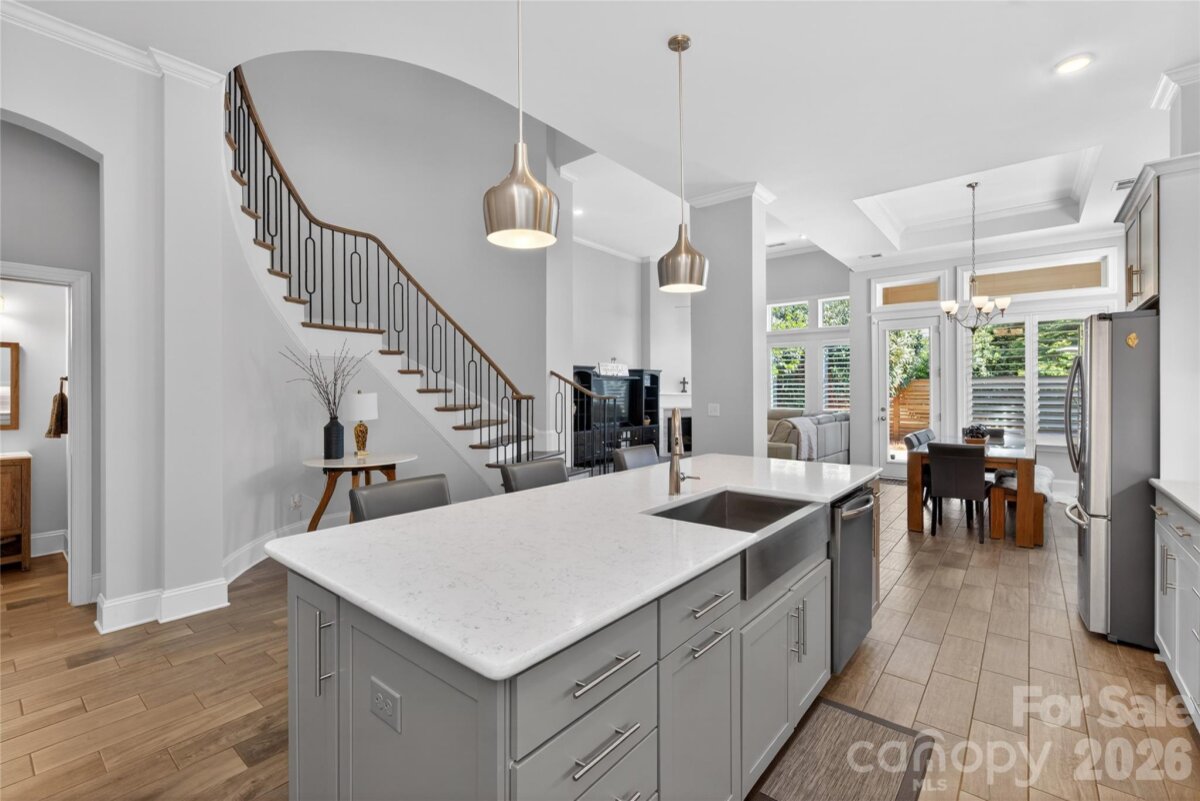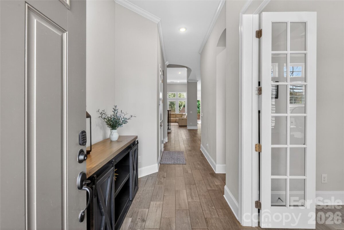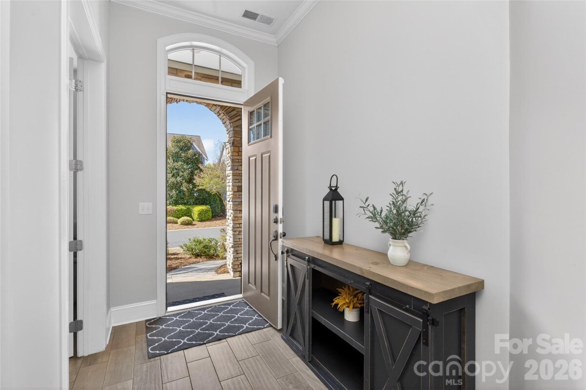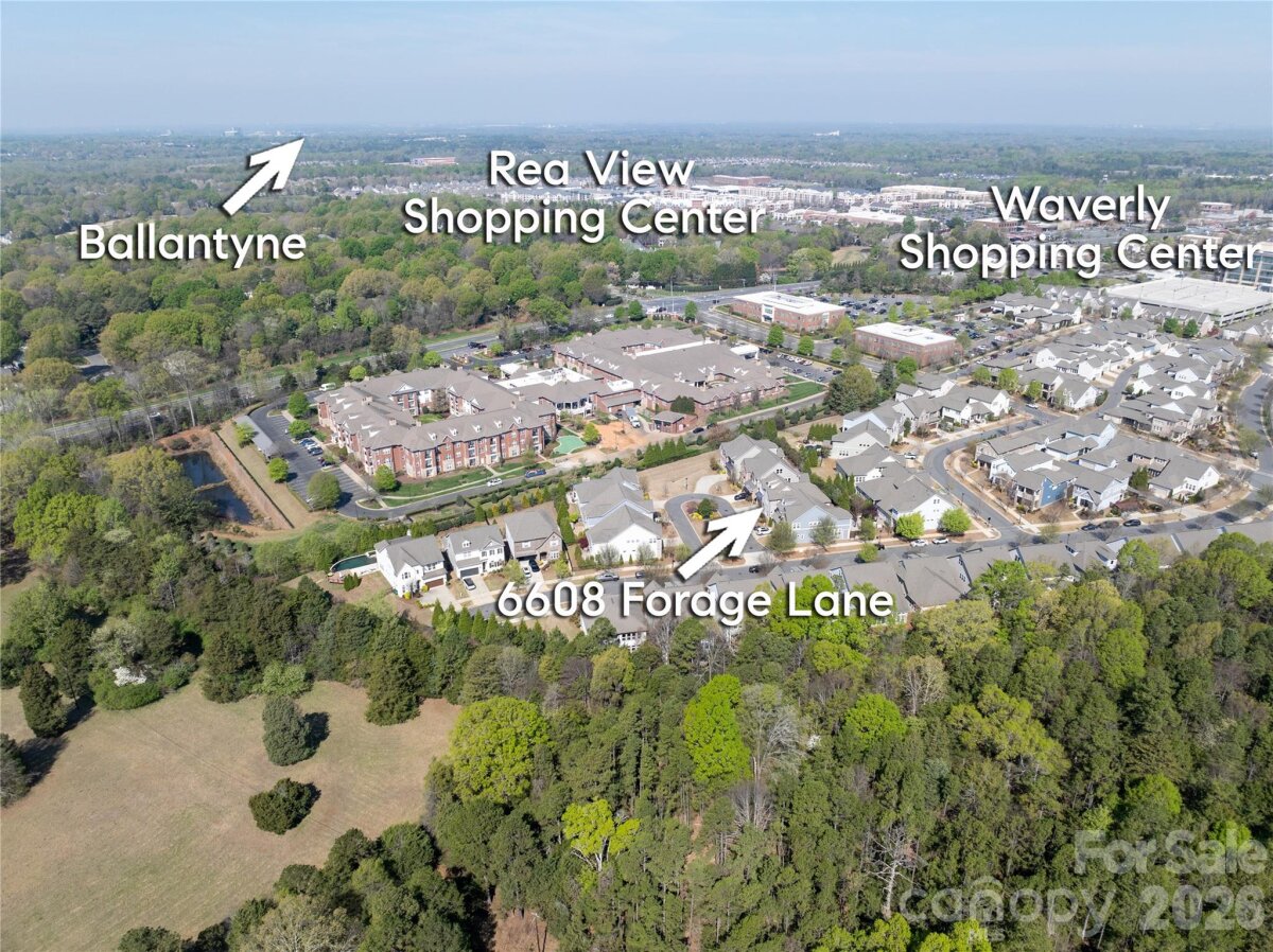 Located in the highly sought-after Waverly community- this beautifully designed David Weekly home blends sophisticated finishes with the convenience of walkable urban living. Just steps from Whole Foods, Foxcroft Wine Co., boutique shopping, dining, fitness studios, and hotels, this location offers one of the most vibrant lifestyle settings in the 28277 area. Open floor plan, primary on the main. The office has custom-built-in cabinetry. Primary suite with spa-like bathroom and large custom walk-in closet. Upstairs, you will find 2 spacious bedrooms and 2 full bathrooms with a loft. Step outside to a private paver patio with fire pit, creating an inviting outdoor retreat. Mature landscaping and fencing provide privacy and charm. Enjoy low-maintenance living, with landscape maintenance and irrigation included in the monthly HOA fee, allowing more time to enjoy the surrounding amenities. This home offers the rare opportunity to combine beautiful design, lock-and-leave convenience, and one of Charlotte’s most walkable lifestyle locations.