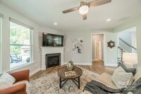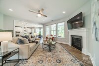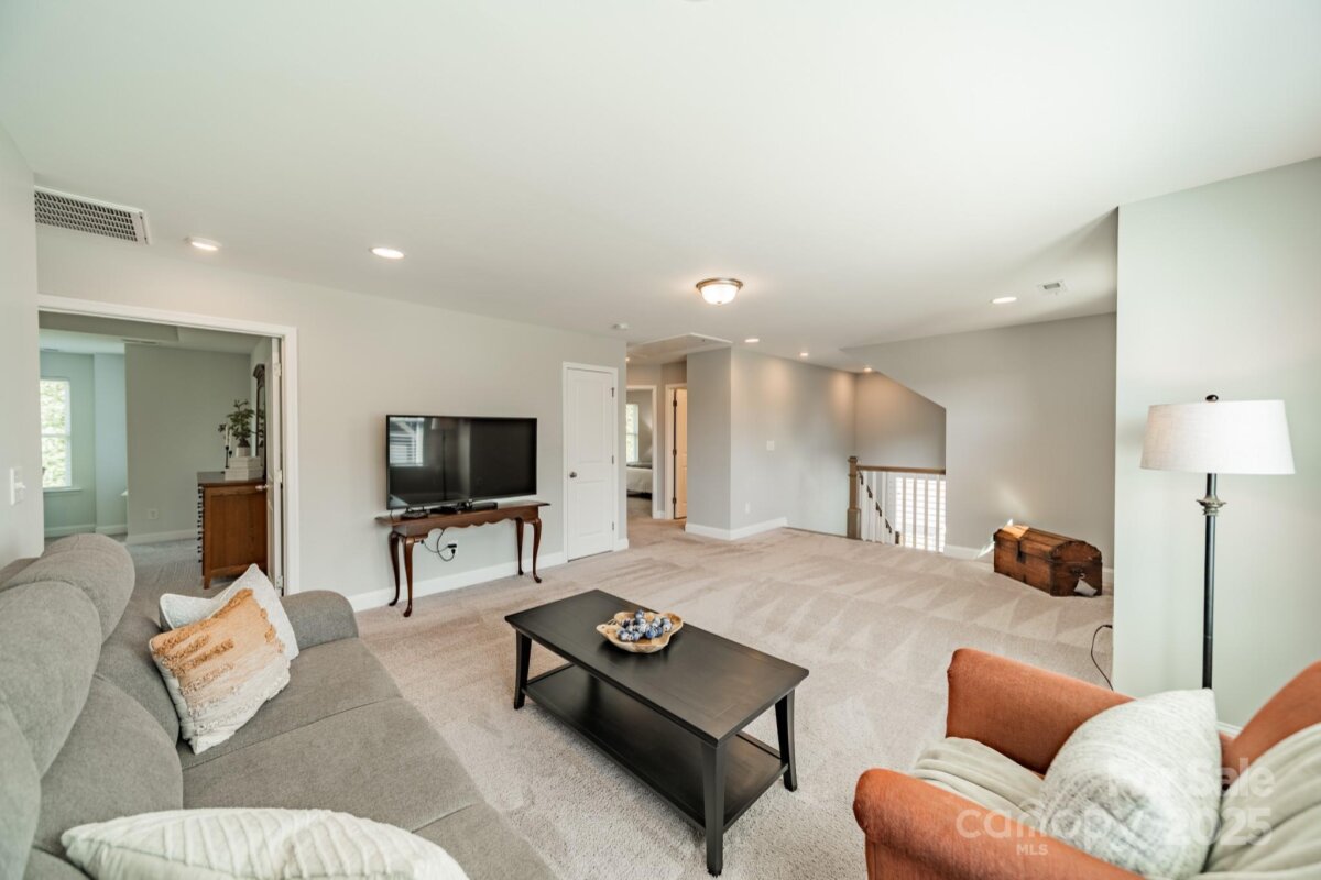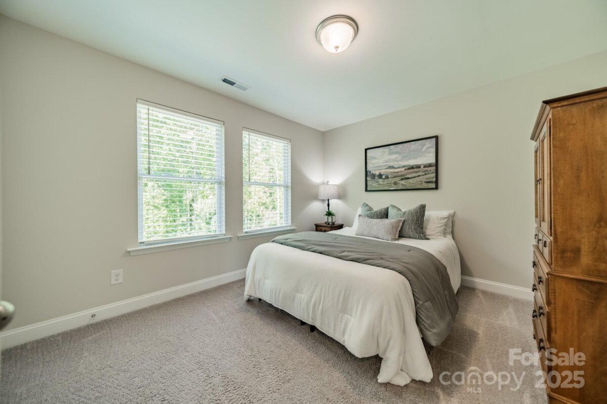 Stunning home with architectural charm, a premier tree-lined lot, and a backyard patio you'll never want to leave! Settle in and make the most of lakeside living in this amenity-rich community! Step inside, where the open floor plan keeps everyone connected while you soak up the sun-filled living space and gorgeous backyard views! The kitchen is the heart of the home with Lagoon Quartz countertops, a massive island (charcuterie board approved!), crisp white cabinetry, stainless steel appliances and a gas cooktop ready for your favorite recipes! The main level bedroom and full bath are perfect for guests or an extra home office. Upstairs, the primary suite is your own getaway - complete with a sitting area, en suite bathroom with tiled shower and a walk-in closet! The loft is ready for movie nights, play dates, or maybe even that Peloton studio you’ve been dreaming about! The back yard space is a show stopper - framed by tall trees and tucked on a premier lot, it’s designed for both relaxation and entertainment! Sip morning coffee on the covered patio, host friends on the paver patio, or gather around the outdoor fireplace where every evening feels like a mini getaway - no reservations required! The community is full of resort style amenities with kayak + boat launch, Pickleball court, two pools, dog park + boat & RV storage! Cruise in your golf cart and head to the pool or pop by a neighbor’s porch! Hop on the boat to all that Lake Wylie has to offer. Life on the lake starts now! Just minutes to the airport, Uptown, The Whitewater Center + downtown Belmont! Welcome Home!