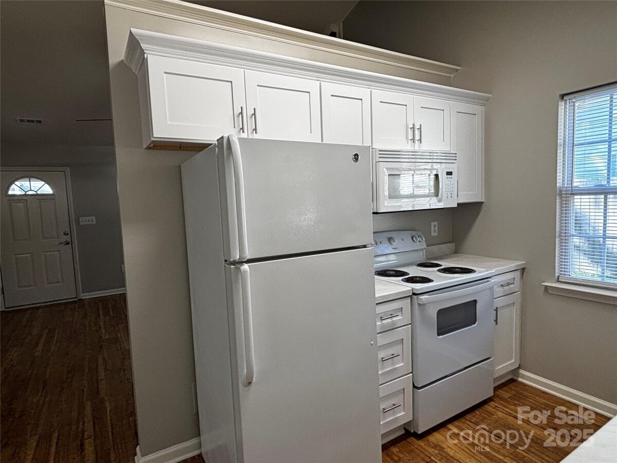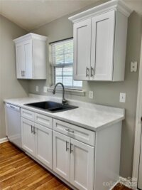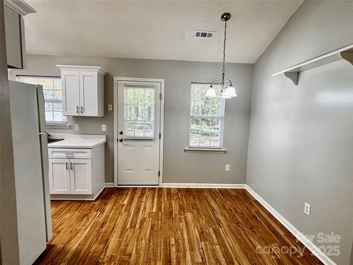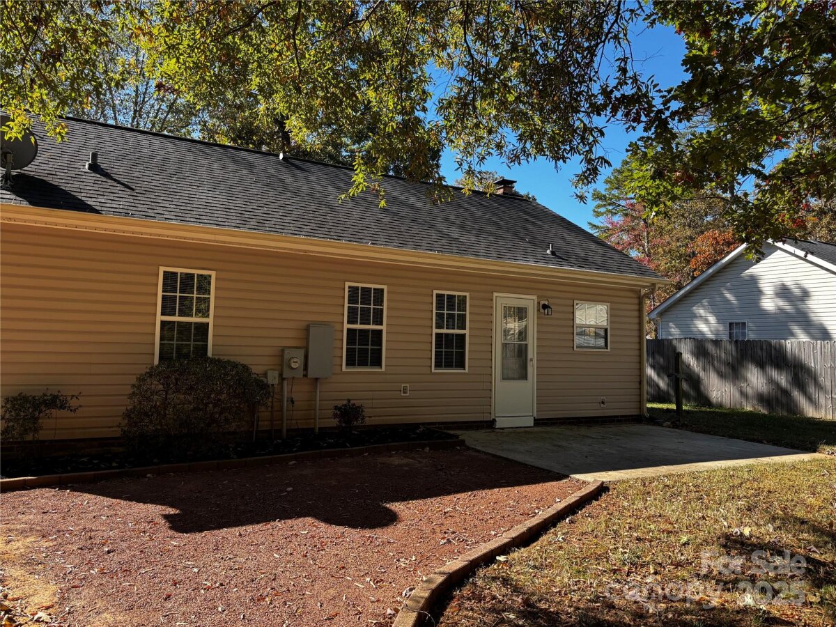 Welcome to this beautifully maintained one-story home nestled in a peaceful, established neighborhood with no HOA. Surrounded by mature trees and well-kept landscaping, this home offers the perfect blend of comfort, convenience, and character. Inside, you’ll find 993 square feet of thoughtfully designed living space featuring a vaulted ceiling, wood-burning brick fireplace, and freshly updated kitchen and bathrooms. The kitchen features new cabinets that provide a clean, refreshed look, while the bathrooms have been tastefully upgraded for a move-in ready feel. LVP flooring runs throughout, adding a fresh, cohesive look and easy maintenance. Step outside to a spacious, level yard—ideal for relaxing, gardening, or entertaining. The property also includes a 20’ x 11.5’ outbuilding with 220 power, perfect for a workshop, studio, or extra storage. There’s no garage, but the owners have added ample parking space for convenience. Located just minutes from downtown Indian Trail and Matthews, with easy access to I-485 and Highway 74, this home combines small-town charm with modern accessibility.