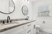 Beautifully renovated two-story home on a spacious, wooded lot offering privacy and charm. This move-in-ready property features a welcoming covered front awning, LVP Flooring throughout, and stunning foyer entry! The extra room downstairs makes the perfect space for an office w/full bath featuring single vanity and custom tile shower! This leads right into the spacious Laundry room! Entertain guests around the fireplace in the Great Room while still being connected from the Dining Area thanks to the great sight lines these spaces have! STUNNIING, bright open kitchen with white shaker cabinets, granite countertops, stylish custom tile backsplash, and stainless steel microwave, dishwasher, and range is ideal for any cook! UP: All bedrooms are upstairs. The 2 guest rooms are great sizes and share a full bath w/single vanity and tub/shower combo. The Primary Suite is an oasis featuring an updated bathroom w/dual granite vanity, and custom tile shower. A perfect blend of classic character and contemporary finishes — don’t miss this turnkey opportunity!