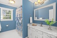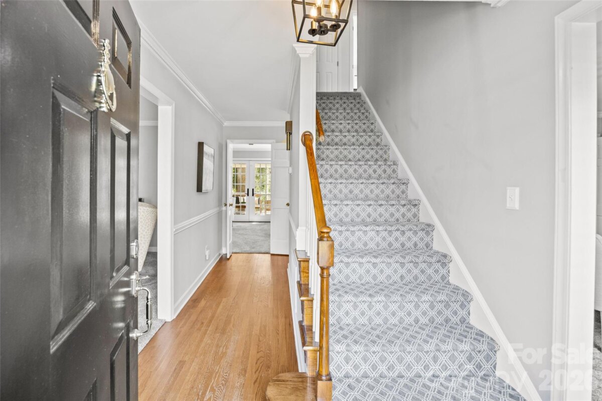 Beautifully situated just minutes from SouthPark, this stunning two-story full brick traditional home in Hampton Leas offers timeless charm, thoughtful updates, and a floorplan designed for both everyday living and effortless entertaining. Step inside to find elegant formal living and dining rooms, perfect for hosting holidays or intimate gatherings. The spacious, updated kitchen is truly the heart of the home, featuring crisp white cabinetry, quartz countertops, tile backsplash, and stainless steel appliances. It opens seamlessly to the inviting family room, where a painted fireplace flanked by built-in bookshelves creates a warm and welcoming focal point. An atrium door leads to a wonderful screened porch and deck overlooking the expansive backyard. While the yard is fully fenced, the property extends well beyond the fence line, offering an impressive .58-acre lot with plenty of room to play, garden, or simply enjoy the privacy. Just off the kitchen, a large laundry room provides everyday convenience and includes a back staircase leading to the bonus room — a fantastic flexible space for a playroom, home office, or media room. Upstairs, you’ll find four generous bedrooms, including a spacious primary suite that easily accommodates a king-sized bed. The beautifully renovated primary bath features a neutral tile shower and flooring, along with a new vanity for a fresh, timeless feel. The secondary bedrooms are all well-sized and share a hall bath. Meticulously maintained and thoughtfully updated, this home shines with fresh interior paint, updated light fixtures, new carpet, and exterior trim painted in Fall 2025. The kitchen and baths have all been upgraded, offering move-in ready convenience in one of the area’s most desirable neighborhoods. A classic home in a prime location — ready for its next chapter.