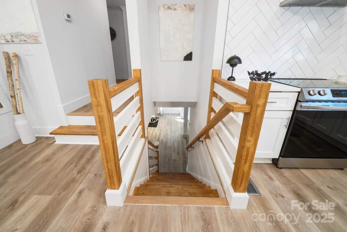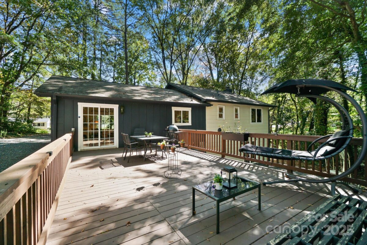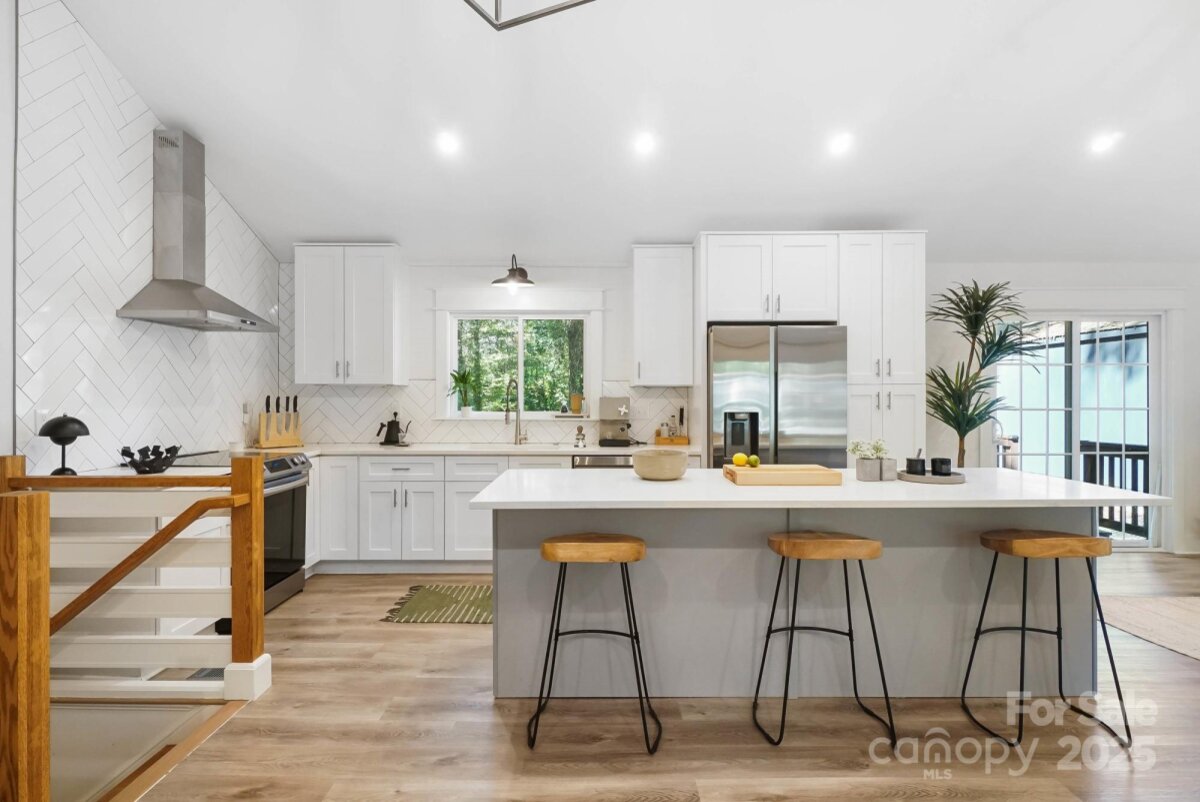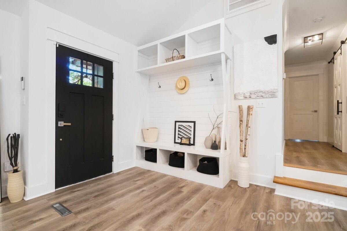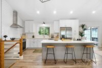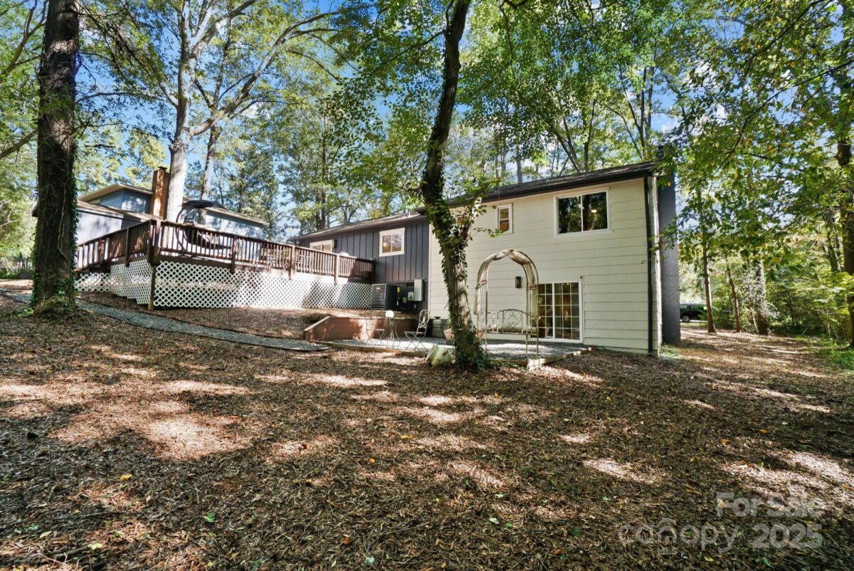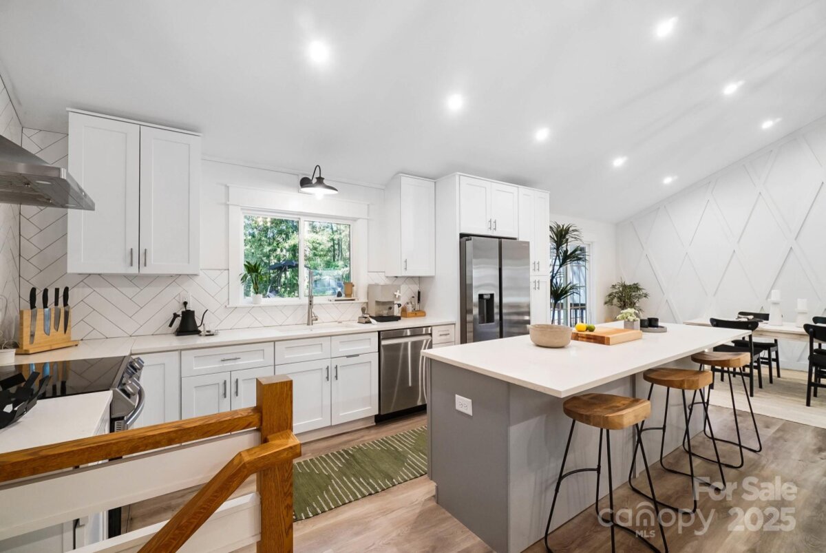 REDUCED $15k! This fully renovated home blends style, comfort, and functionality in every detail. Step inside to an open-concept layout highlighted by vaulted cathedral ceilings, exposed wood beams, designer lighting, and a stunning feature wall that creates architectural interest and warmth. The chef’s kitchen is the centerpiece of the home, showcasing quartz countertops, a large island with built-in microwave, stainless steel Samsung appliances, soft-close cabinetry, and a full herringbone tile backsplash. The dining and living areas flow effortlessly together and are ideal for entertaining or quiet evenings surrounded by natural light. Throughout the home, custom trim, shiplap accents, and sliding barn doors add character, while durable luxury vinyl plank flooring provides beauty and easy maintenance. The primary suite offers a peaceful retreat with a designer barn door, walk-in closet, and spa-inspired bath featuring modern vanity and fixtures, and a beautifully tiled shower surround. Two additional bedrooms or flex spaces complete the thoughtful layout. Additional highlights include a custom mudroom built-in, a spacious den on the lower level with a wood burning fireplace, upgraded lighting and hardware, and fresh paint throughout. Step through the sliding doors onto a spacious deck overlooking a wooded backdrop, perfect for morning coffee or evening gatherings around the fire-pit. You might even spot a few deer. Located close to shops and dining, Reedy Creek Park, UNCC, NODA, Plaza-Midwood and uptown Charlotte. This home offers the perfect blend of convenience, design, and serenity. Every finish has been carefully selected to create a space that feels both fresh and timeless. Welcome home.