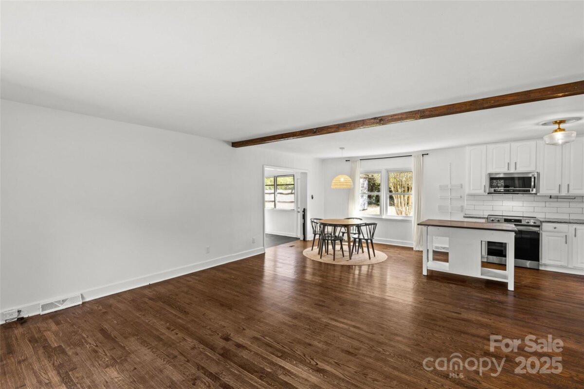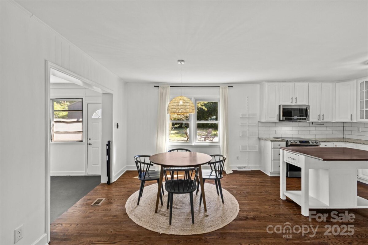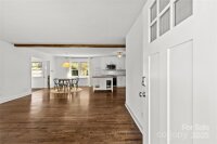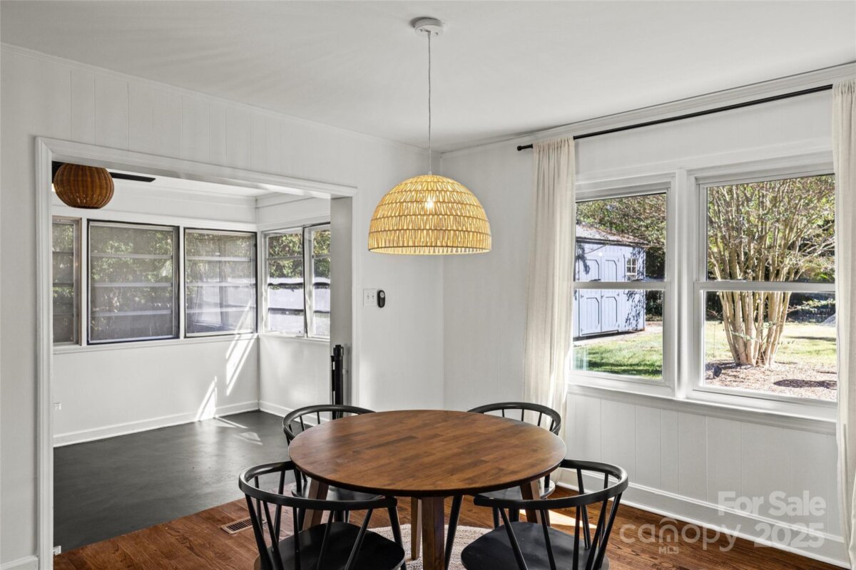 Discover this stunning updated home featuring charming curb appeal with a fresh coat of white paint on the brick exterior, added in 2020. Inside, enjoy an open-concept layout seamlessly connecting the kitchen, dining, and family room, accented with beautiful faux wood beams and restored original hardwood floors throughout. The modern white kitchen boasts granite countertops, soft-close cabinets, a solid wood island, and stylish new lighting fixtures. Updated bathrooms showcase new fixtures and designer touches, including luxury vinyl plank in the master bath and upgraded hexagon tile in the secondary bath. Freshly painted in trendy colors, the home also offers versatile spaces such as the sunroom/den, complete with a vented portable AC unit and newly insulated attic for comfort. Relax outdoors on the pea gravel patio with solar lighting and a stone fire pit, surrounded by a privacy fence and recently stained gate for added seclusion. Located just minutes from lush parks, excellent shopping, dining options, and Charlotte’s vibrant Uptown area plus Matthews charming downtown, this home offers the perfect blend of comfort and convenience. Enjoy easy access to nearby parks for outdoor activities, retail therapy, and top-tier restaurants, all while being close to the diverse attractions and opportunities that Charlotte has to offer. Don’t miss the chance to make this impressive residence your new home!