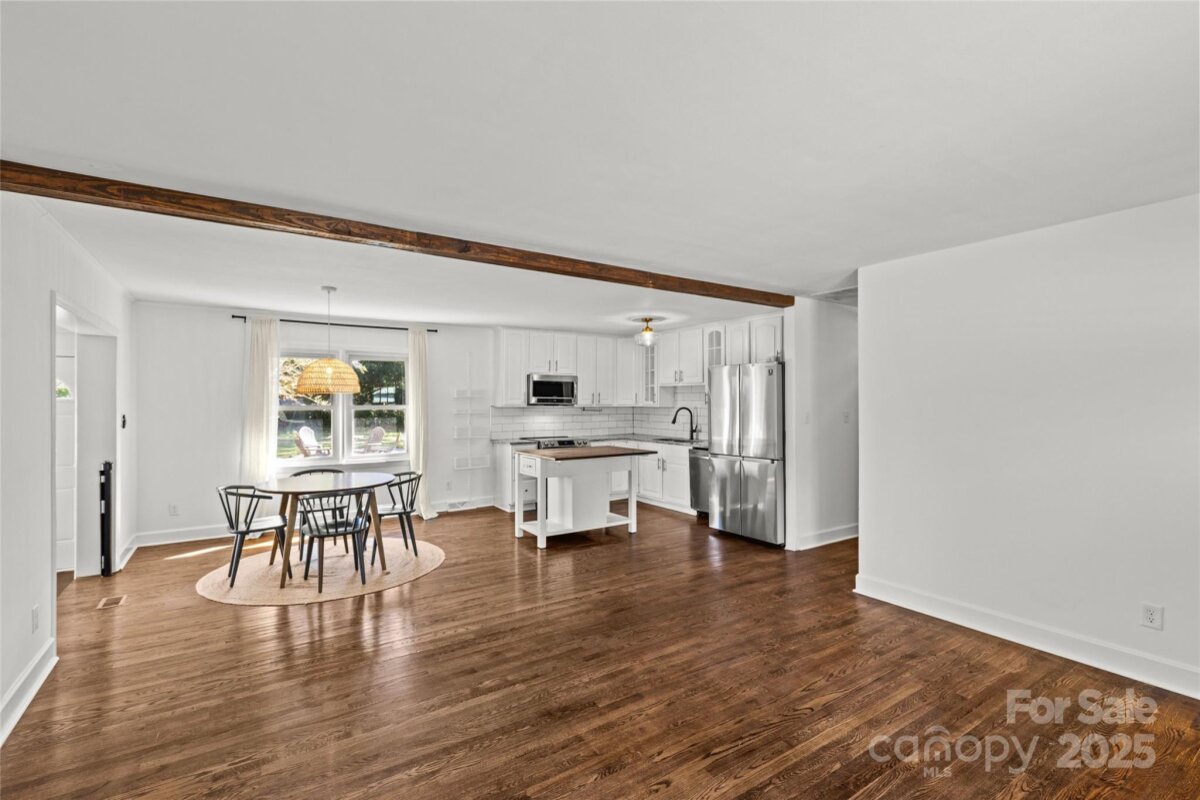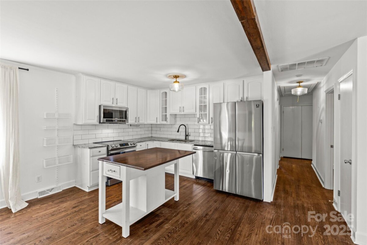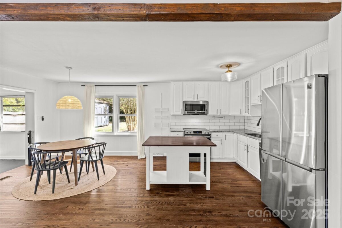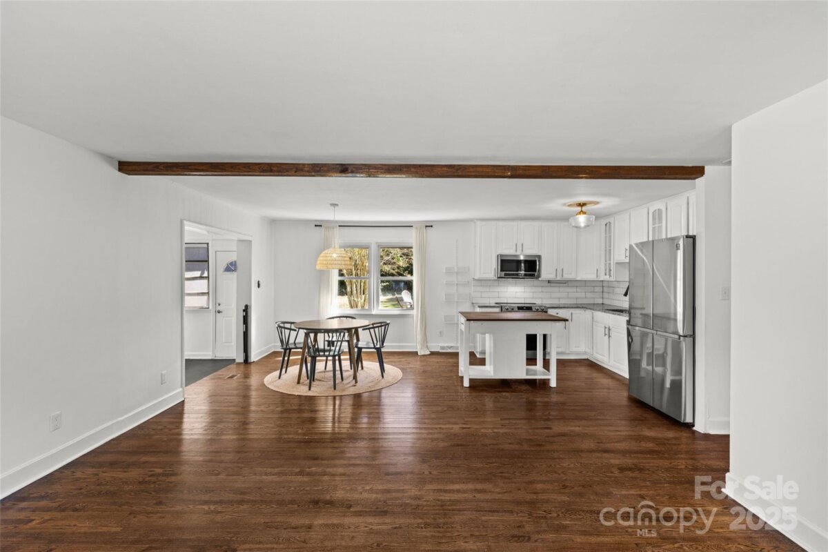 Discover this stunning updated home featuring charming curb appeal with a fresh coat of white paint on the brick exterior, added in 2020. Inside, enjoy an open-concept layout seamlessly connecting the kitchen, dining, and family room, accented with beautiful faux wood beams and restored original hardwood floors throughout. The modern white kitchen boasts granite countertops, soft-close cabinets, a solid wood island, and stylish new lighting fixtures. Updated bathrooms showcase new fixtures and designer touches, including luxury vinyl plank in the master bath and upgraded hexagon tile in the secondary bath. Freshly painted in trendy colors, the home also offers versatile spaces such as the sunroom/den, complete with a vented portable AC unit and newly insulated attic for comfort. Relax outdoors on the pea gravel patio with solar lighting and a stone fire pit, surrounded by a privacy fence and recently stained gate for added seclusion. Located just minutes from lush parks, excellent shopping, dining options, and Charlotte’s vibrant Uptown area plus Matthews charming downtown, this home offers the perfect blend of comfort and convenience. Enjoy easy access to nearby parks for outdoor activities, retail therapy, and top-tier restaurants, all while being close to the diverse attractions and opportunities that Charlotte has to offer. Don’t miss the chance to make this impressive residence your new home!