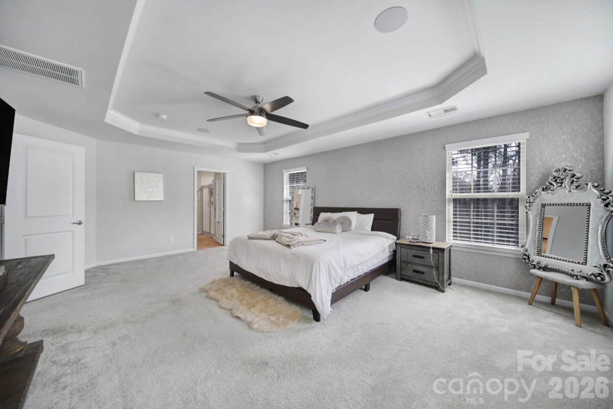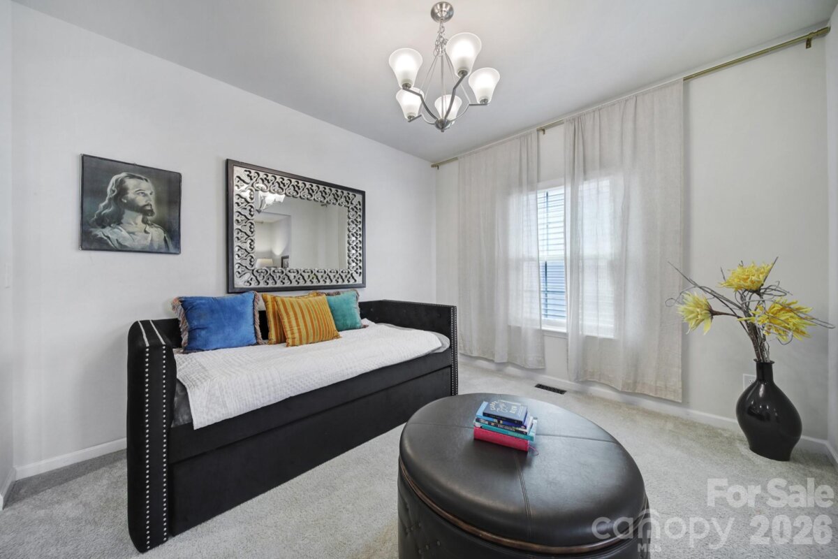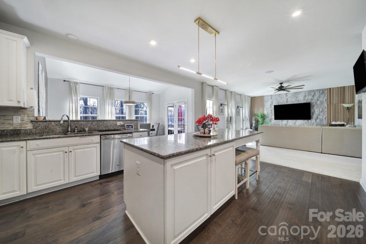 Beautifully maintained 4-bedroom, 3.5-bath home with a finished basement, offering generous living space, modern upgrades, and a peaceful, private setting. The home backs to a protected wooded area, providing a natural backdrop and scenic views from many windows, along with a backyard that offers exceptional privacy. The gourmet kitchen is designed for both everyday living and entertaining, featuring granite countertops, a spacious island with breakfast bar seating, stainless steel appliances, a gas range, and a vented exhaust hood. The formal dining area is filled with natural light and designed with large windows, creating a bright, sunroom-like atmosphere with beautiful views of the surrounding greenery. The living room has been enhanced with an additional window to further capture the wooded views. Upstairs features the primary suite, two additional bedrooms, and a spacious loft, offering flexible living space ideal for a media room, home office, or additional lounge area. The primary suite offers a comfortable retreat with a tray ceiling, two walk-in closets, dual vanities, a large walk-in shower, and a private water closet. The finished basement provides excellent additional living space and flexibility, complete with a living area, bedroom, full bathroom with a walk-in shower, and a storage room already plumbed for a potential future kitchenette—ideal for extended living or guest quarters. This home is equipped with extensive upgrades, including a whole-home monitoring system covering bedrooms, living areas, and basement, a built-in stereo system with speakers throughout the home and on the deck, exterior cameras with front door intercom, a full surveillance system, remote garage entry, and a smart home setup with over 100 connected devices. Additional highlights include multiple flexible living spaces such as two front rooms, a morning room, and loft, as well as a convenient drop zone connecting the garage, powder room, and basement access. Residents enjoy access to outstanding community amenities including two pools, a splash pad, basketball and volleyball courts, walking trails, and a fitness center. The community offers convenient access to trails, with the pool accessible via a nearby path. Ideally located near shopping, dining, major highways, public transportation, and Charlotte Premium Outlets, with easy access to the greater Charlotte area. This home offers space, privacy, and modern convenience—schedule your showing today.