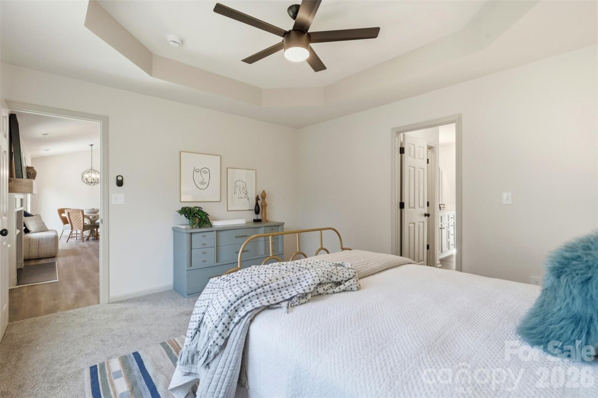 Renovated to perfection, this 4-bed, 2-bath home is tucked away on a quiet cul-de-sac lot, just 15 minutes from Uptown Charlotte. Upon entry, you’re welcomed to a stunning open-concept main living area with vaulted ceilings that create a bright & spacious feel. The family room centers around a cozy gas fireplace with a wood mantel & custom trimwork, adding warmth & character. Beautifully updated kitchen features freshly painted cabinetry, quartz countertops, tile backsplash & new stainless steel appliances. Overlooking the dining area & main living space, the layout is ideal for entertaining guests! Additional upgrades include new LVP flooring & carpet, fresh interior paint & modern lighting throughout. The main-level primary suite is conveniently located off the family room & offers a gorgeous ensuite bath with oversized tile shower, double-sink vanity & walk-in closet. Split floor plan provides added privacy, with two secondary bedrooms sharing a full bath on the main level. Upstairs, a spacious fourth bedroom or bonus room offers incredible versatility— Perfect for a playroom, game room, or movie room (options are endless)! Relax outdoors on the rear concrete patio overlooking the spacious backyard, which backs up to the neighborhood trail leading to Hammond Lake. Just a short walk to peaceful views that can be enjoyed year-round! With close proximity to I-85, commuting to the city has never been easier! **Through preferred lender, this property qualifies for up to $10,000 in incentives-- Up to $5,000 toward closing costs, $5,000 to reduce down payment AND no PMI (subject to lender approval and buyer qualification). Contact listing agent for details!**