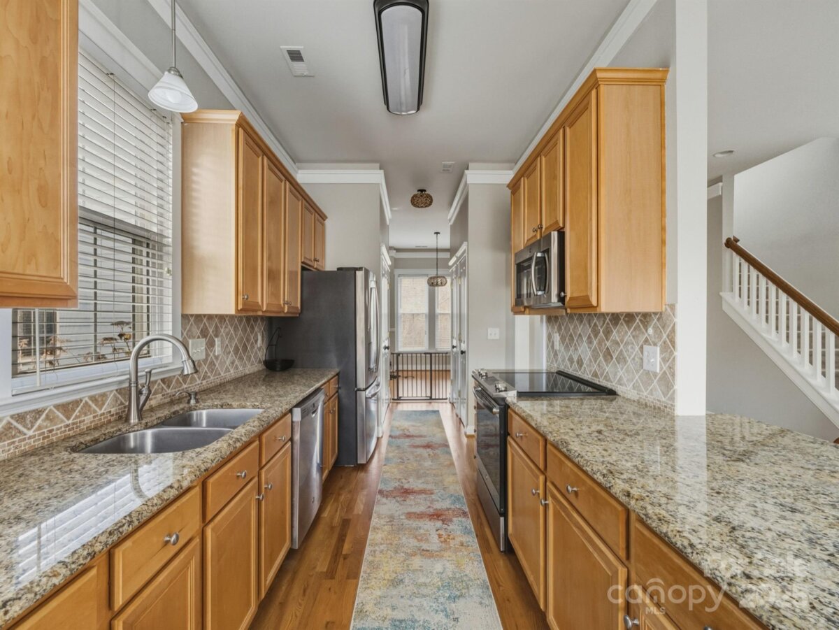 This inviting 3 BDRM, 2.5 BATH 'furnished' Corporate Home is situated in the sought-after Douglas Park neighborhood. Used as corporate housing for company employees and clients since 02/2023, the open concept features a large furnished living room with lovely gas-log fireplace, and wall-mounted flat screen TV. The formal dining room connects to the gourmet kitchen with granite countertops, stainless steel appliances + refrigerator, ample cabinetry, and a large island—ideal for casual meals or entertaining guests. Upstairs, the primary suite serves as a tranquil retreat with a generous walk-in closet, dual vanities, and a relaxing soaking tub in the en-suite bath. Two additional well-proportioned bedrooms share a full hall bath, providing plenty of space for family, guests, or a home office. A versatile bonus room on the upper level adds flexibility for a media room, play area, or fourth bedroom. Laundry room includes seldom used Samsung Washer & Dryer. Step outside to a fully fenced backyard with lush landscaping and a stone-accented patio and detached 2 car garage.