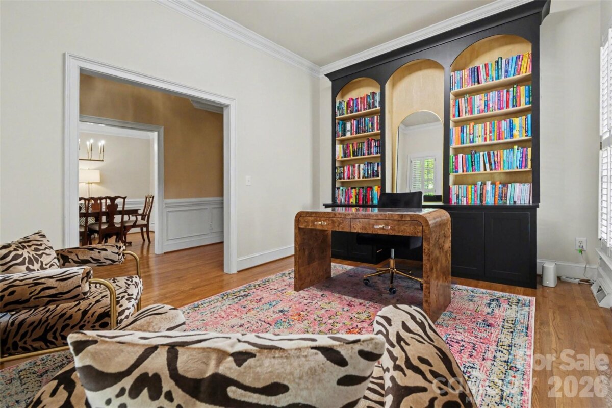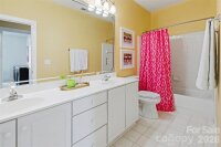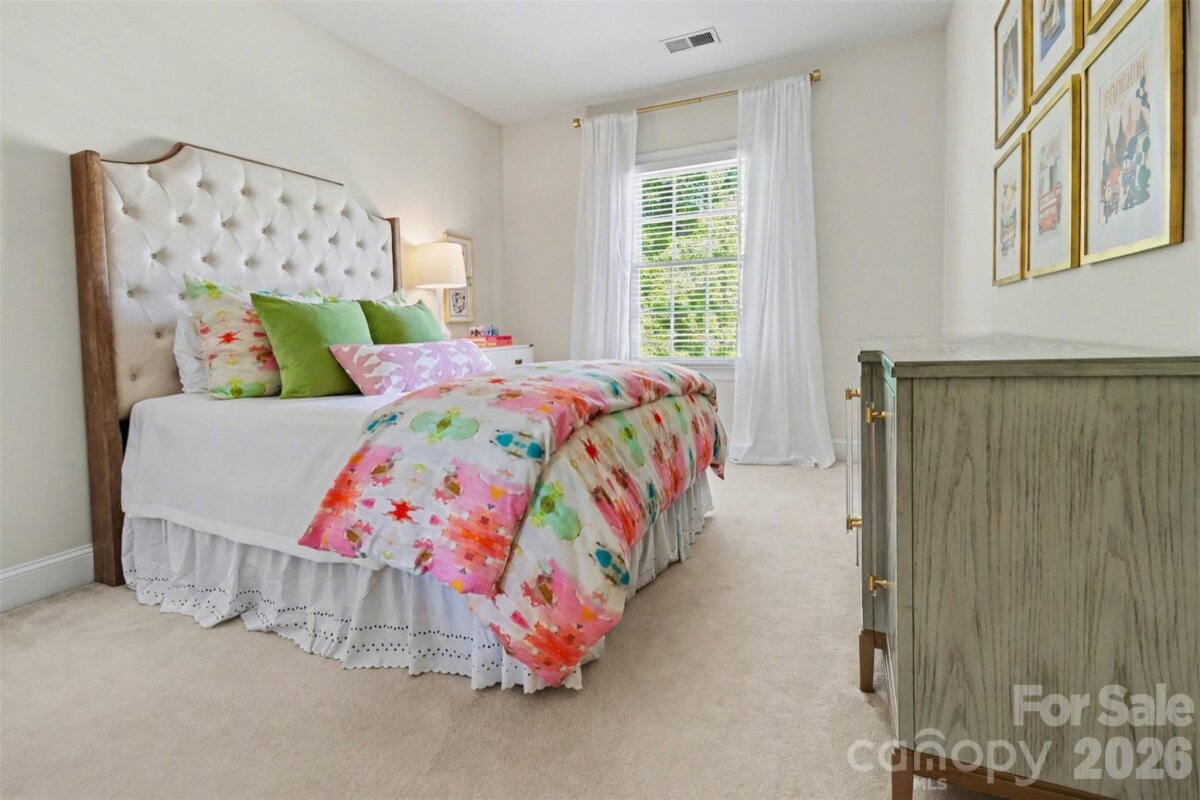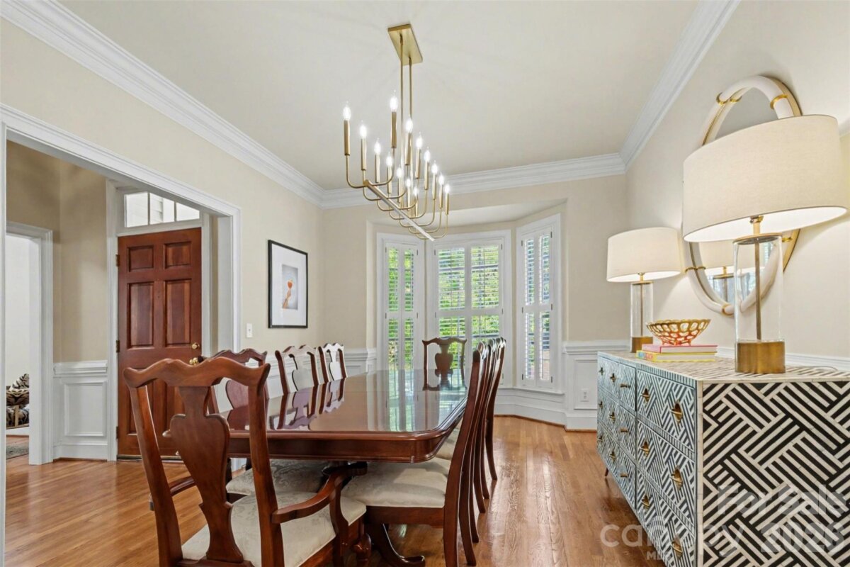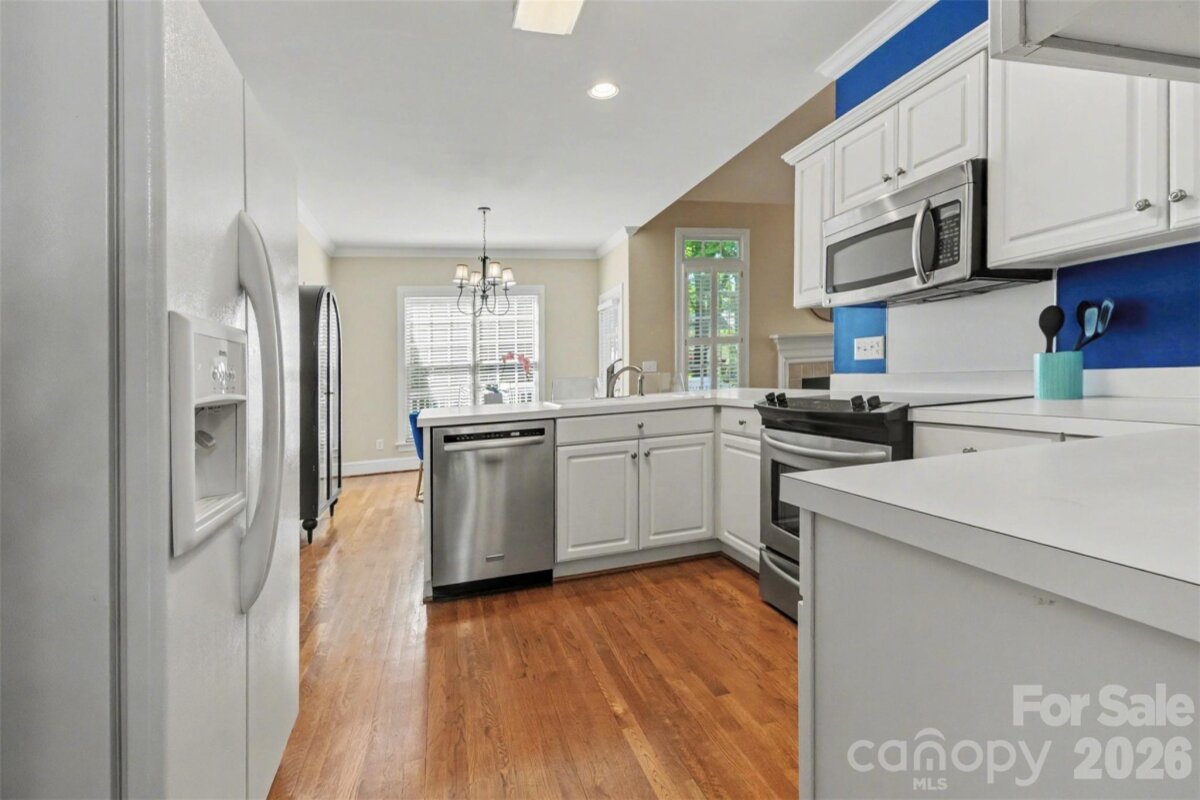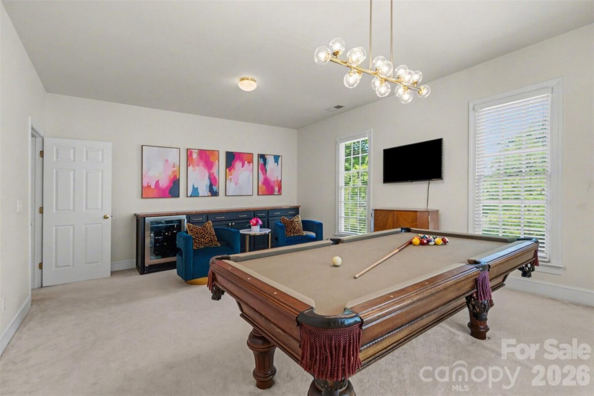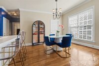 Welcome home! From the moment you arrive, the inviting rocking chair front porch sets the tone—warm, welcoming, and ready to greet you. Step inside this beautifully maintained two-story home where original hardwood floors lead you through a traditional yet flexible layout, including a formal dining room and a living room or home office. Just beyond, the impressive two-story family room with a cozy gas fireplace opens seamlessly to the kitchen, complete with an eat-in dining area—perfect for everyday living and entertaining. The main level also features a spacious primary suite with a private ensuite bath, along with a convenient laundry room, half bath, and direct access to the two-car garage. Step outside to enjoy the fenced backyard and deck, offering a peaceful, wooded backdrop ideal for relaxing or hosting gatherings. Upstairs, you’ll find three generously sized guest bedrooms, a full bath, and an expansive flex room designed for fun and function—complete with a custom bar/beverage center, refrigerator, and pool table. Just off the landing, a large walk-in storage room with built-in shelving and pull-down attic access adds even more practicality. Additional highlights include plantation shutters, updated lighting, and a private setting within the charming, walkable Orchid Hills community—just minutes from shopping, dining, I-485, and entertainment. This is more than a house—it’s a place to truly feel at home. Don’t miss your chance to make it yours! The following items do not convey with the property: Washer & dryer; navy bookcase in office; teal bookcase in upstairs movie room and the outdoor grill do not convey.
