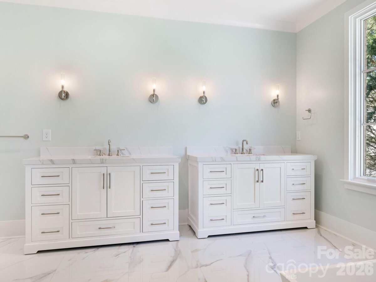 Experience refined living in one of Charlotte’s most desired neighborhoods. 6740 Newhall Road is a statement of modern luxury—new construction crafted with timeless elegance and an eye for elevated detail. With more than 5,800 square feet, 6 bedrooms, and 6.5 baths, this home delivers the scale, sophistication, and lifestyle today’s discerning buyer expects. The moment you step inside, the home’s thoughtful design becomes clear. The main level offers flexible bedroom suite options, perfect for guests, work, or private retreat spaces. The gourmet kitchen is a showstopper, featuring paneled cabinetry, a full size wine tower, and an oversized island designed for both everyday living and high end entertaining. The wet bar, wrapped in full slab marble and finished with sleek metal cabinetry, elevates the home’s modern aesthetic. Upstairs, the primary suite feels like a boutique hotel—spacious, serene, and beautifully appointed. Three additional ensuite bedrooms provide comfort and privacy alike. Outside, the covered rear porch with outdoor fireplace creates a seamless extension of the living space, perfect for year round gatherings. The detached two car garage enhances the home’s stately presence, while the .37 acre lot offers room to design your dream outdoor oasis. The full walkout lower level adds another layer of luxury and flexibility, featuring its own private entrance, covered patio with fireplace, finished rec room/bedroom, walk in closet, full bath, and a roughed in kitchenette. It’s an ideal setup for multigenerational living, a private guest suite, or a sophisticated entertainment level. Set in one of Charlotte’s most established communities, this home offers unmatched access to SouthPark or Uptown, along with premier private school options just moments away. New construction of this caliber—within a neighborhood of this pedigree—is a rare opportunity. This is luxury living at its most effortless and refined.