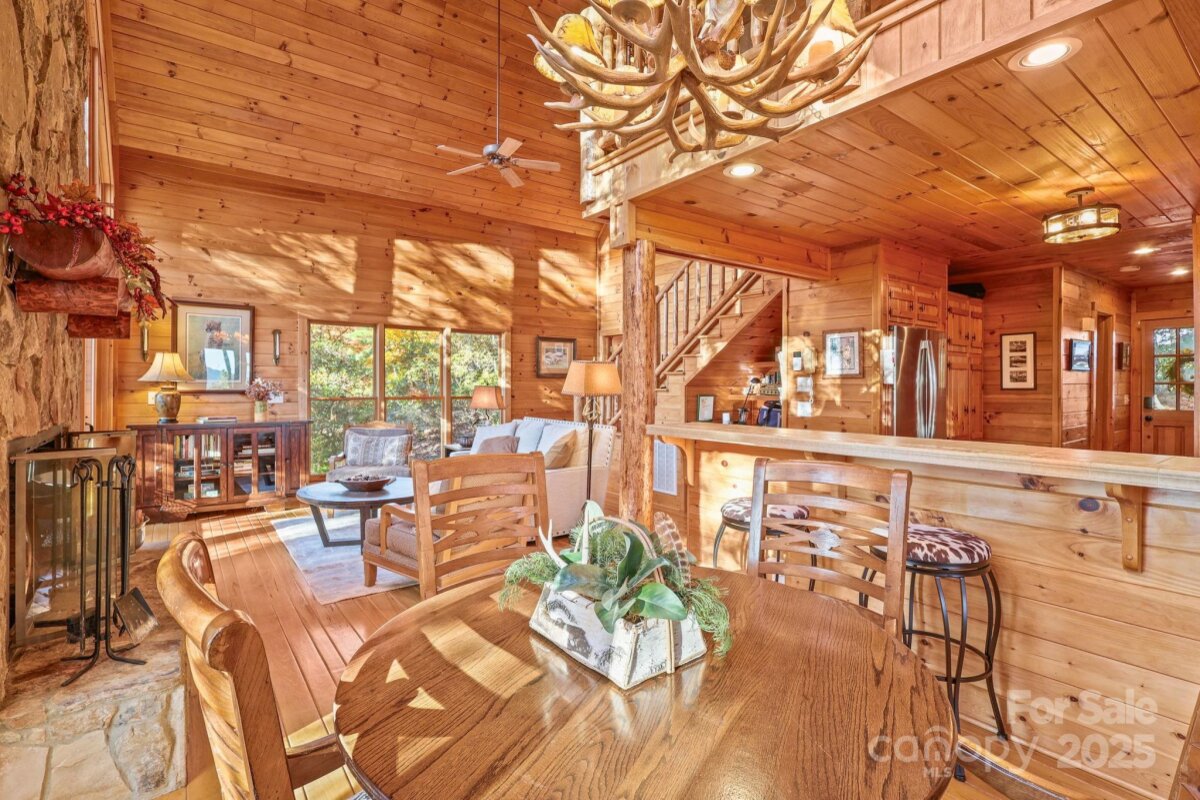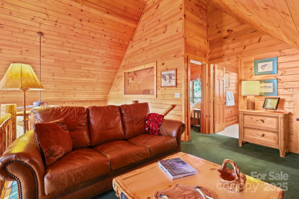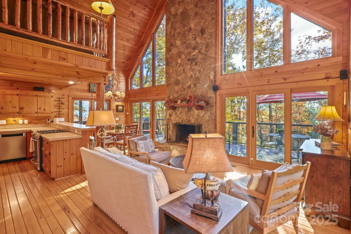 This beautiful 2BR 2BA mountain ridge-top cabin on 10+ acres offers a serene escape defined by nature and tranquility. The setting is ideal for those seeking a haven to unwind, connect with nature, and soak in the beauty of the mountain environment and views. Features include a sunlit open floor plan with a soaring ceiling, a dramatic wood-burning stone fireplace, hickory floors, and pine paneling. The kitchen has GE Profile appliances and a high-top bar. The loft works as a game area, office, or additional sleeping space. The primary suite offers woodland views and its own balcony. A wonderful bonus is the large deck and screened-in porch to enjoy and entertain all year round! The walkout basement/1-2-car garage has a laundry hookup, is plumbed for 3rd toilet, and can be finished for added living space; it includes a 30-amp RV outlet. This Property has sunrise/sunset views, a flat driveway/yard, and room for a small pasture. Located in the pristine gated community of Leatherwood, amenities include hiking and horseback riding trails, a swimming pool, tennis, pickleball, and trout fishing nearby. Commercial venues outside the entrance include a restaurant, equestrian center, zipline, and campgrounds. Convenient to Boone, Blowing Rock, West Jefferson & Wilkesboro. The furnishings are negotiable, and the seller would consider selling the additional 10-acre contiguous parcel as well. A true gem awaits you. Come see today!