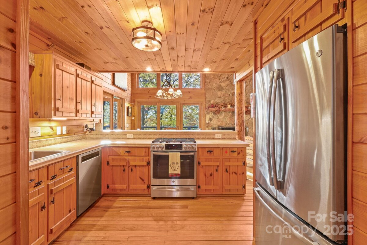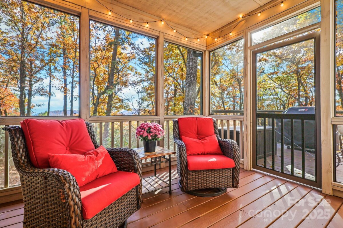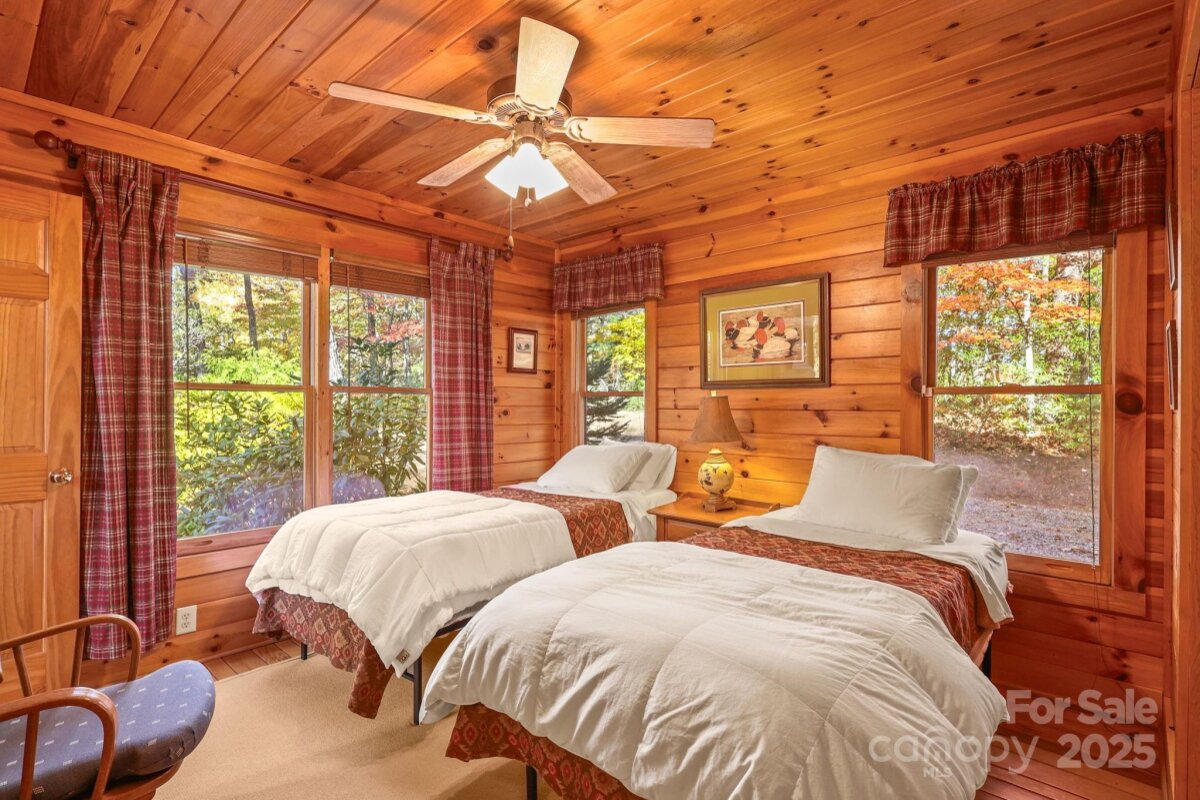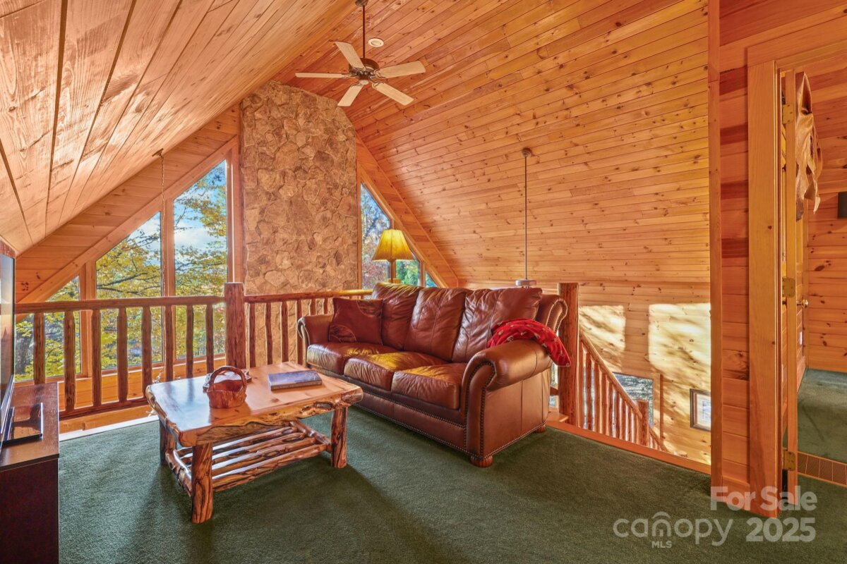 This beautiful 2BR 2BA mountain ridge-top cabin on 10+ acres offers a serene escape defined by nature and tranquility. The setting is ideal for those seeking a haven to unwind, connect with nature, and soak in the beauty of the mountain environment and views. Features include a sunlit open floor plan with a soaring ceiling, a dramatic wood-burning stone fireplace, hickory floors, and pine paneling. The kitchen has GE Profile appliances and a high-top bar. The loft works as a game area, office, or additional sleeping space. The primary suite offers woodland views and its own balcony. A wonderful bonus is the large deck and screened-in porch to enjoy and entertain all year round! The walkout basement/1-2-car garage has a laundry hookup, is plumbed for 3rd toilet, and can be finished for added living space; it includes a 30-amp RV outlet. This Property has sunrise/sunset views, a flat driveway/yard, and room for a small pasture. Located in the pristine gated community of Leatherwood, amenities include hiking and horseback riding trails, a swimming pool, tennis, pickleball, and trout fishing nearby. Commercial venues outside the entrance include a restaurant, equestrian center, zipline, and campgrounds. Convenient to Boone, Blowing Rock, West Jefferson & Wilkesboro. The furnishings are negotiable, and the seller would consider selling the additional 10-acre contiguous parcel as well. A true gem awaits you. Come see today!