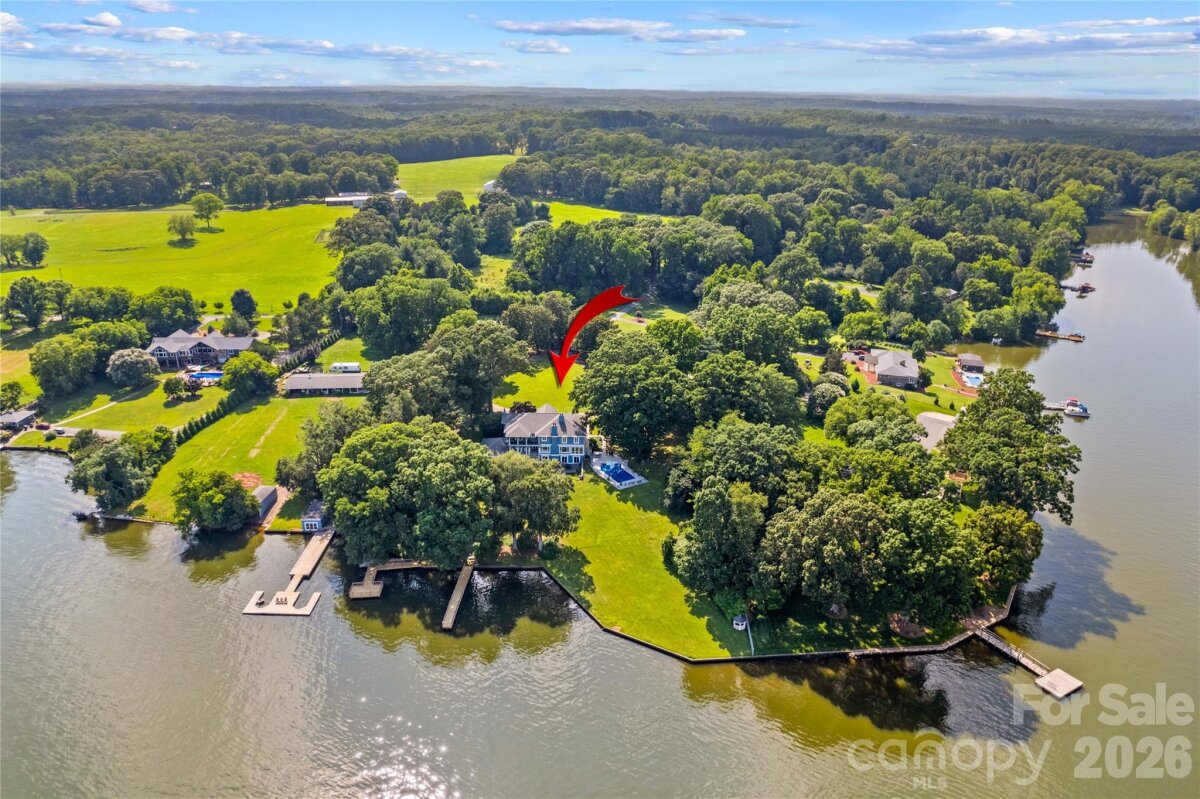 Spectacular lakefront living awaits on the shores of High Rock Lake! This extraordinary estate offers over 8,000 square feet of updated living space, designed to capture wide-range water views from nearly every room. Gated for privacy and set on 2.5± acres with almost 400 feet of shoreline, the property blends luxury, comfort, and resort-style amenities in a setting that is truly one of a kind. Step inside to discover an open floor plan where the chef’s kitchen—with striking quartz countertops—flows seamlessly into the main living area framed by soaring floor-to-ceiling windows. The primary suite is a retreat of its own, featuring a sitting area and a private patio overlooking the lake. With 6 spacious bedrooms, 7.5 beautifully updated baths, multiple flex and office spaces, a loft, and even a dedicated dog grooming area, this home is designed for both elegance and function. Expansive outdoor living is at the heart of this property. Enjoy breathtaking views from the large veranda off the main level or entertain on the walk-out patio from the basement level. A stunning 745-square-foot inground pool with stone surround serves as the centerpiece of your private backyard oasis. The property also includes two private piers (432 sf and 580 sf) and is perfectly suited for multi-generational living. Additional features include a 3-car garage, circular drive, and meticulous finishes throughout. From its unmatched water frontage to its luxurious interior, this home is the ultimate High Rock Lake retreat.