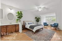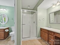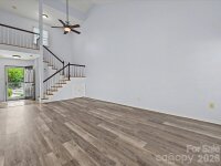 Welcome to this charming 1.5-story townhome in the desirable Renaissance on Carmel II community in Charlotte! A welcoming front patio and storm door entry set the tone for comfortable, easy living. Inside, you’ll find a dramatic two-story great room with a vaulted ceiling, filled with natural light and anchored by a cozy gas log fireplace—perfect for relaxing or entertaining. The adjacent kitchen is both functional and stylish, featuring granite countertops, a tile backsplash, electric range, and classy off-white cabinetry. Enjoy meals in the cozy breakfast nook with chandelier. A convenient pass-through window connects the kitchen to the main living space, enhancing the open feel. The main level includes a spacious bedroom with an ensuite bath, ideal for guests or flexible living needs, along with additional storage tucked neatly under the stairs. Upstairs, retreat to a private primary suite complete with its own ensuite bath and vanity. The primary closet also provides access to attic storage for added convenience. Step outside to enjoy the fenced backyard, where a concrete patio with paver extension creates the perfect setting for outdoor gatherings. An exterior storage room adds even more practicality. All of this is located just minutes from the dining, shopping, and entertainment options of South Charlotte, Pineville, Ballantyne & even a nice proximity to SouthPark —offering the perfect blend of comfort, convenience, and location.