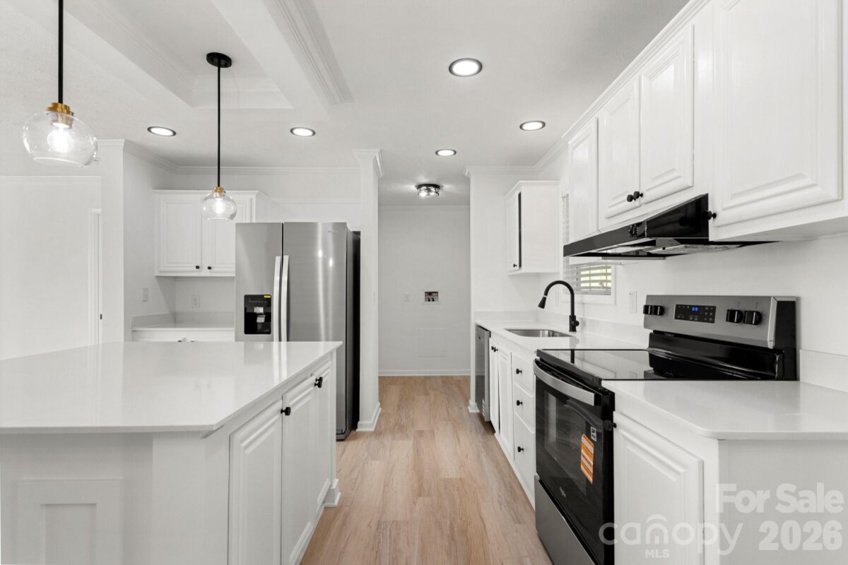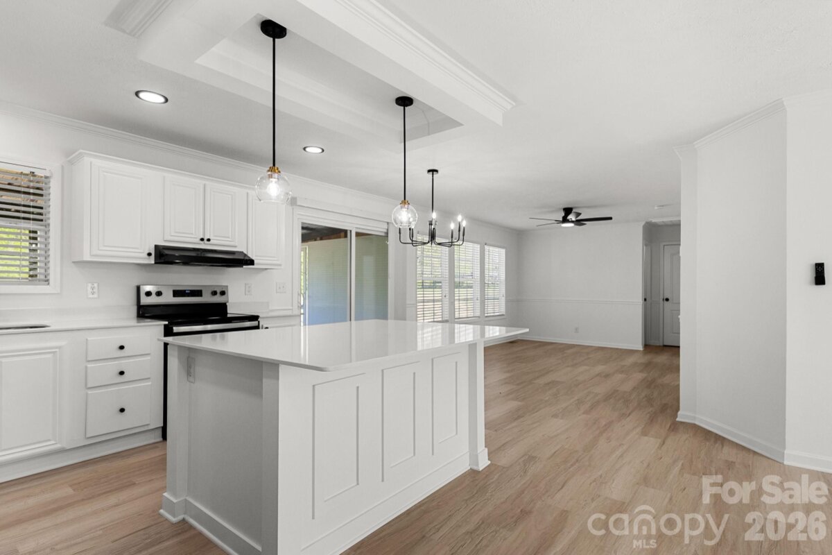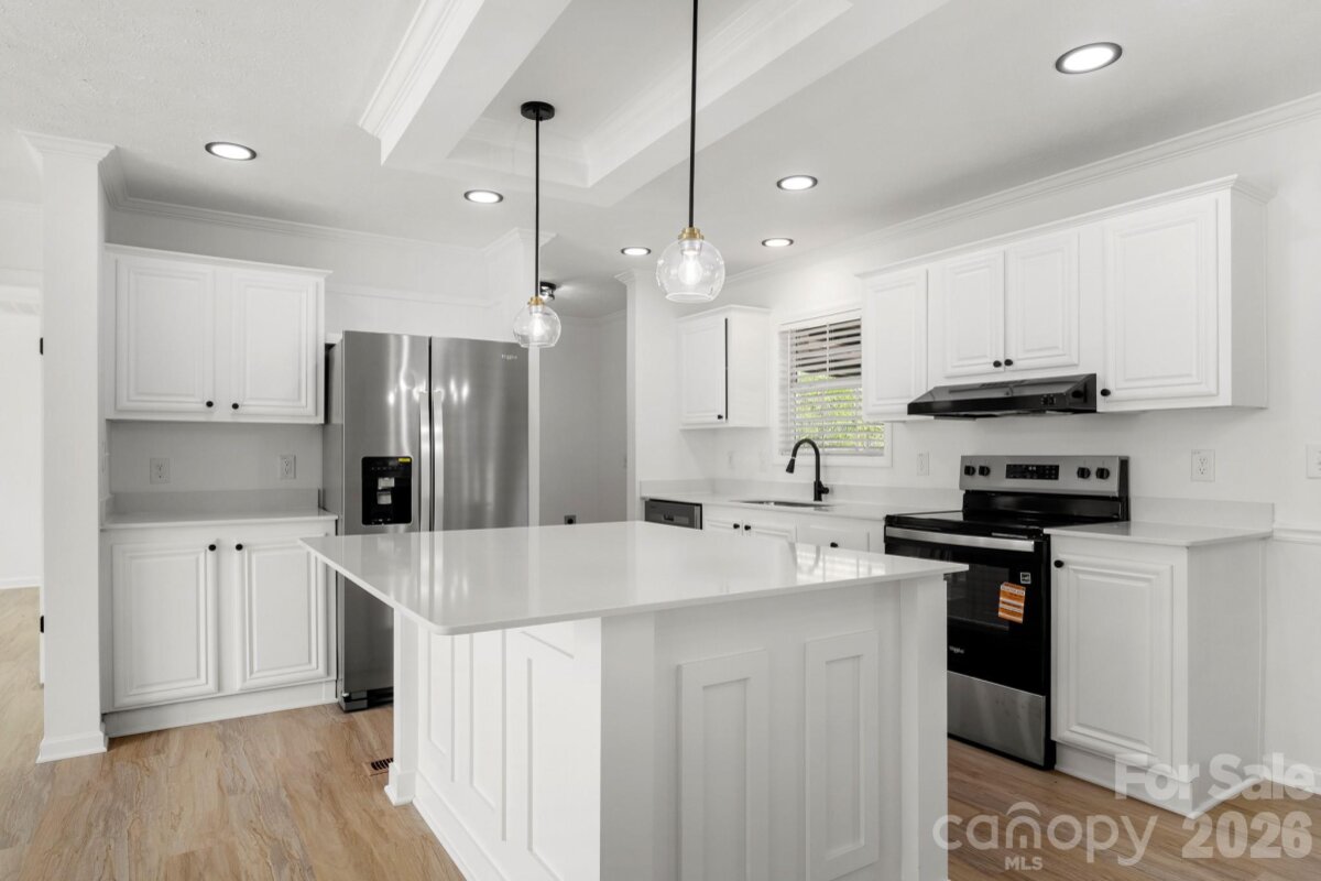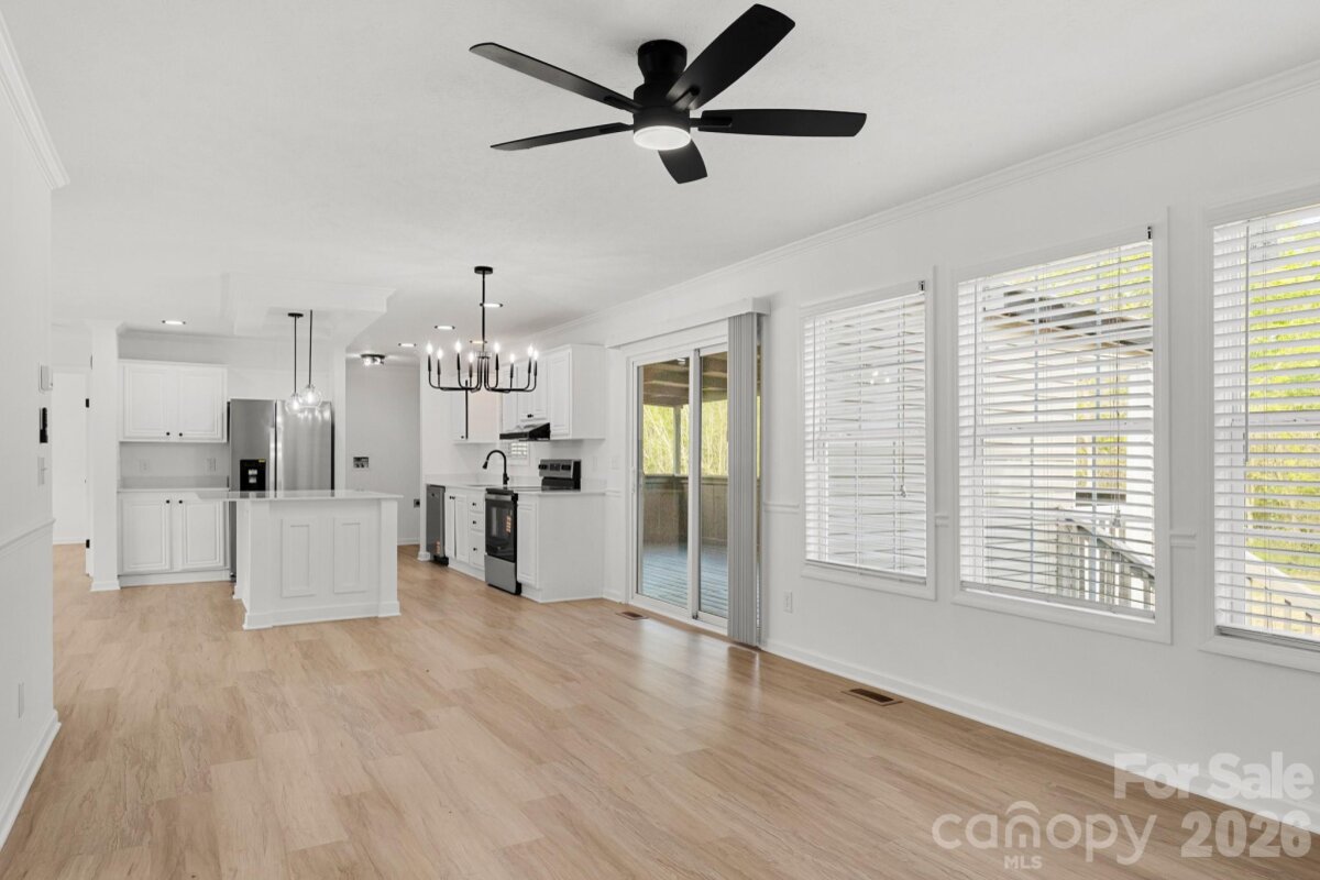 This home has been beautifully upgraded and is ready for you to make it your own! The inviting front deck offers space for enjoying your morning coffee as you prepare for your day! From there, enter the home onto NEW LVP Flooring throughout the entire house! OPEN floorplan offers great spaces for entertaining with the Great Room, Family Room, Dining Area w/room for 6 person Dining Table, and kitchen! Nice modern light fixtures throughout! Kitchen is AWESOME featuring white shaker cabinets, Quartz Countertops, Spacious Island w/bar seating, tons of counter space, and SS Appliances! SPLIT floorplan w/the Primary Suite hosting a modern ceiling fan, nice sized closet, and full bath w/dual vanity & tub/shower combo. Both guest bedrooms on the other side of the home are ample in size and share the additional full bath w/single vanity & tub/shower combo! From the Dining Area, go through the sliding glass door onto the expansive covered back porch overlooking the entirety of the spacious back yard! Shed outback for extra storage too! So much to see, come take a look today!
