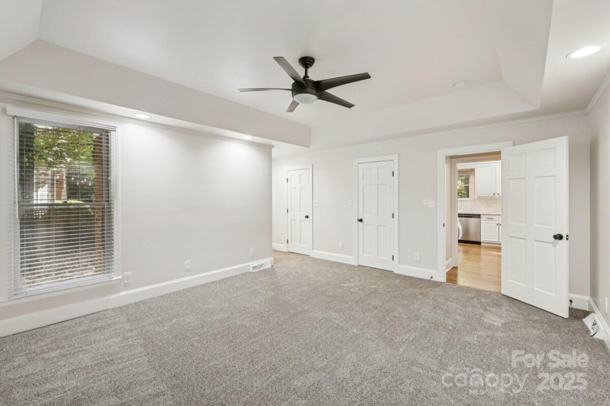 Step into a home where timeless craftsmanship meets modern luxury. Beautifully updated and situated on a spacious cul-de-sac lot, this stately residence offers 5 bedrooms and 3.5 baths with the primary suite thoughtfully located on the main level. The stunning kitchen features quartz countertops and a convenient butler’s pantry, while rich hardwood floors and soaring 9-foot ceilings elevate the main living areas. Upstairs, you’ll find a generous bonus room and an abundance of storage. Outside, the expansive deck and wooded lot provides the perfect backdrop for entertaining or peaceful relaxation. Located just minutes from SouthPark’s premier shopping and dining, this home blends refined living, thoughtful updates, and an exceptional opportunity to own in one of Charlotte’s most desirable neighborhoods.