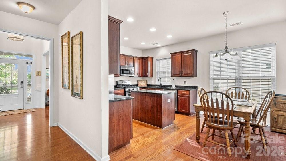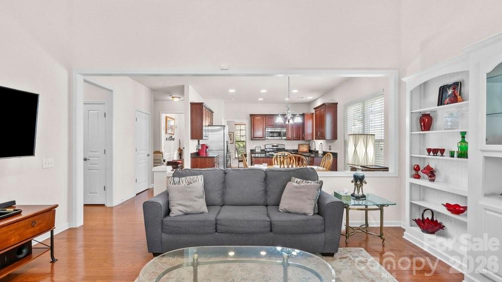 Spacious and beautifully maintained, this 3-bedroom, 3-bath brick home in Matthews Ridge offers an inviting open floor plan and a stunning sunroom that fills the home with natural light. The neighborhood provides low-maintenance living with yard care included through the HOA, plus paved sidewalks throughout and walkable access to grocery stores, dining, pharmacies, and more. Conveniently located near the new Weddington on-ramp to I-485, this home offers quick, easy access to Charlotte. Inside, you’ll find an open kitchen with granite countertops and stainless steel appliances, along with new windows and a 2025 HVAC system for peace of mind. The library/office overlook is spacious and versatile, and both the primary and secondary bedrooms are located on the main floor for effortless living. The backyard offers exceptional privacy thanks to protected, non-buildable land behind the property—an ideal setting for quiet enjoyment. This home blends convenience and tranquility to create a truly peaceful environment. Move-in ready and waiting for its next owner.