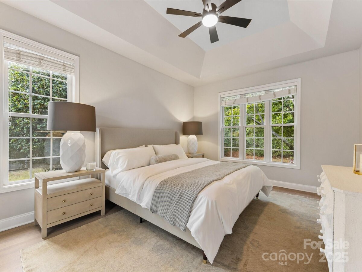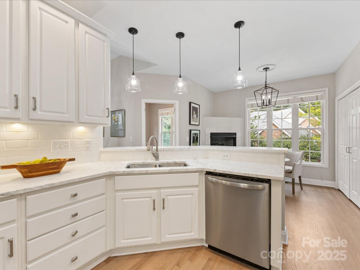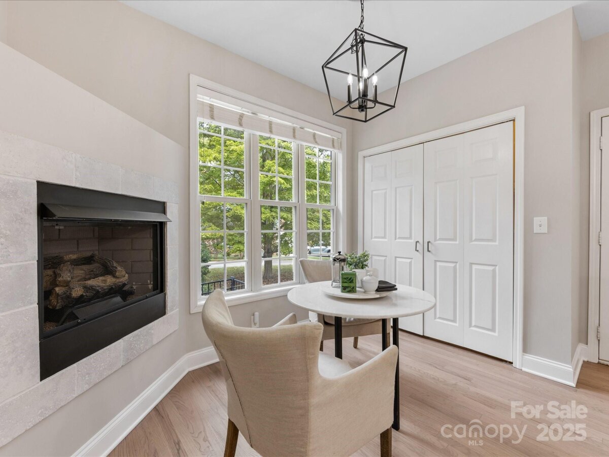 Stunning, Fully Renovated Brick Home in prime Charlotte location! Tucked away on a quiet cul-de-sac, this elegant home blends timeless design with thoughtful modern updates. Step inside to find refinished hardwood floors, fresh paint throughout, and a spacious great room anchored by a cozy fireplace. The gourmet kitchen features newer countertops, a breakfast bar, stainless steel appliances, and flows seamlessly into a cozy Breakfast Nook complete w/ fireplace! The dining room overlooks the rear deck and fenced yard—perfect for gatherings or outdoor play. The main-level primary suite is a true retreat, boasting a newly designed walk-in closet system and a spa-like bathroom with soaking tub, walk-in shower, and designer finishes. An inviting office with French doors, a second fireplace, and abundant natural light completes the main floor. Upstairs, two large bedrooms share a beautifully remodeled full bathroom. The attached oversized garage adds everyday convenience along with generous storage. Recent upgrades include a new roof, gutters, and gutter guards (2020), refrigerator (2021), upper-level HVAC (2022), tankless water heater, crawl space vapor barrier, Smart thermostat, Smart garage door opener, new lighting, and fresh landscaping.