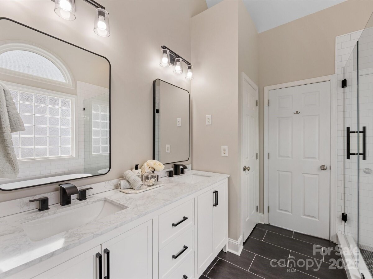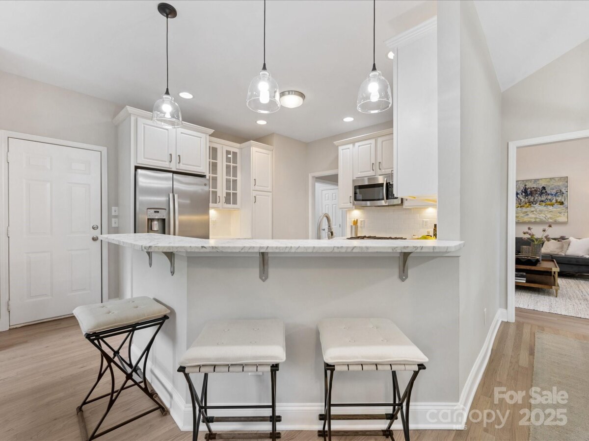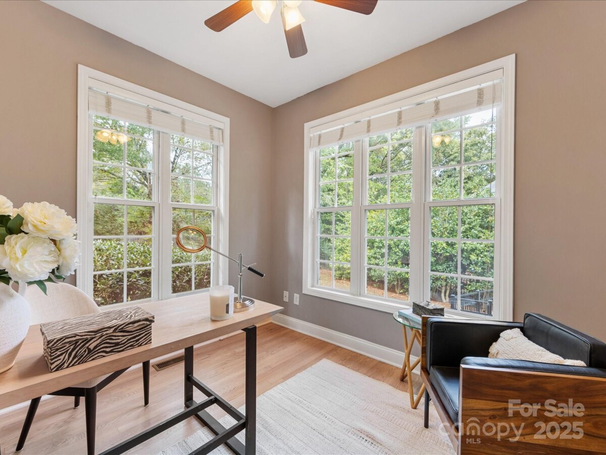 Stunning, Fully Renovated Brick Home in prime Charlotte location! Tucked away on a quiet cul-de-sac, this elegant home blends timeless design with thoughtful modern updates. Step inside to find refinished hardwood floors, fresh paint throughout, and a spacious great room anchored by a cozy fireplace. The gourmet kitchen features newer countertops, a breakfast bar, stainless steel appliances, and flows seamlessly into a cozy Breakfast Nook complete w/ fireplace! The dining room overlooks the rear deck and fenced yard—perfect for gatherings or outdoor play. The main-level primary suite is a true retreat, boasting a newly designed walk-in closet system and a spa-like bathroom with soaking tub, walk-in shower, and designer finishes. An inviting office with French doors, a second fireplace, and abundant natural light completes the main floor. Upstairs, two large bedrooms share a beautifully remodeled full bathroom. The attached oversized garage adds everyday convenience along with generous storage. Recent upgrades include a new roof, gutters, and gutter guards (2020), refrigerator (2021), upper-level HVAC (2022), tankless water heater, crawl space vapor barrier, Smart thermostat, Smart garage door opener, new lighting, and fresh landscaping.