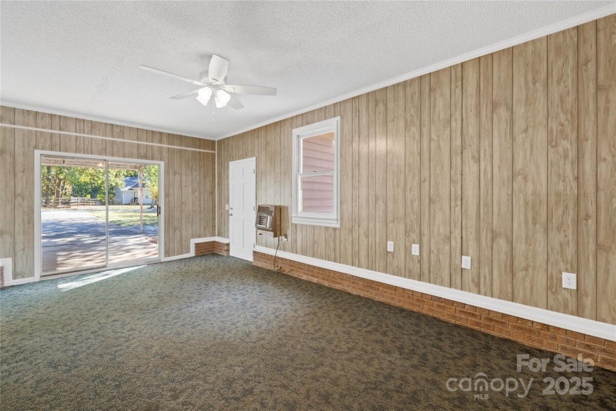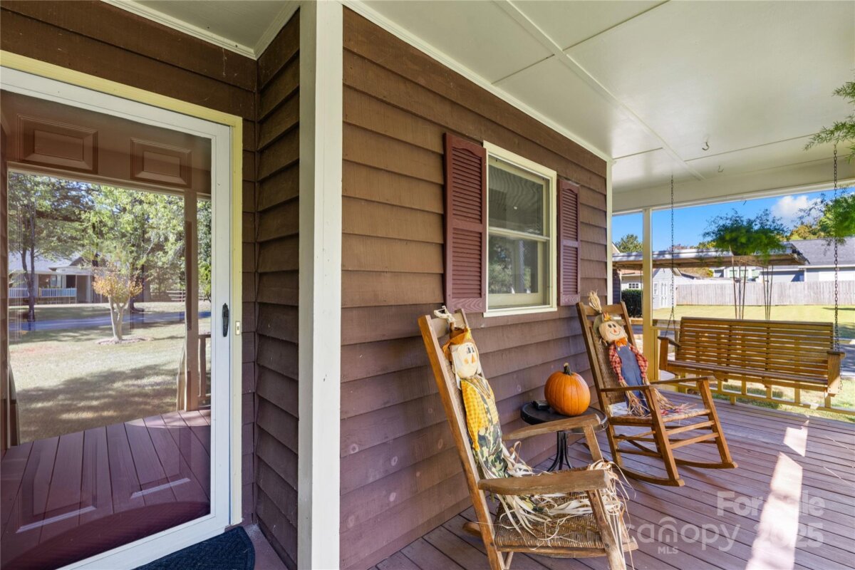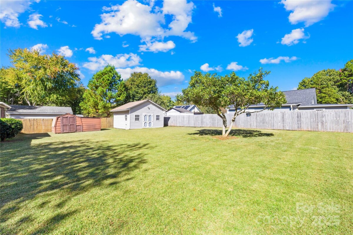 Welcome to this charming one-story home, nestled on nearly half an acre and ready for you to call it your new home! Imagine relaxing on the cozy rocking chair front porch - perfect for enjoying your morning coffee or watching beautiful Carolina sunsets. Inside you will find a bright, open floor plan enhanced by the striking floor-to-ceiling white brick fireplace with gas logs—perfect for cozy evenings at home. The refreshed kitchen boasts painted cabinetry, new hardware, brand-new microwave, and a window that overlooks the beautiful front yard. This home offers three generous bedrooms and two full bathrooms that have freshly painted cabinetry and new hardware. In addition, you’ll find two versatile flex rooms—ideal for a home office, den, workout space or more. Both are heated and cooled via a gas wall furnace and a window AC unit. Together they add approximately 537 sq ft of heated comfortable, flexible space. Interior updates include: entire interior freshly painted, new LVP flooring installed, updated can lighting, ceiling fans and keyed-alike exterior door locks. Outside, the fully fenced backyard features an expansive double-level deck—a great setting for relaxing or evening gatherings. A two-car carport provides convenience, while an extra-long driveway easily accommodates approximately eight vehicles. Solar-powered lighting on the carport adds a thoughtful touch. Also a brand new ramp was installed January 2025, providing easy access from the driveway to the covered front porch. There are two exterior buildings on the property: a powered shed with lean-to for storing your lawn equipment, and a large 18’×18’ powered building featuring double doors, propane wall-unit heater, shelving and overhead fluorescent lighting. The property has beautiful landscaping, including crêpe myrtle trees lining the front yard and a blooming tulip tree, adding curb appeal and ready-to-enjoy ambiance. Close to restaurants, shopping, movies, I-485, Hwy 74, and so much more. Don’t miss this move-in ready home with ideal space, upgrades and location. Schedule your showing today! ***NO HOA***