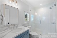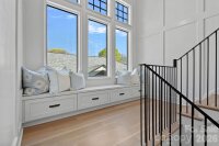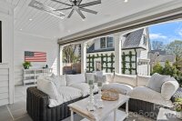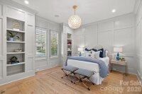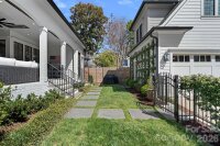 Stunning newer construction with timeless charm in the vibrant and historic Elizabeth neighborhood! Situated on a beautiful corner lot just minutes to Uptown, this light-filled home offers an exceptional open floor plan with refined architectural details throughout. Newly refinished wide-plank, white oak floors, coffered ceiling, intricate moldings, custom designer lighting and three fireplaces create a warm, sophisticated atmosphere. The main level flows seamlessly from the elegant living room to the dining room highlighted by a designer chandelier and dramatic floor to ceiling windows and extends to the great room. A main-level guest suite or private study features custom built-in shelving, detailed moldings, and a full en-suite bath. The luxury chef's kitchen boasts extra thick quartz countertops, an oversized center island with bar seating, custom white cabinetry, a built-in Dacor refrigerator and 6 burner gas range with custom hood, tile backsplash, under cabinet lighting, breakfast room & walk-in pantry. Convenient mud room off kitchen includes stainless steel sink, built-in cabinetry with cubbies and door leading to backyard. Bar area offers built-in SubZero beverage refrigerator with wine cooler and refrigerated drawers, decorative tile backsplash, custom glass-front cabinetry, floating shelves and coffee station. Great room features gas center fireplace with slate surround and shiplap detail above mantle, built-in cabinetry and integrated speakers. Cascading stacking sliding doors open to covered flagstone porch with retractable screen, ceiling heaters and a gas fireplace- perfect for year-round indoor-outdoor living. An enormous walk-in closet under the staircase provides abundant storage and houses the whole-house Savant smart home system plus a new whole house water filtration system. Dramatic grand staircase with wrought iron railings leads to the second level featuring primary suite, two secondary bedrooms with en-suite baths, incredible spacious laundry room with sink and built-in cabinetry and a versatile loft space. The impressive primary suite offers a sitting area and vaulted ceiling with shiplap accents, custom chandelier and pendant lights over nightstands. The luxurious spa-like primary bath includes oversized marble walk-in shower wi/ dual shower heads plus rain shower head, soaking tub, dual vanities with quartz countertops, custom chandelier and vanity lighting, spacious walk-in closet w/ built-in organization system. The detached 2 car garage is a rare gem for this area and provides over 400+ square feet of additional living space above complete with kitchenette and full bath- ideal for home office, nanny or guest suite, gym or flexible living space! The professionally landscaped backyard is fenced and gated and includes full yard irrigation. All of this within 5 minutes of Uptown and walking distance to some of Charlotte's most coveted restaurants and amenities!