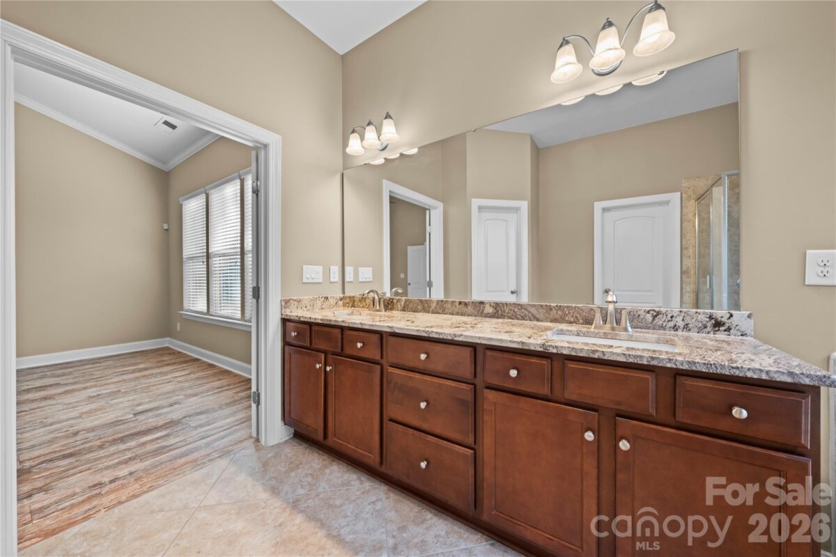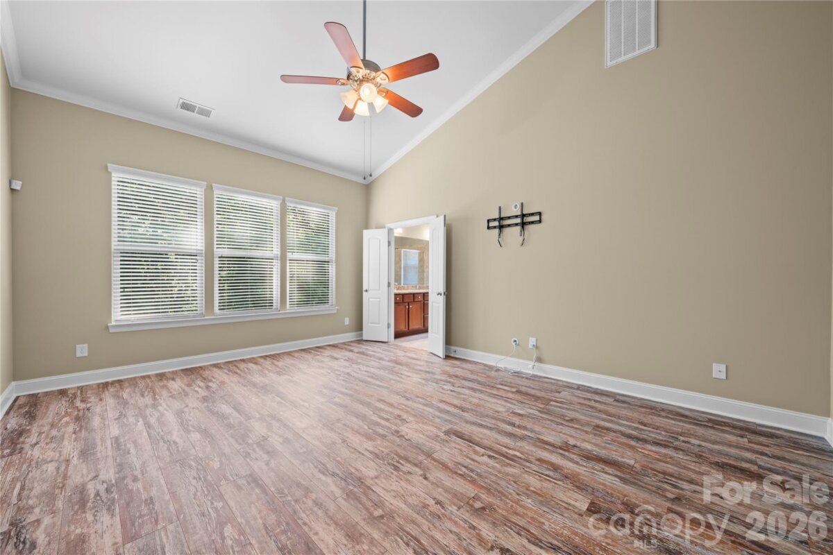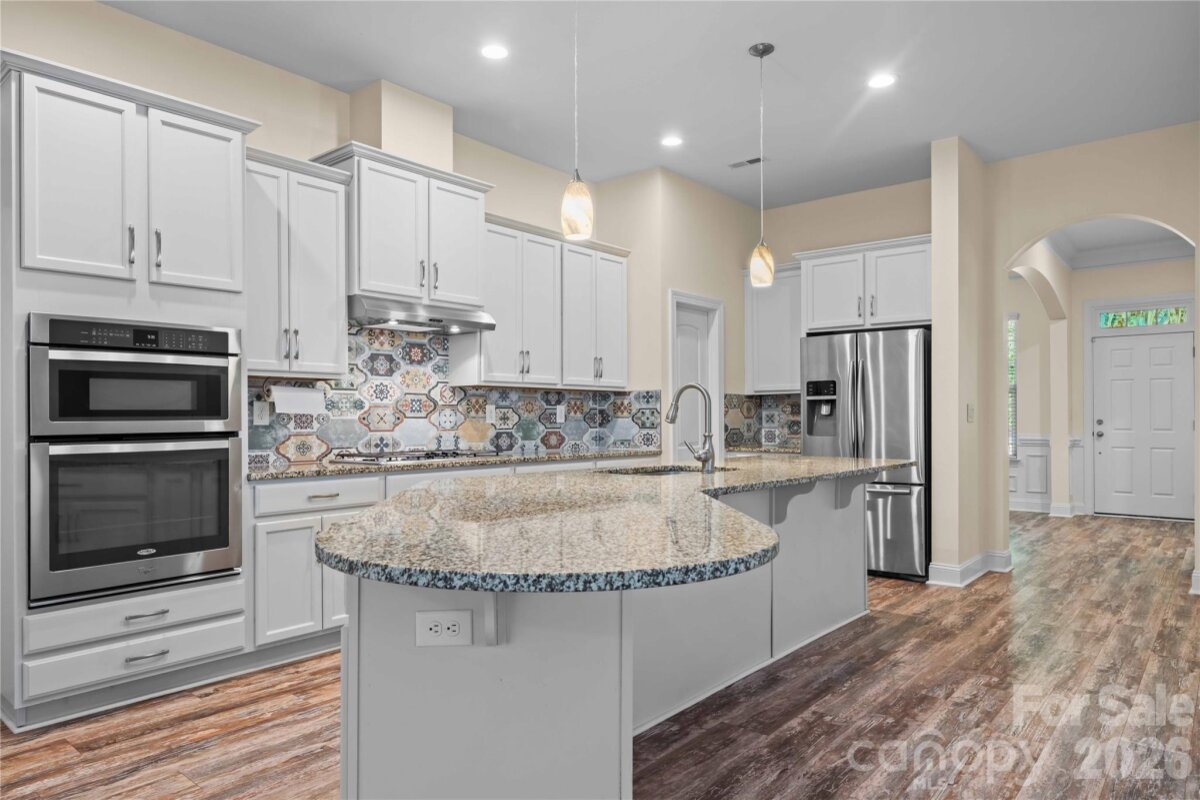 Hurry to see this stunning 5-bedroom, 3-bath home loaded with exceptional upgrades throughout! Nestled on a private, wooded 0.3-acre lot in The Enclaves, this property offers rare tranquility with no homes directly in front or behind. This highly desirable floor plan lives like a single story, featuring a luxurious primary suite on the main level. The main floor also includes two additional bedrooms, a full bath with a beautiful Atlas granite countertop, a spacious office with custom built-in shelving and Murphy bed, a formal dining room, a large laundry room, and an expansive great room with a beautifully upgraded fireplace—perfect for entertaining. A three-car garage completes the space. The chef’s kitchen is a true centerpiece, boasting a large island, walk-in pantry, custom tile backsplash, and elegant pendant lighting. Most living areas feature newer Hybrid Resilient flooring for both style and durability. The primary suite offers a spa-like retreat with dual vanities, granite countertops, a Jacuzzi tub, separate shower, and a generous walk-in closet. Upstairs, you’ll find brand-new carpeting throughout, along with a massive bedroom featuring a walk-in closet and multiple attic/storage spaces. An additional bedroom with a private bath (updated with new Quartz countertop) and a spacious loft with recessed lighting provide flexibility for guests or additional living space. Additional highlights include dual-zone HVAC, custom garage storage solutions, & a striking Ledgerstone fireplace wired for a big-screen TV. The Crismark community features 2 pools/clubhouse, multiple Pickleball courts, tennis courts, walking trails, Social events, playgrounds and more! Located just minutes from local shopping, highly-rated Union county schools, and major highways!