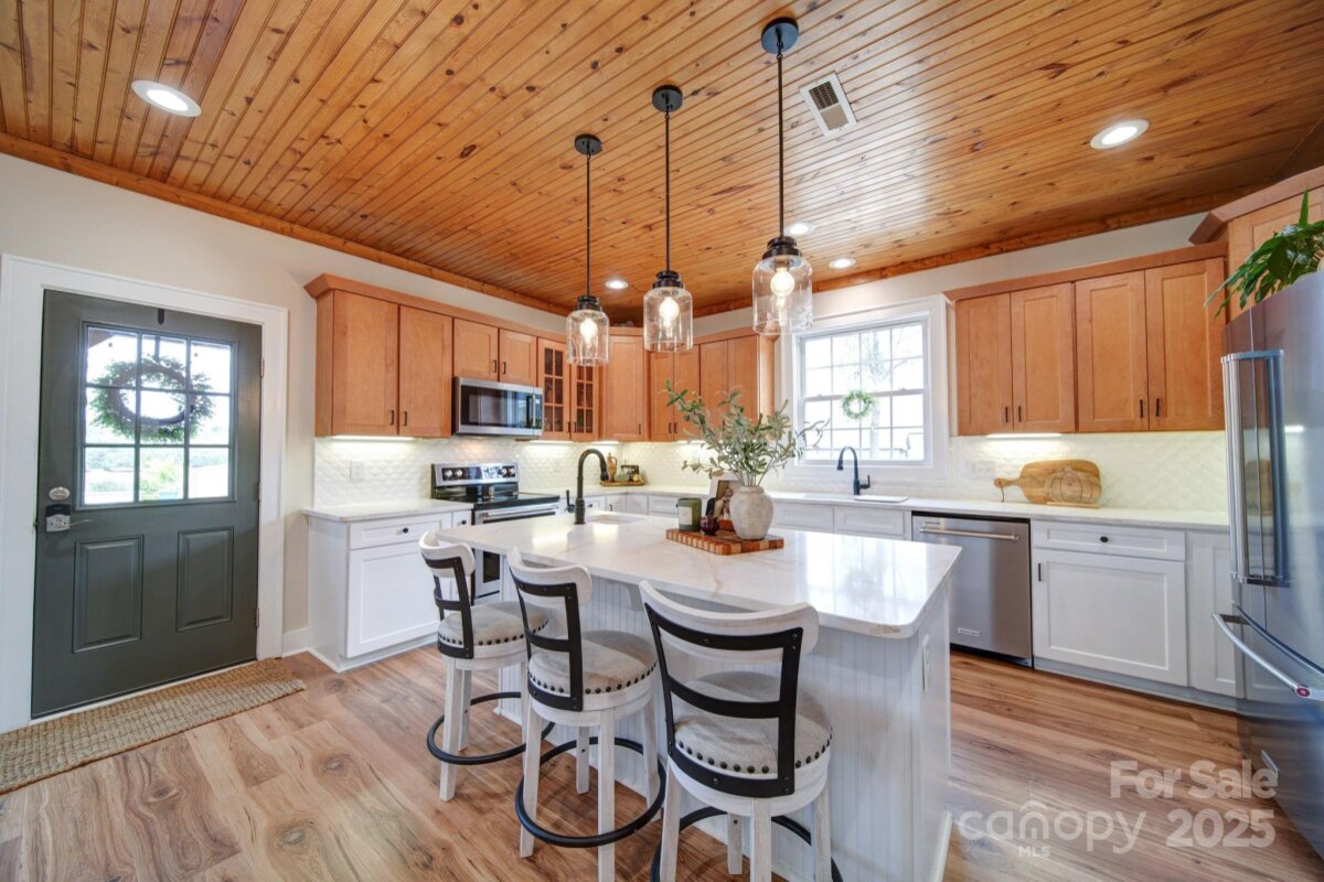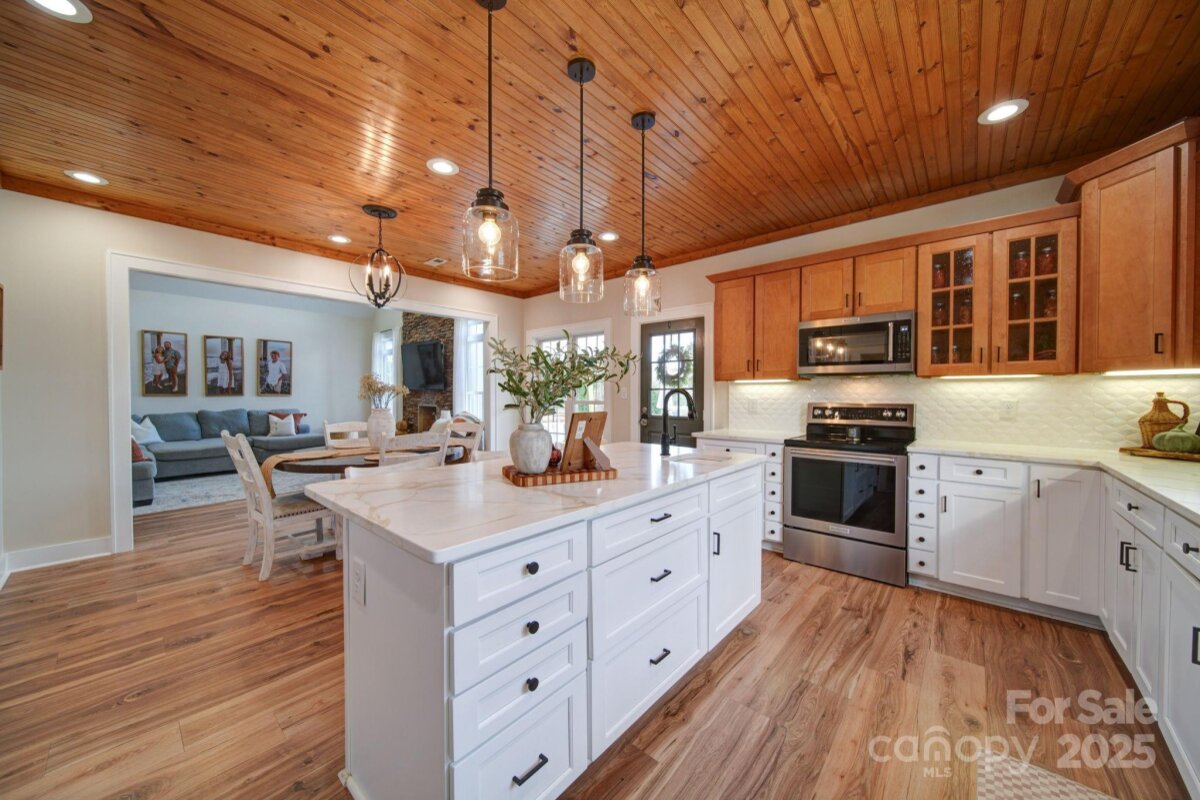 Welcome to your dream property in peaceful New Salem! This beautifully renovated home sits on just under 3 acres of scenic, partially pastured land—perfect for both relaxation and recreation. Step inside to a stunning, fully updated main level featuring quartz countertops, a stylish tile backsplash, stainless steel appliances, and durable LVP flooring throughout. The spacious layout offers comfort and modern elegance in every corner. Outside, enjoy exceptional amenities designed for country living and entertaining. The property includes a concrete drive, 2-car garage, a 2-car carport, and a metal building for extra storage or a workshop. The barn and fenced pasture are ready for livestock, adding functionality and charm. Summers are a dream with the brand-new in-ground pool, surrounded by beautiful rock-salt finish concrete, a covered porch, and a large patio—ideal for hosting gatherings or relaxing in your private oasis. Additional upgrades include a whole-house water filtration system with leak detection sensors for added peace of mind. This property truly has it all—modern updates, outdoor living, and space to spread out. Don’t miss the chance to make this New Salem gem your forever home!