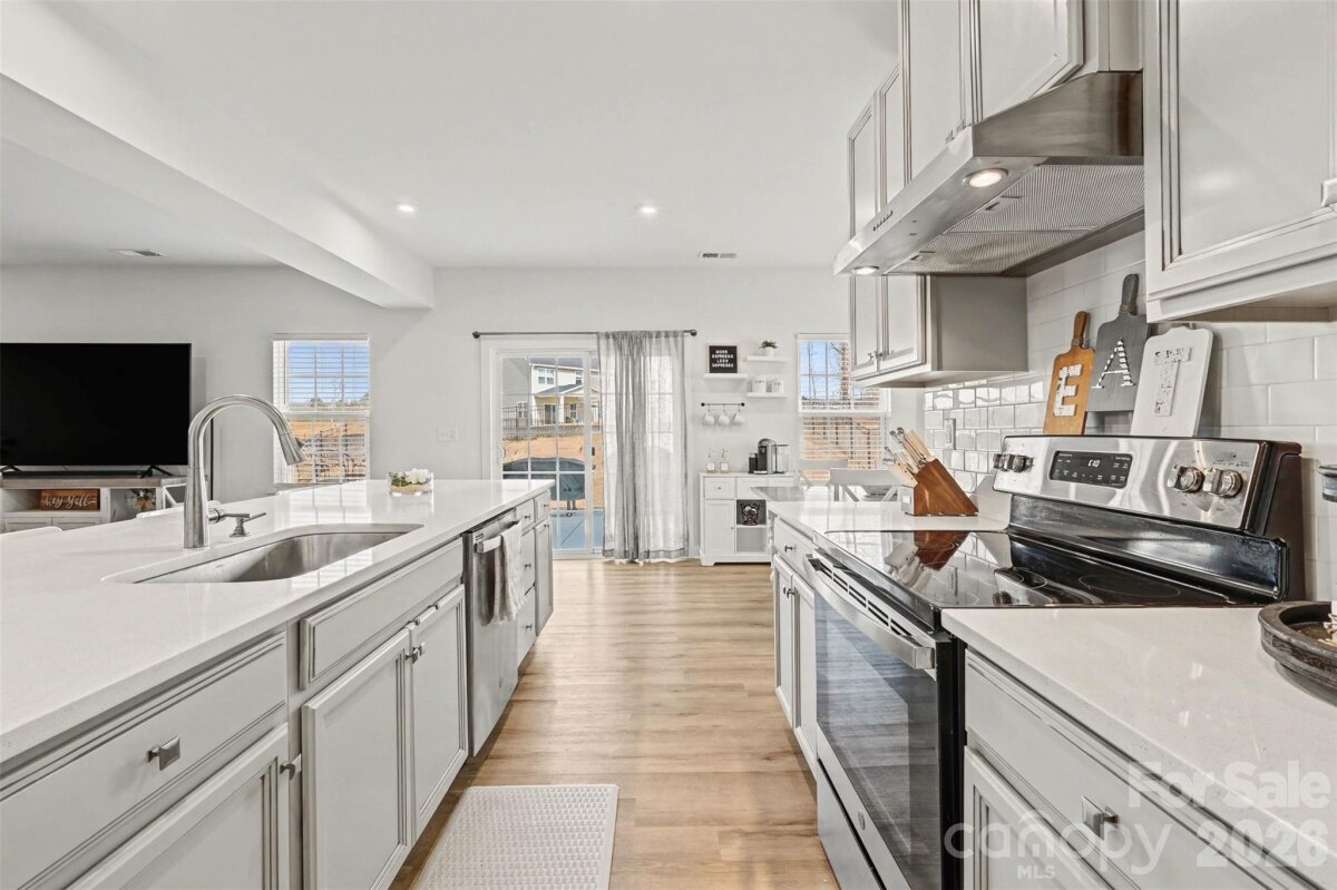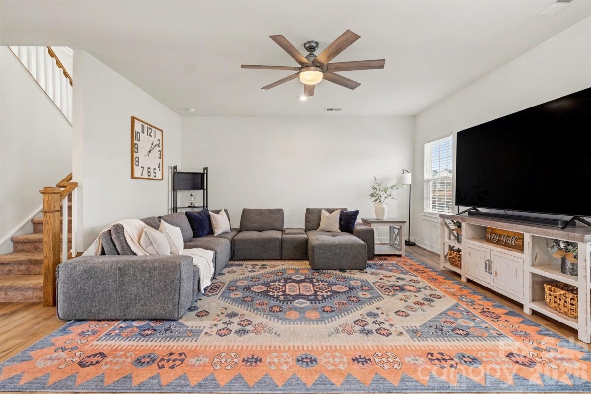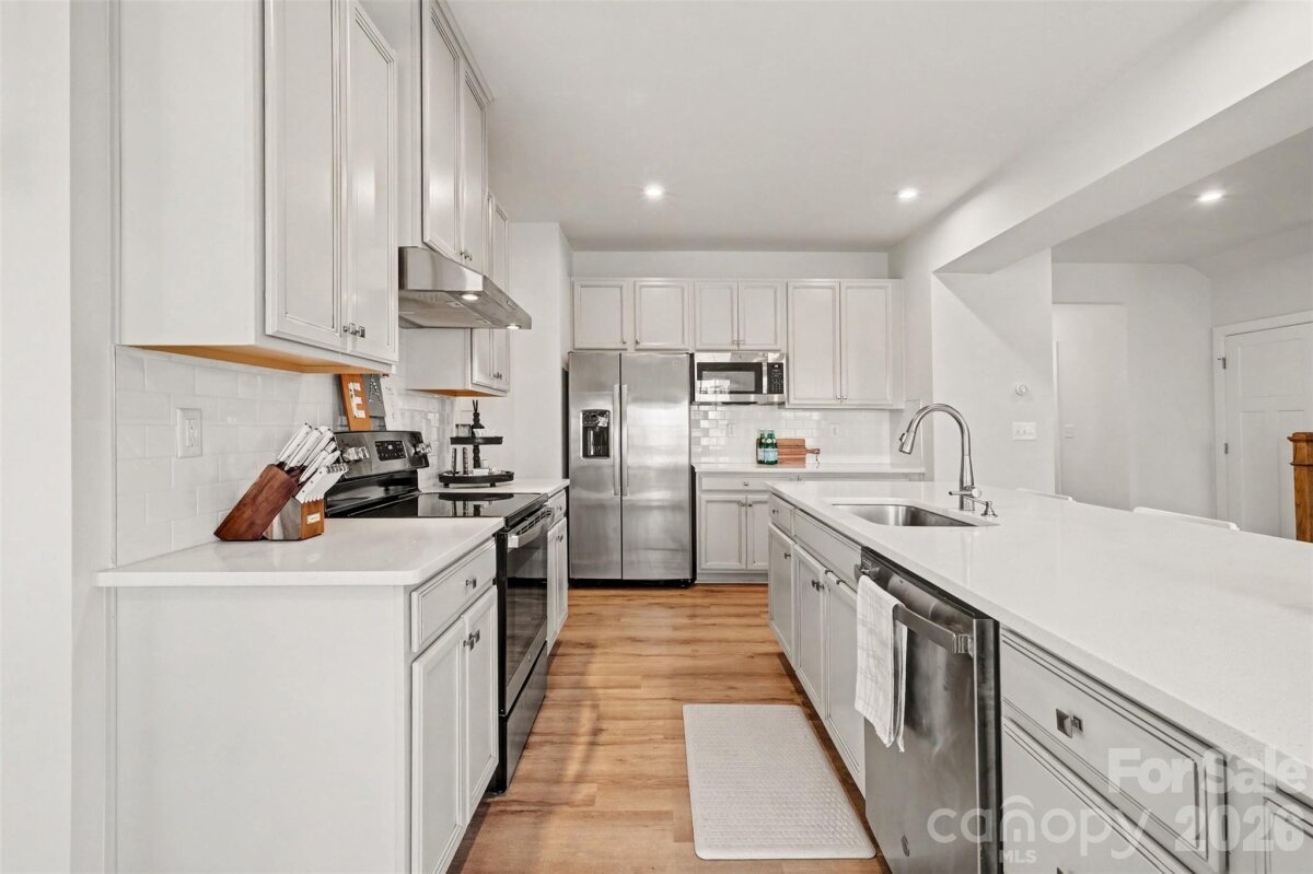 Beautiful, practically brand-new home with upgrades in the desirable Moore Farm community! This light-filled home features a dedicated first-floor office or flex space with elegant French doors—perfect for working from home. The open-concept floor plan offers seamless flow for everyday living and entertaining. The kitchen shines with quartz countertops, stainless steel appliances, and plenty of prep and storage space. Upstairs, you’ll find a spacious loft ideal for a second living area, and a generous primary suite complete with a private ensuite bath and a huge walk-in closet. Two additional bedrooms share a full bath, and the large upstairs laundry room adds everyday convenience and extra storage space. Step outside to enjoy the expanded patio overlooking a fenced backyard—perfect for relaxing or hosting friends. The HOA covers lawn maintenance, giving you low-maintenance living, and residents enjoy fantastic amenities including a clubhouse with outdoor pool, playground, and tennis courts. Located in highly rated Union County schools and offering 1.5% lender-paid closing costs with the preferred lender, this move-in-ready home truly has it all!