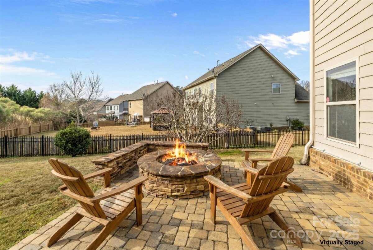 From the moment you step onto the expansive covered patio, you'll fall in love instantly. It’s the kind of outdoor space that doesn’t just extend your home — it transforms the way you live. Soft lighting, a mounted outdoor TV, and room for comfortable seating create an open-air living room where game days, dinners with friends, and quiet nights with a blanket all feel equally at home. Just beyond, the low-maintenance saltwater hot tub becomes your personal retreat — warm, inviting, and ready to wash away any day. And as evenings settle in, the glow of the large firepit area calls you outside. It’s where stories are shared, marshmallows melt into s’mores, and the people you love gather without needing an invitation. Set on a spacious corner lot with a fully fenced yard, the outdoor space offers both privacy and freedom — room for pets to run, kids to play, and adults to unwind without a worry. It’s rare to find a yard that feels this usable, this versatile, and this peaceful all at once. Inside, the home lives like nearly new construction - fresh paint throughout, new LVP flooring on the main level, and new carpet upstairs create a clean, renewed aesthetic. You'll have peace of mind about the inner workings of the house as well with new kitchen appliances, two new HVAC systems, two new furnaces, and a new hot water heater — providing comfort, efficiency, and worry-free living for years ahead. An open-concept living area gathers everyone around the cozy gas fireplace, while a main-level guest suite provides the flexibility every modern household appreciates — whether for visitors, aging parents, or a quiet space to work. Upstairs, a huge primary suite serves as a true retreat, offering the scale, comfort, and privacy that make everyday living feel elevated. Nearby, a dedicated media room becomes the go-to spot for movie nights, gaming, or simply unwinding at the end of the day. And then there’s the neighborhood — calm, connected, and filled with neighbors who genuinely care about one another. It’s the kind of community where people wave hello, take pride in their homes, and make even the simplest moments feel meaningful. You’re close to parks, walking paths, groceries, and Charlotte’s conveniences, yet tucked into a place that feels warm and welcoming. This is more than a house. It’s a lifestyle — one built around connection, comfort, and the simple joy of being home — schedule your private tour today.