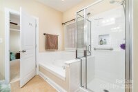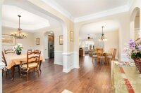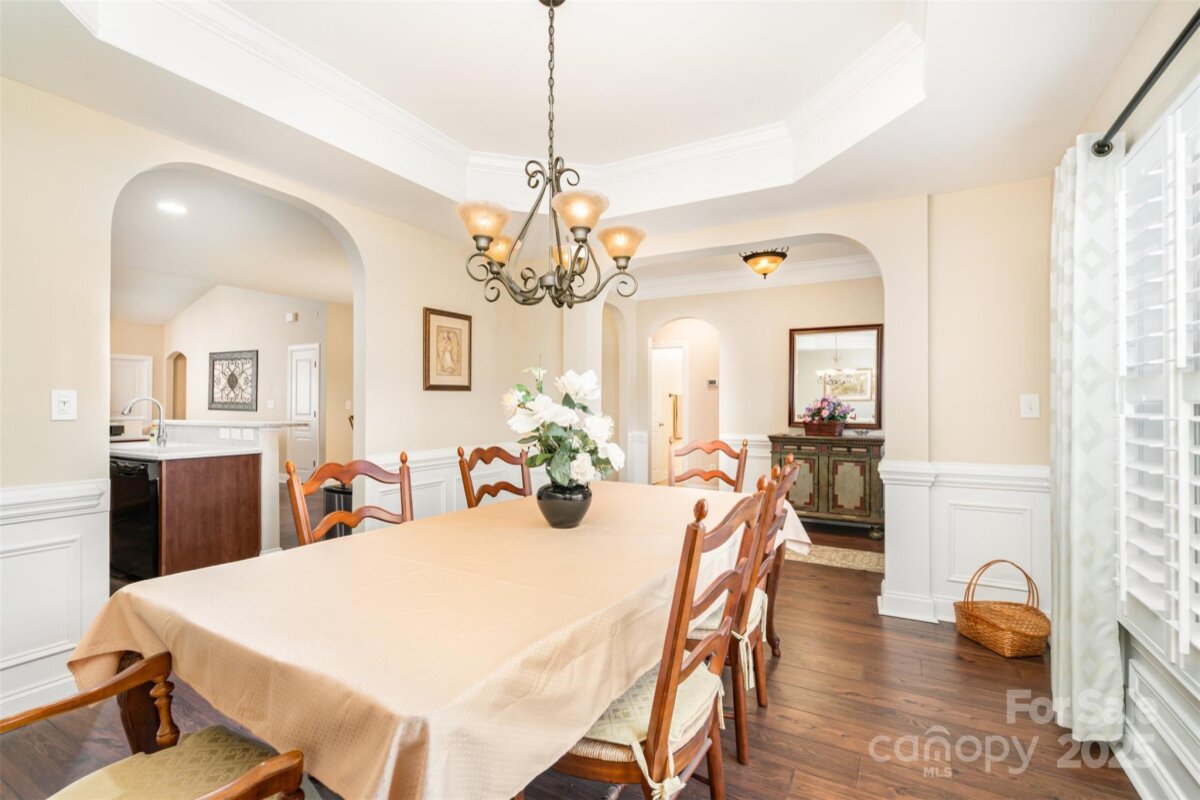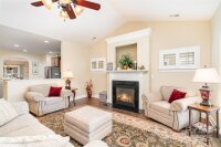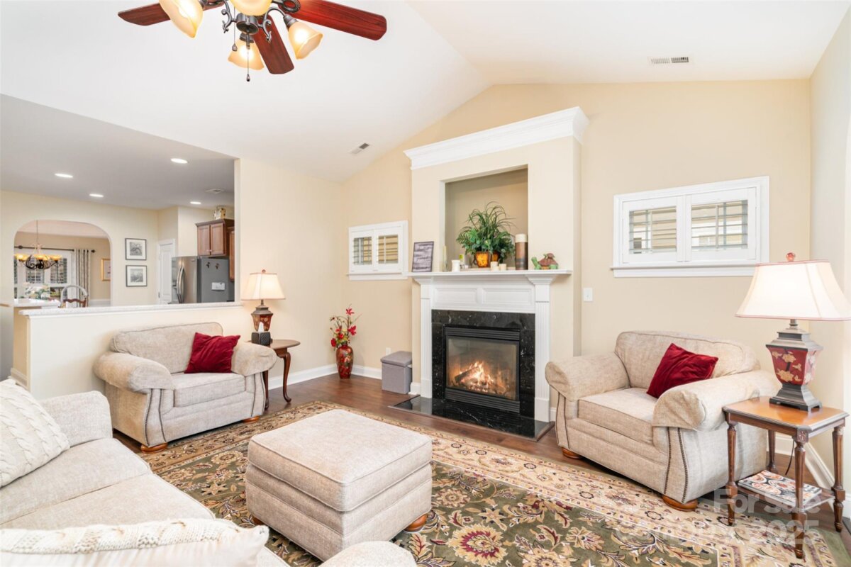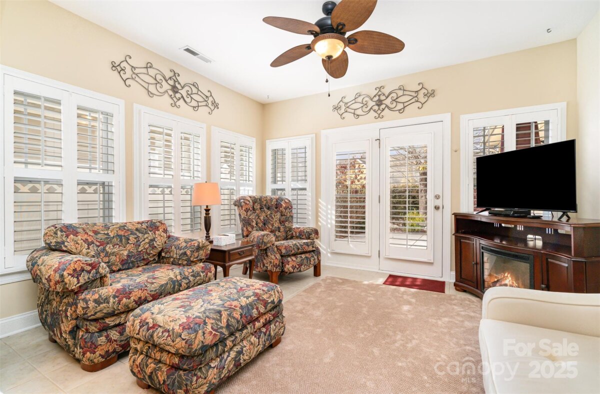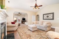 Welcome to this charming 1 story home home in sought-after Bonterra, where classic Southern character meets effortless living. Irrigation and lawn care are included, giving you more time to enjoy everything this equestrian-inspired community offers. A wide and welcoming front porch sets the tone, while plantation shutters, curved archways, and double crown molding highlight the thoughtful architectural details inside. The main living areas feature wide-plank LVP flooring, a vaulted living room anchored by a gas fireplace, and a dedicated sunroom that fills the home with natural light. The kitchen offers timeless cabinetry, stainless appliances, and a comfortable breakfast bar that opens to the main gathering spaces. The primary suite on the main level includes a tray ceiling, walk-in closet, dual-sink vanity, a garden tub, and a beautifully updated tile shower with glass surround. Two additional main-level bedrooms share a full bath. Step outside to a private back patio, perfect for quiet mornings or evenings under the stars. Recent updates within the last few years include an architectural shingle roof! Bonterra’s amenities bring a truly unique lifestyle: rentable neighborhood stables, equestrian facilities, clubhouse, fitness center, game courts, outdoor pool, playground, pond, tennis courts, picnic areas, and winding walking trails. A relaxed, low-maintenance living experience wrapped in classic Bonterra charm opens a welcoming path to your next chapter!