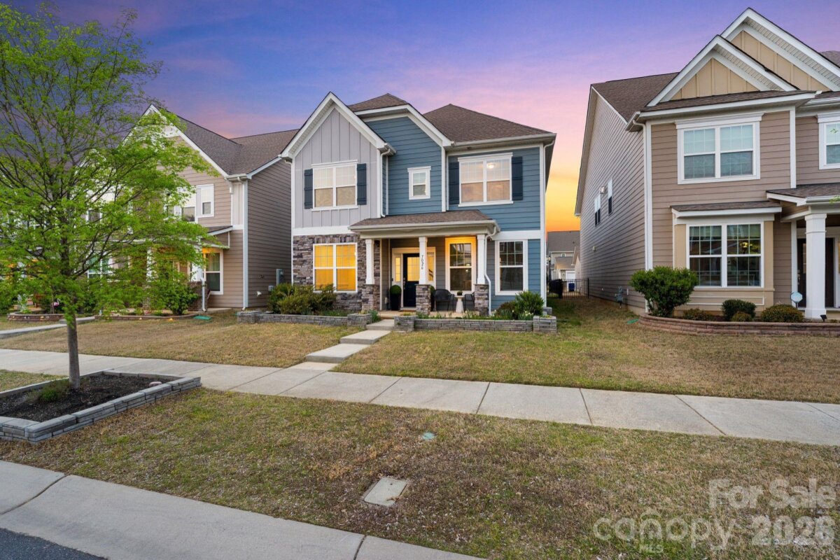 Perfectly positioned in the heart of Rea Farms, this beautifully designed two-story residence offers elevated living just steps from one of South Charlotte’s most vibrant lifestyle destinations. Inside, a light-filled open-concept main level seamlessly connects the kitchen, living, and breakfast areas, creating an ideal setting for everyday living and entertaining. The kitchen is anchored by a striking marble island and complemented by stainless steel appliances, a walk-in pantry, and elegant cabinetry. A formal dining room with refined wainscoting detail adds a sophisticated touch, and a main-level guest suite with a private bath offers flexibility for visitors or multi-generational living. The main level is complete with a well-appointed laundry room and effortless access to a covered rear patio and fully fenced backyard. Upstairs, the spacious primary suite serves as a true retreat, featuring a fireplace, heated bathroom floors, a soaking tub, a walk-in shower, dual vanities, and an expansive walk-in closet. Three additional bedrooms provide comfortable accommodations, with two connected by a Jack-and-Jill bath and a third served by a full hall bath. Enjoy unmatched walkability to Waverly and Rea Farms Village, where everyday conveniences and upscale amenities including Starbucks, Whole Foods, Harris Teeter, and Life Time Fitness are just a short stroll away. Set within a tranquil and thoughtfully designed community, this home offers peaceful residential living with immediate access to premier shopping, dining, and wellness.