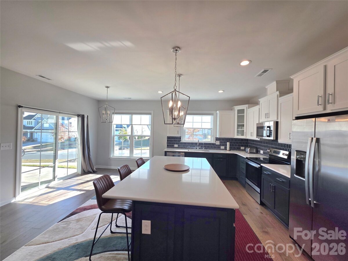 Mclean Overlook 1 story home built in 2023 with a 2 car garage, covered patio area for entertaining & grilling out. 3 bedrooms 2 full baths. 1 bedroom used as flex space/office no closet. Lovely open floor plan and a must see kitchen with a large island, nice pantry, stainless appliances, quartz countertops & tile back splash. Large laundry area includes washer & dryer. Nice open great room, with lots of full windows for plenty of naturel lighting. Large primary bedroom & primary bath includes a zero entry walk in shower with seat & shampoo niche. Family room has vaulted ceiling. This home is located in a newer community with a outdoor pool, cabana, club house sidewalks, street lights & walking trails, playground. Minutes from Belmont & Lake Wylie and boat ramps, & Daniel Stowe Botanical Garden this is a wonderful place to live. *Requesting a short sale approval from the bank. Send offers. Price reduced but must be approved by the bank.*