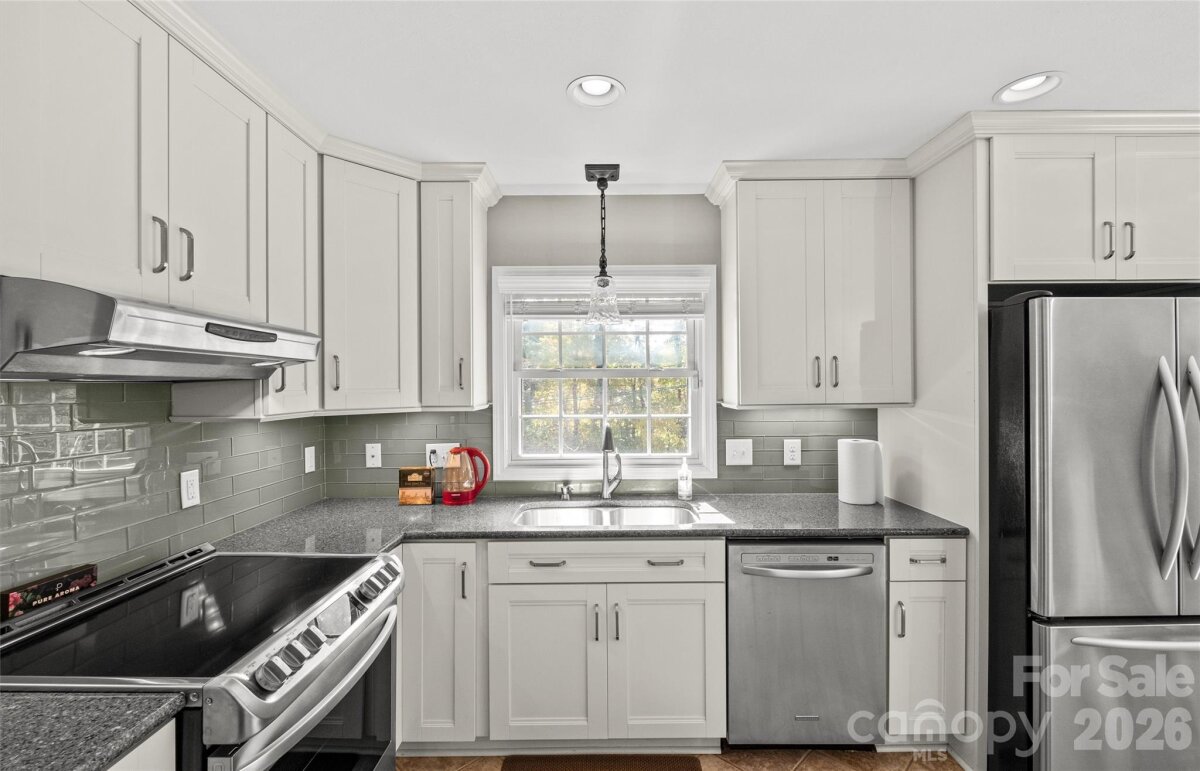 This beautifully updated home blends modern upgrades with timeless charm in a prime Charlotte location—just minutes from I-485, I-85, I-77, the U.S. National Whitewater Center, and Uptown. Thoughtfully maintained, the home features a newer roof, a new HVAC system (2021), and a stunningly renovated kitchen complete with stainless steel appliances and stylish finishes. The bathrooms have also been tastefully updated, adding a fresh, contemporary feel throughout. The functional layout offers a spacious living area, a dedicated dining space, and a bright, inviting kitchen. Upstairs, you’ll find three generously sized bedrooms and two full bathrooms, including a serene primary suite with a walk-in closet and private en suite bath. The lower level adds even more flexibility with a fourth bedroom, half bath, laundry area, and a versatile bonus space—perfect for a media room, office, or additional living area. Step outside to a large, level backyard featuring a beautiful deck and fencing—ideal for entertaining, relaxing, or enjoying outdoor living. A move-in ready home in a location that truly connects you to everything—don’t miss this opportunity.